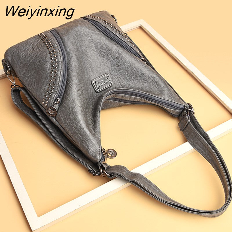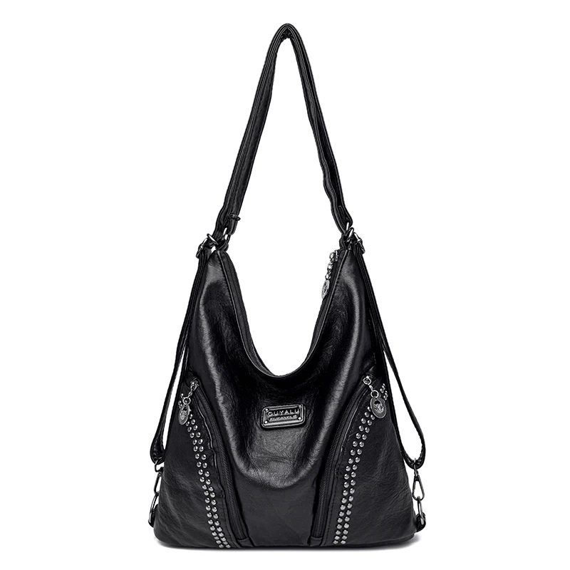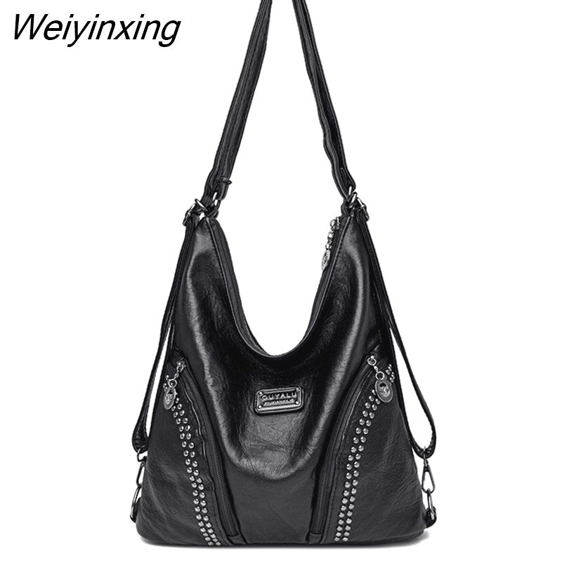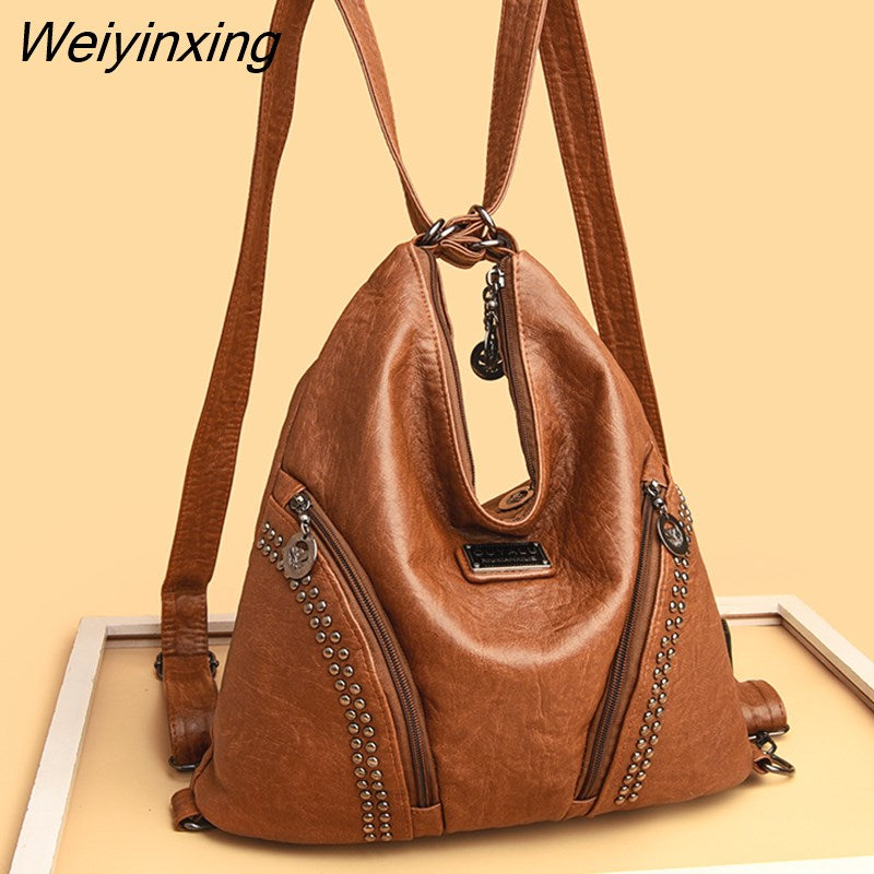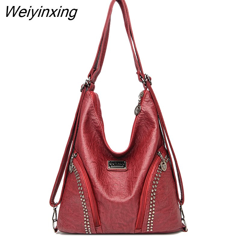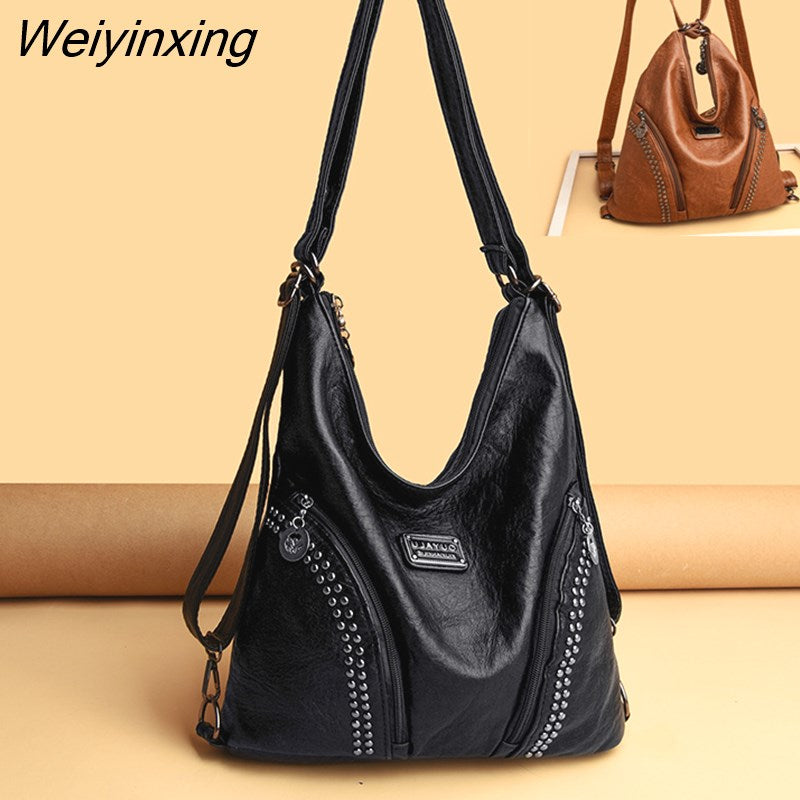 Weiyinxing Women Luxury Brand Shoulder Bag Rivet Soft Leather Handbag Multifunction Backpack Large Capacity Ladies Messenger Bag Sac a Main