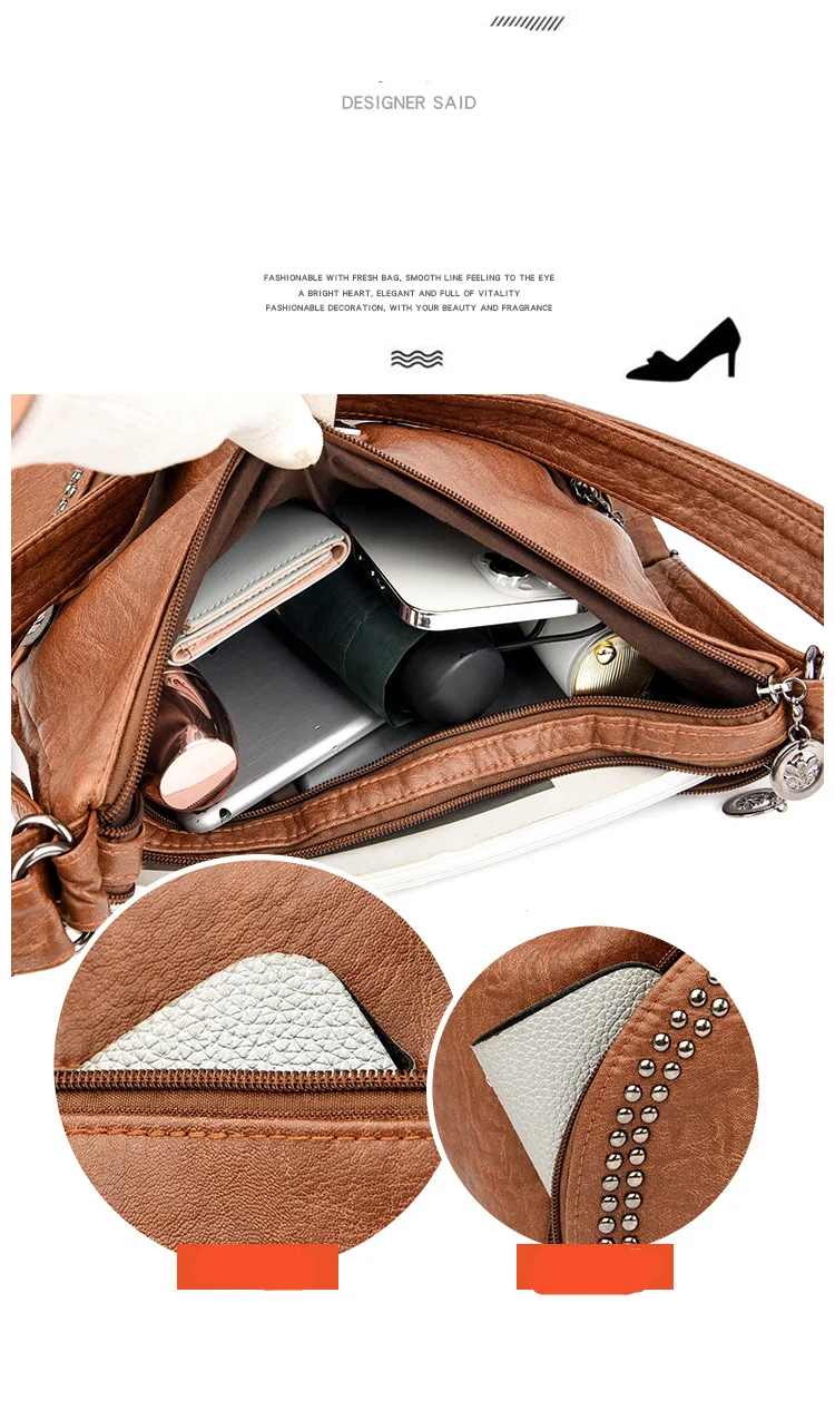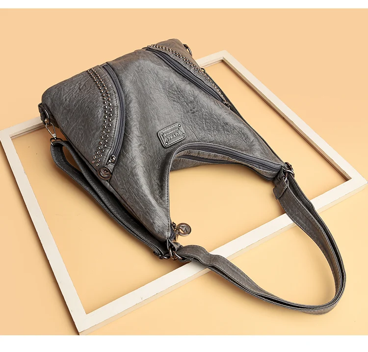 Model Number: Women Luxury Brand Shoulder Bag Rivet Soft Leather Handbag Multifuncti