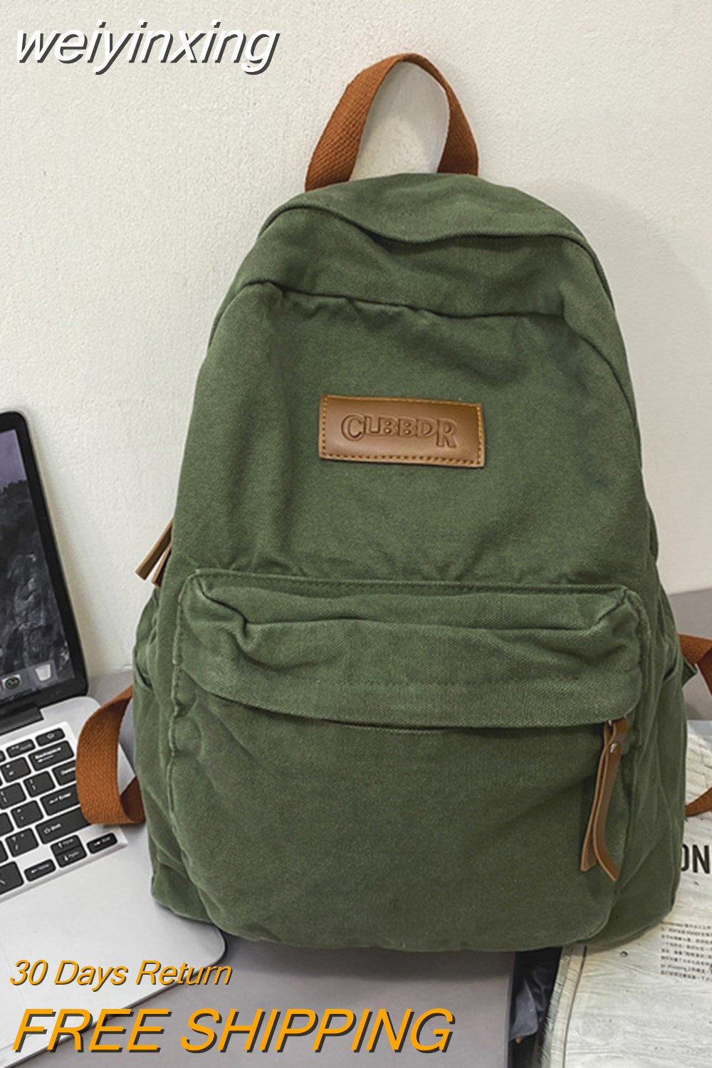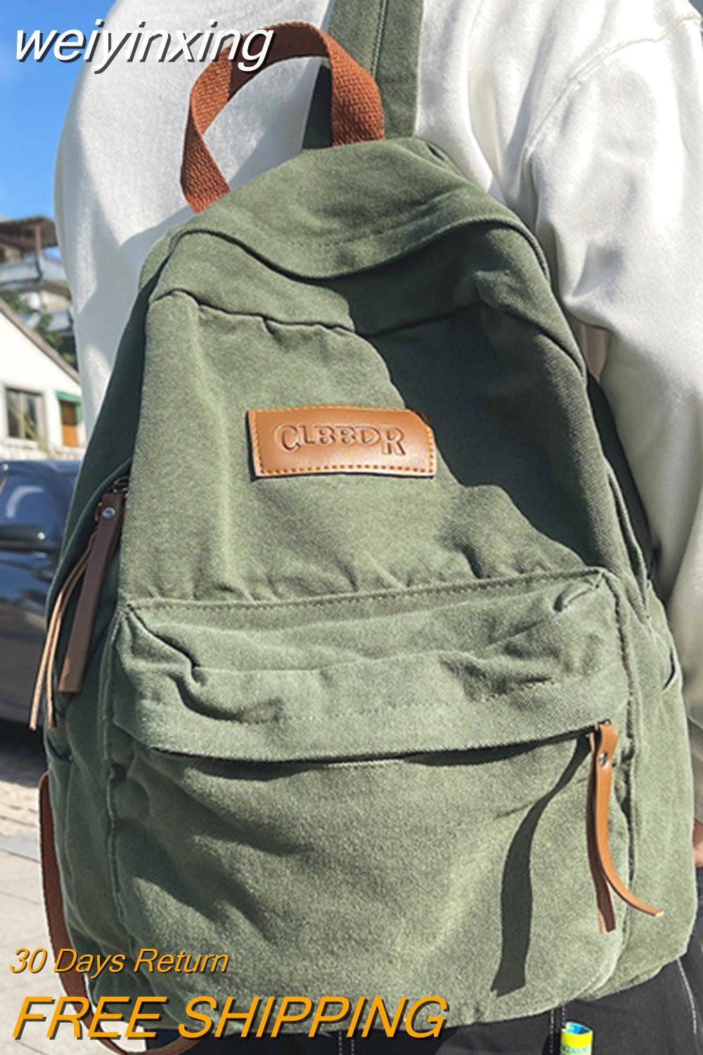 weiyinxing Women Men Canvas Green Bag Fashion Boy Girl Cute College Backpack Male Female Book Travel Backpack Cool Laptop Lady Student Bags