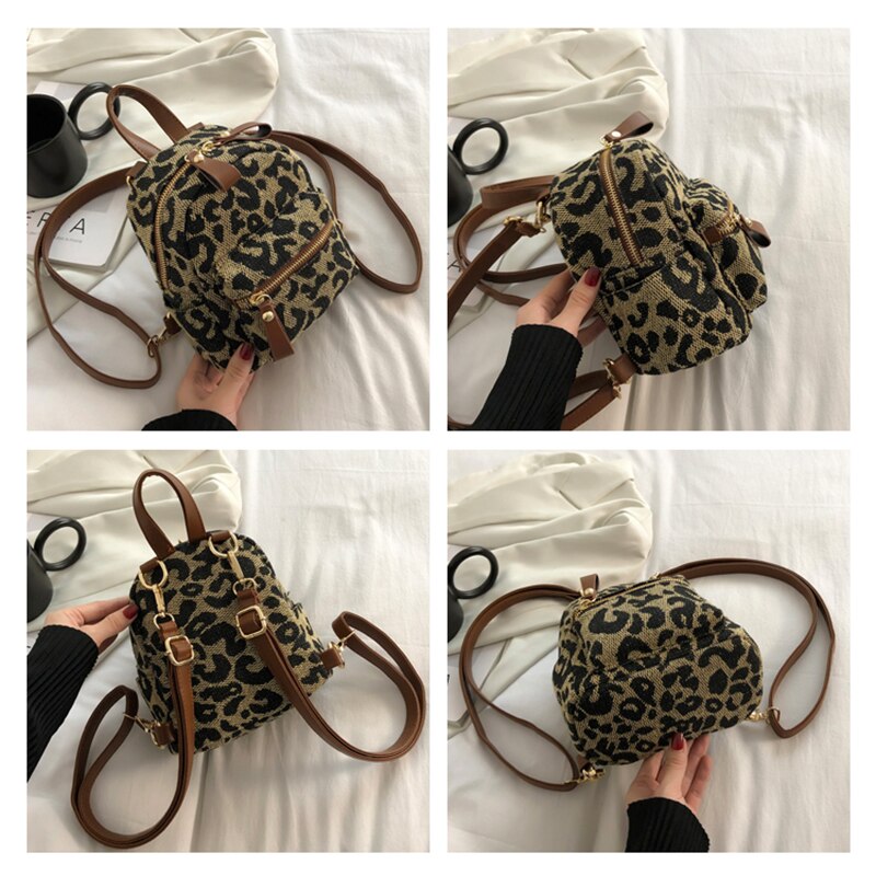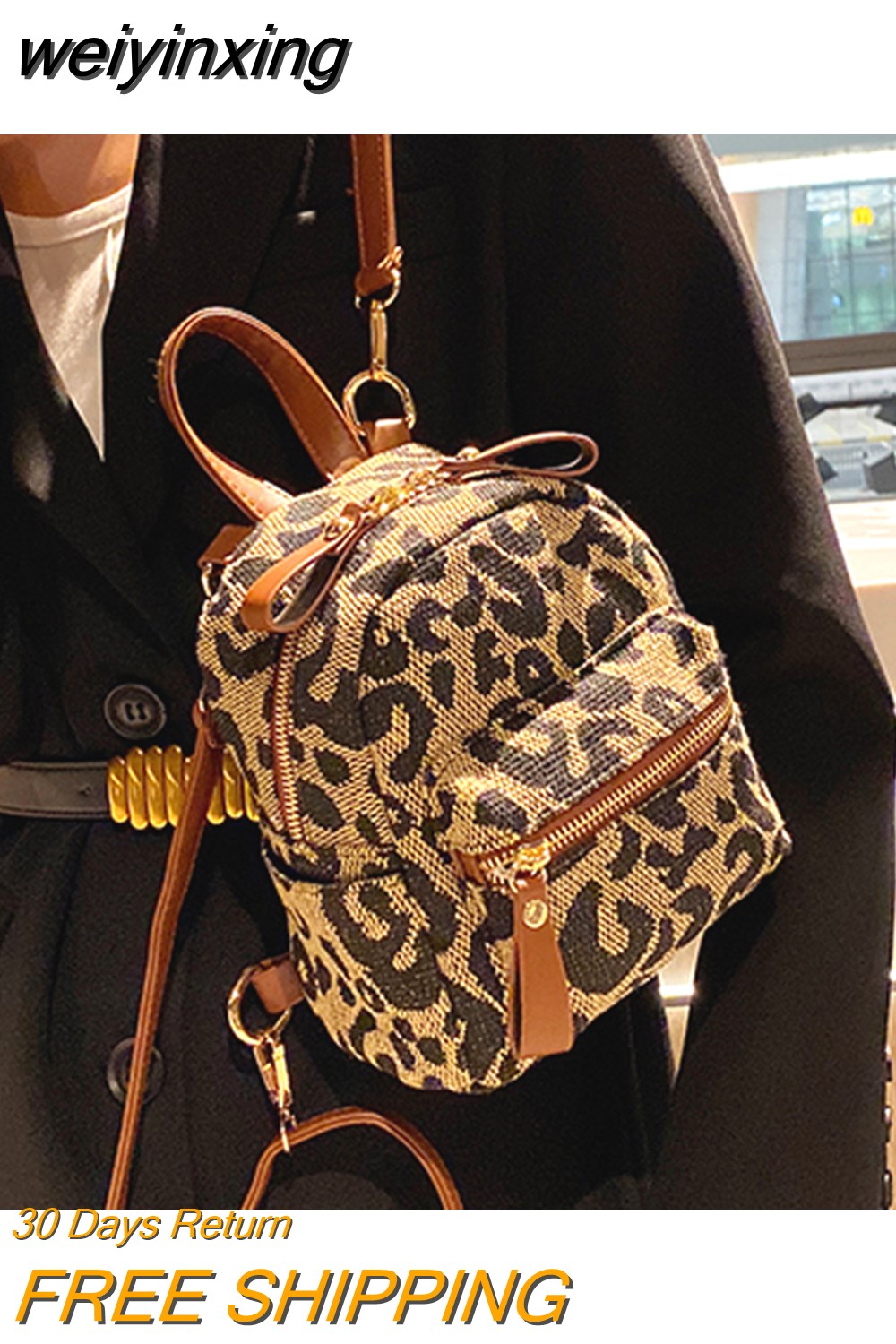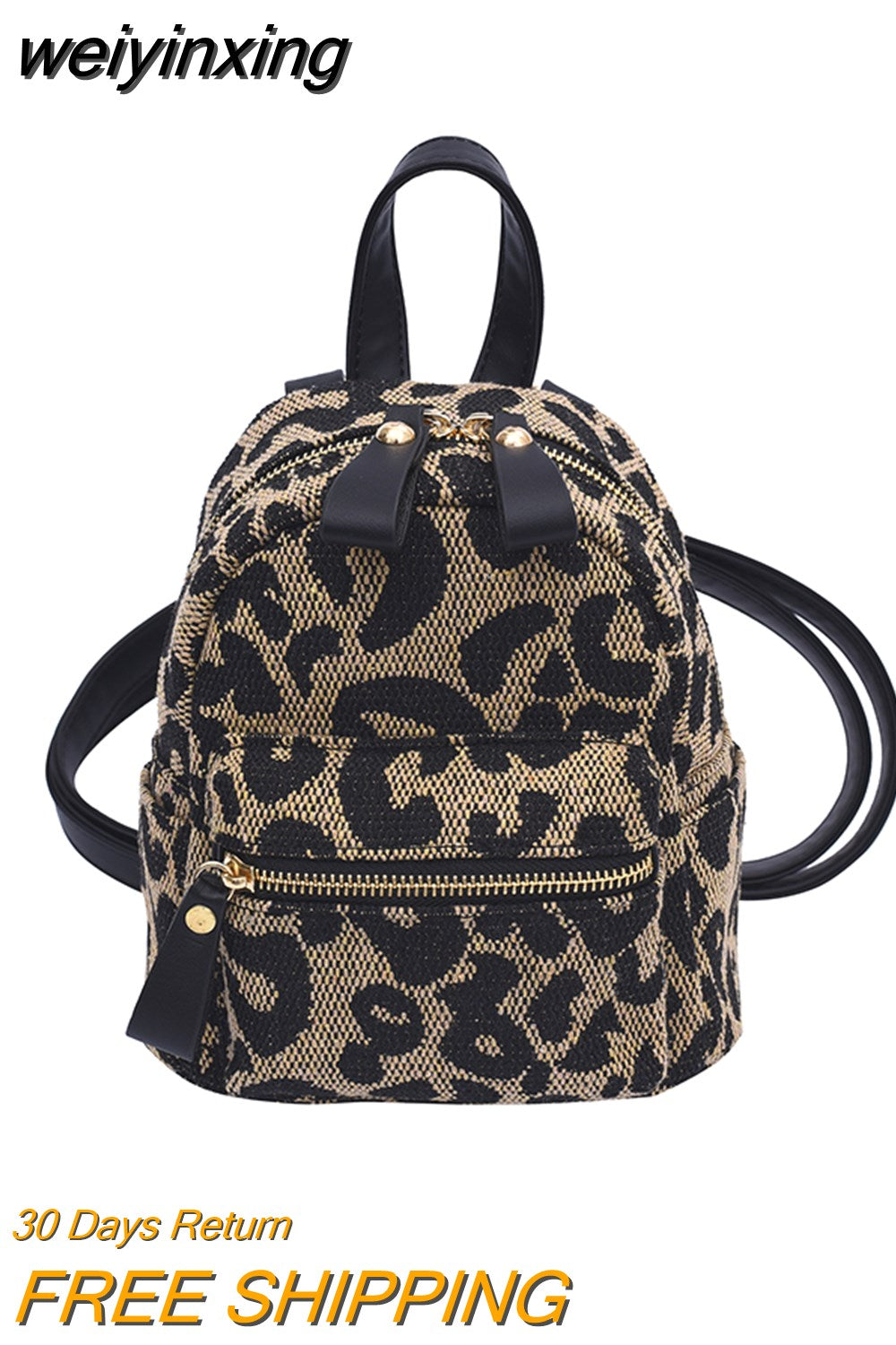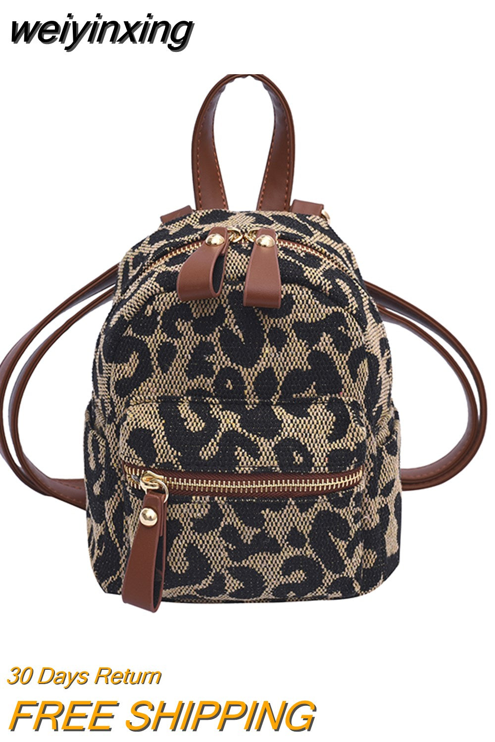 weiyinxing Women Mini Backpack High Quality Leopard Nylon Shoulder Bag Small Backpack School Bags for Teenage Girls Travel Rucksack