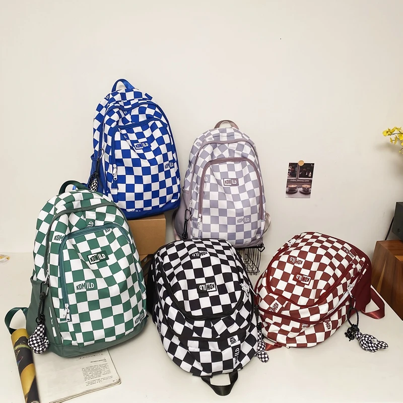 Weiyinxing Women Plaid Backpack Fashion Lady Laptop School Bag New Girl Boy Backpack Trendy Female Men Travel Book Lattice Student Bag