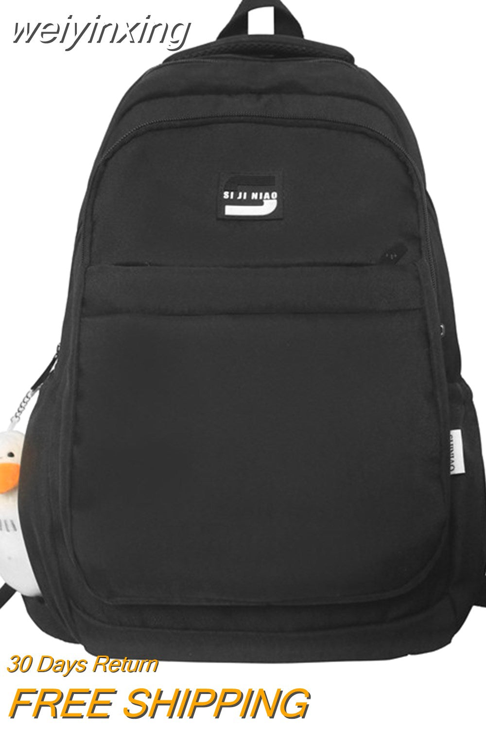 weiyinxing Women School Bags Cool Female Solid Color Black College Backpack Trendy Men Laptop Backpack Book Girl Travel Student Bag
