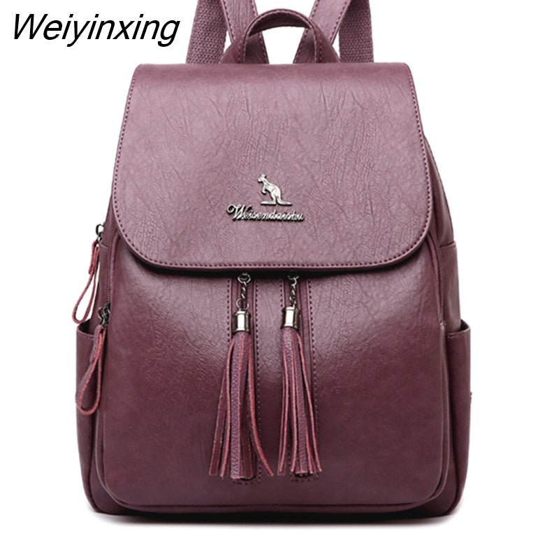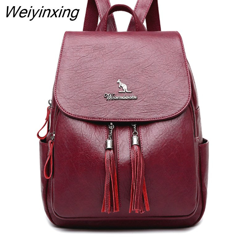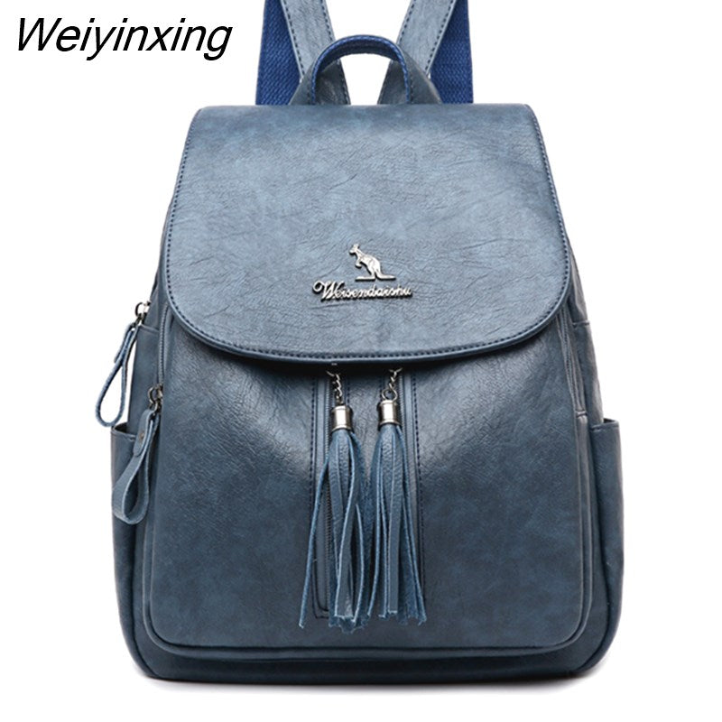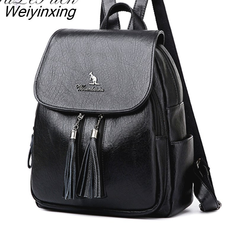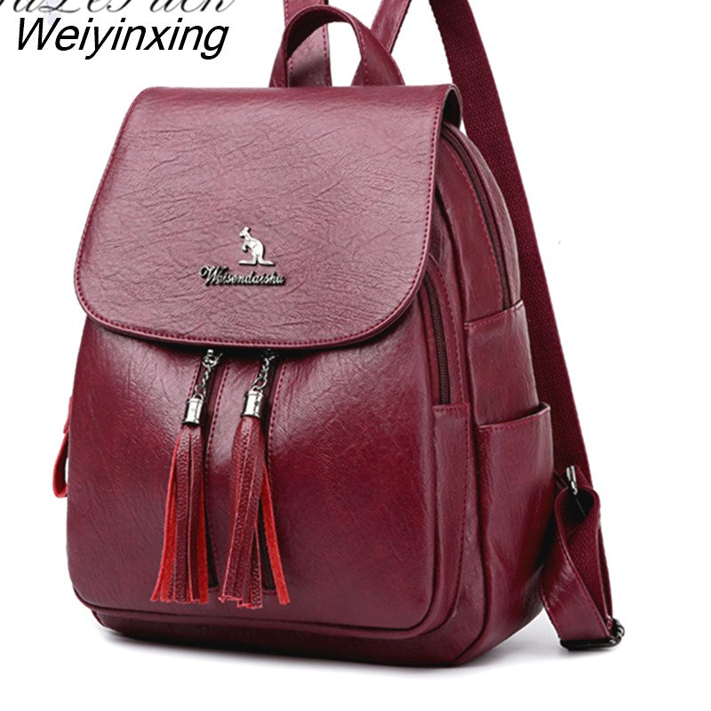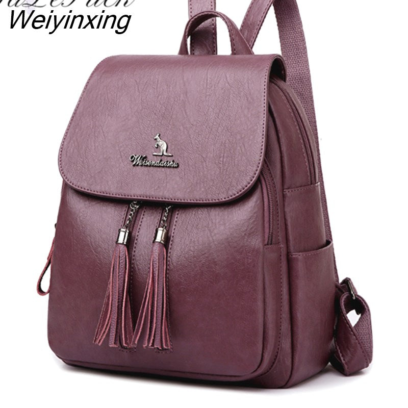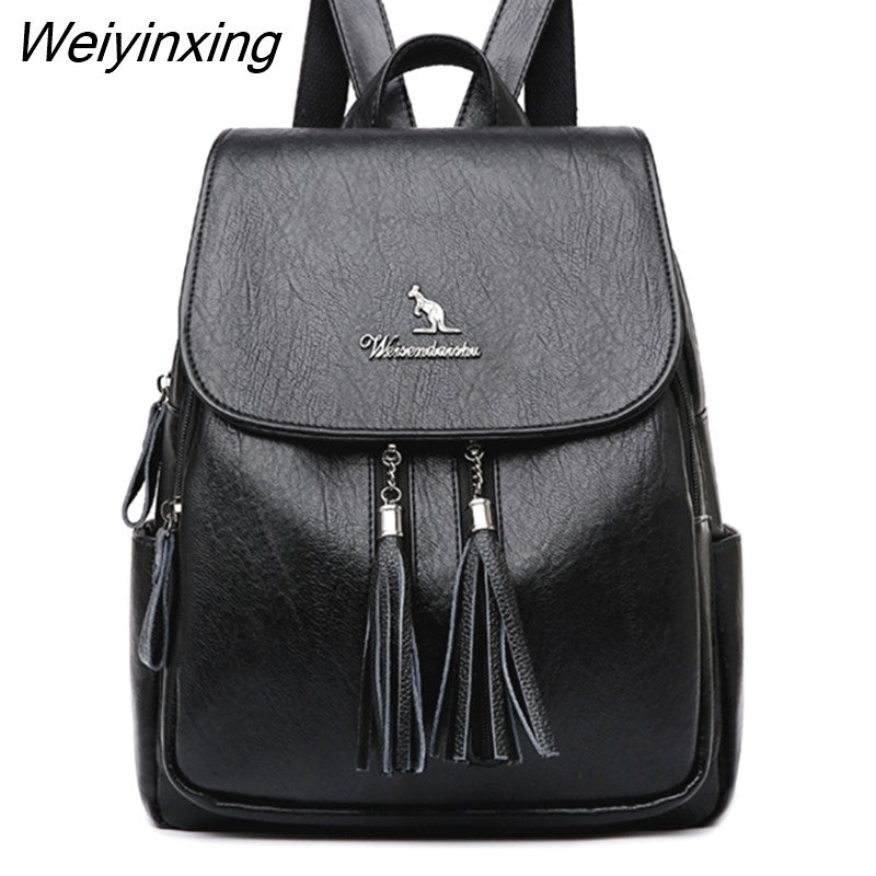 Weiyinxing Women tassel Leather high quality Backpack School Bags for Teenage Girls Bagpack Travel Backpacks Shoulder Bags mochila