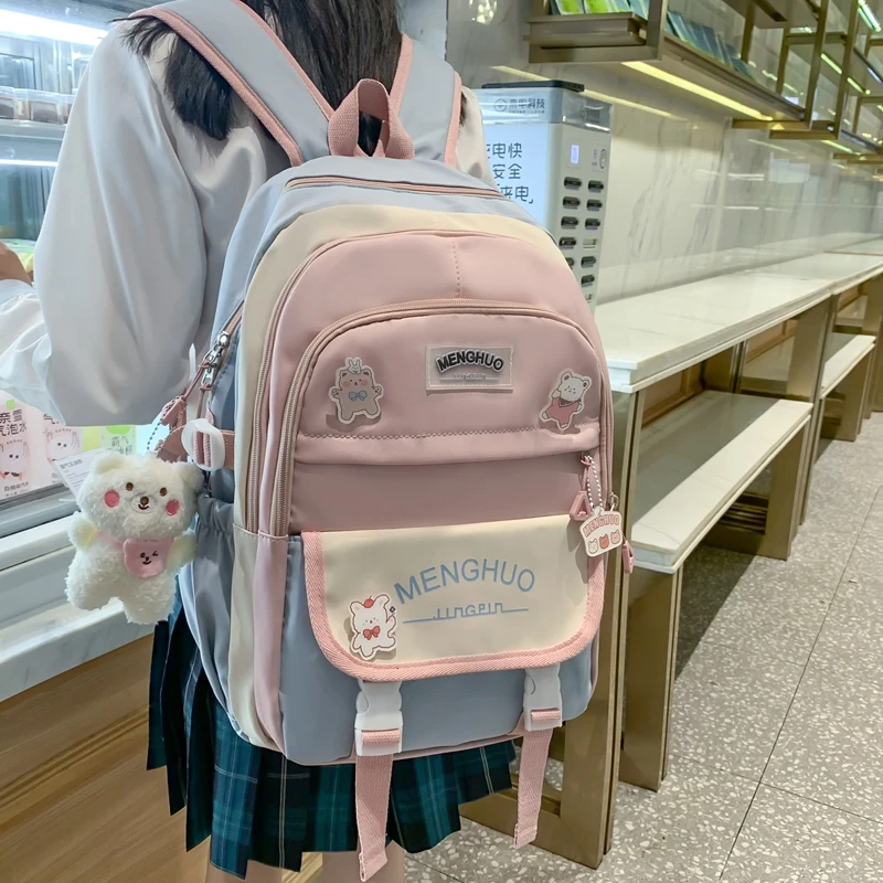 Weiyinxing Women Waterproof Kawaii Laptop Backpack Lady Badge Travel School Bag Girl Cute Harajuku College Backpack Fashion Female Book Bag