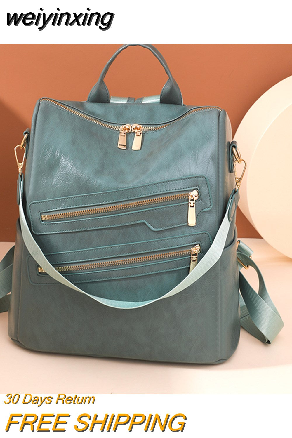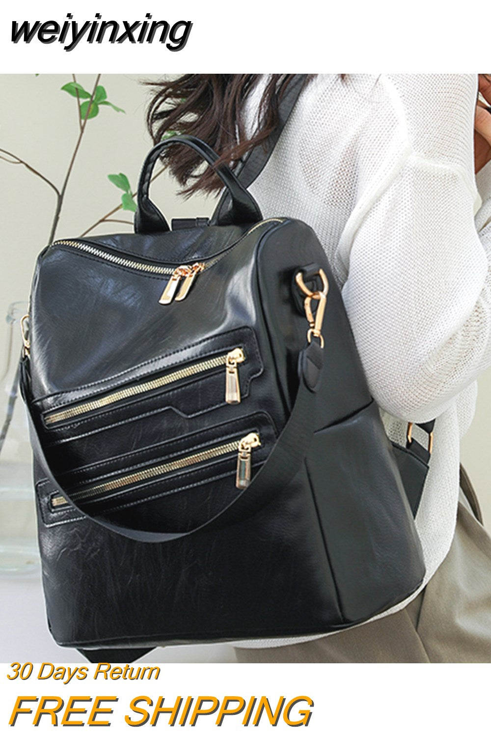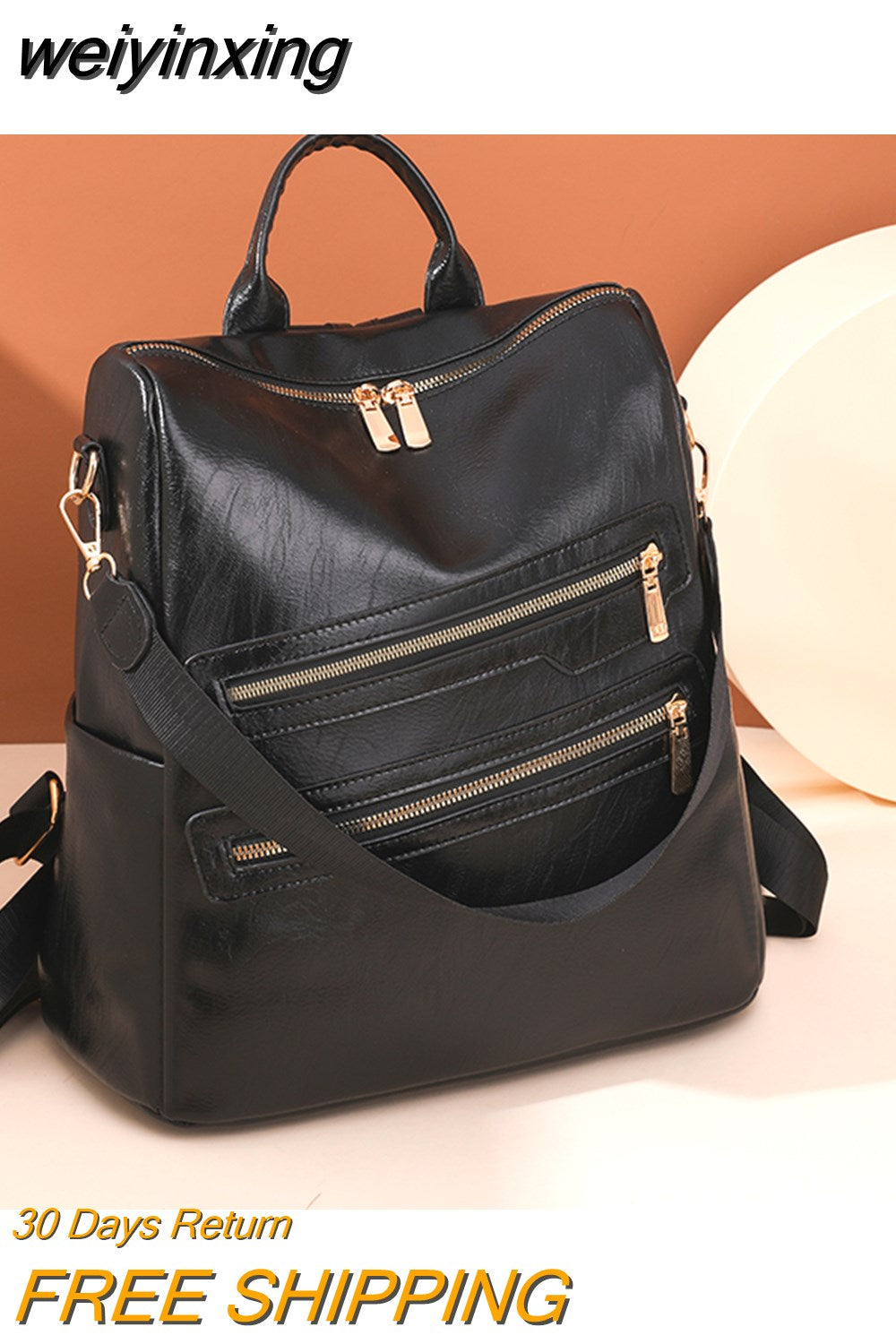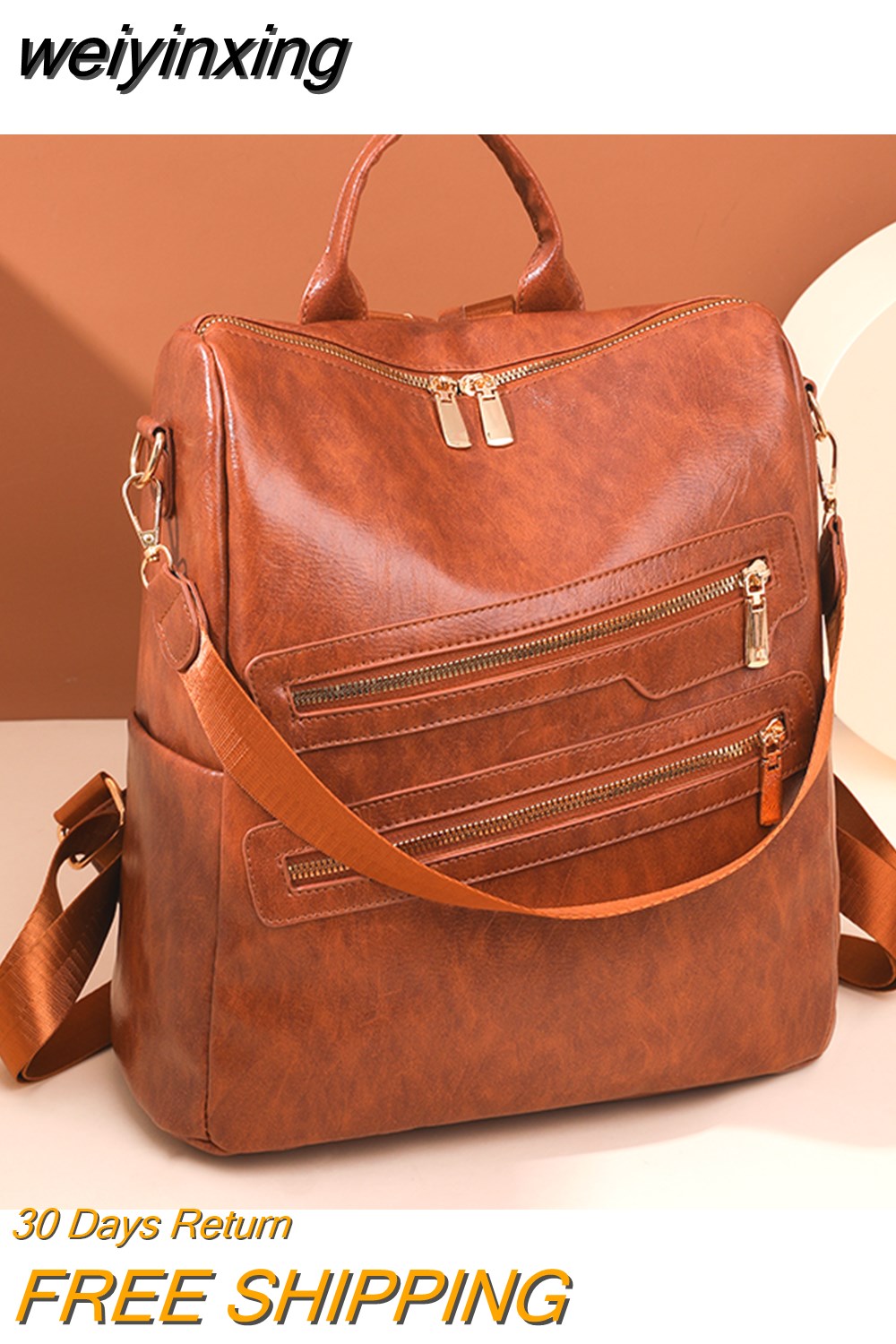 weiyinxing Women's Large Capacity Backpack High Quality Leather Female Retro Leisure Travel Backpack Ladies School Bag 2023 New Backpacks
