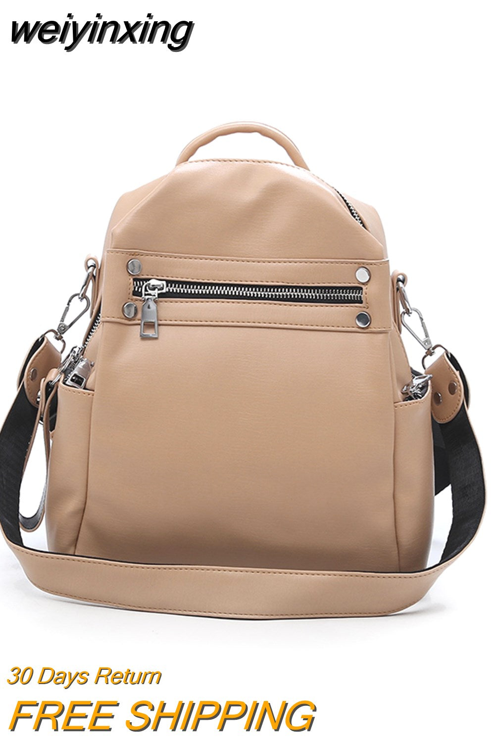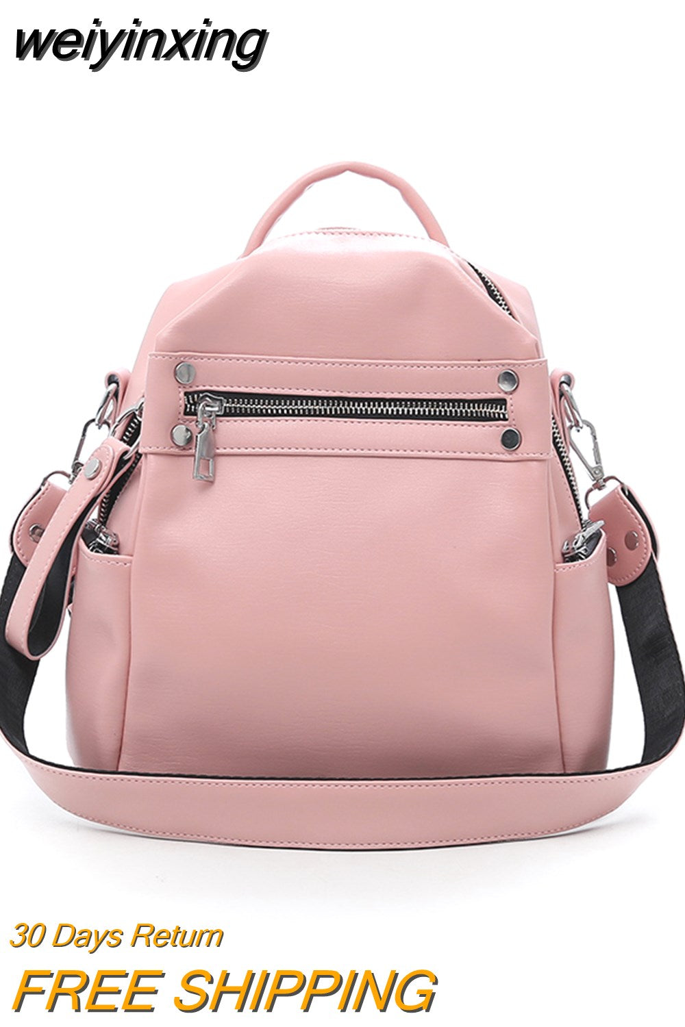 weiyinxing Women's Pu Leather Backpack Female Solid Color Small Double Shoulder Bags Mochila Backbag Schoolbag for Teenger Girls