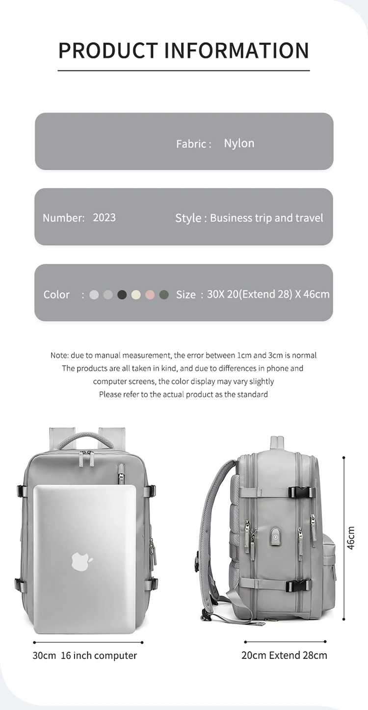 Weiyinxing Women's Travel Backpack Expandable 16 Inch Notebook Lightweight With Shoe Bag USB Charging Waterproof Multifunctional Backpacks