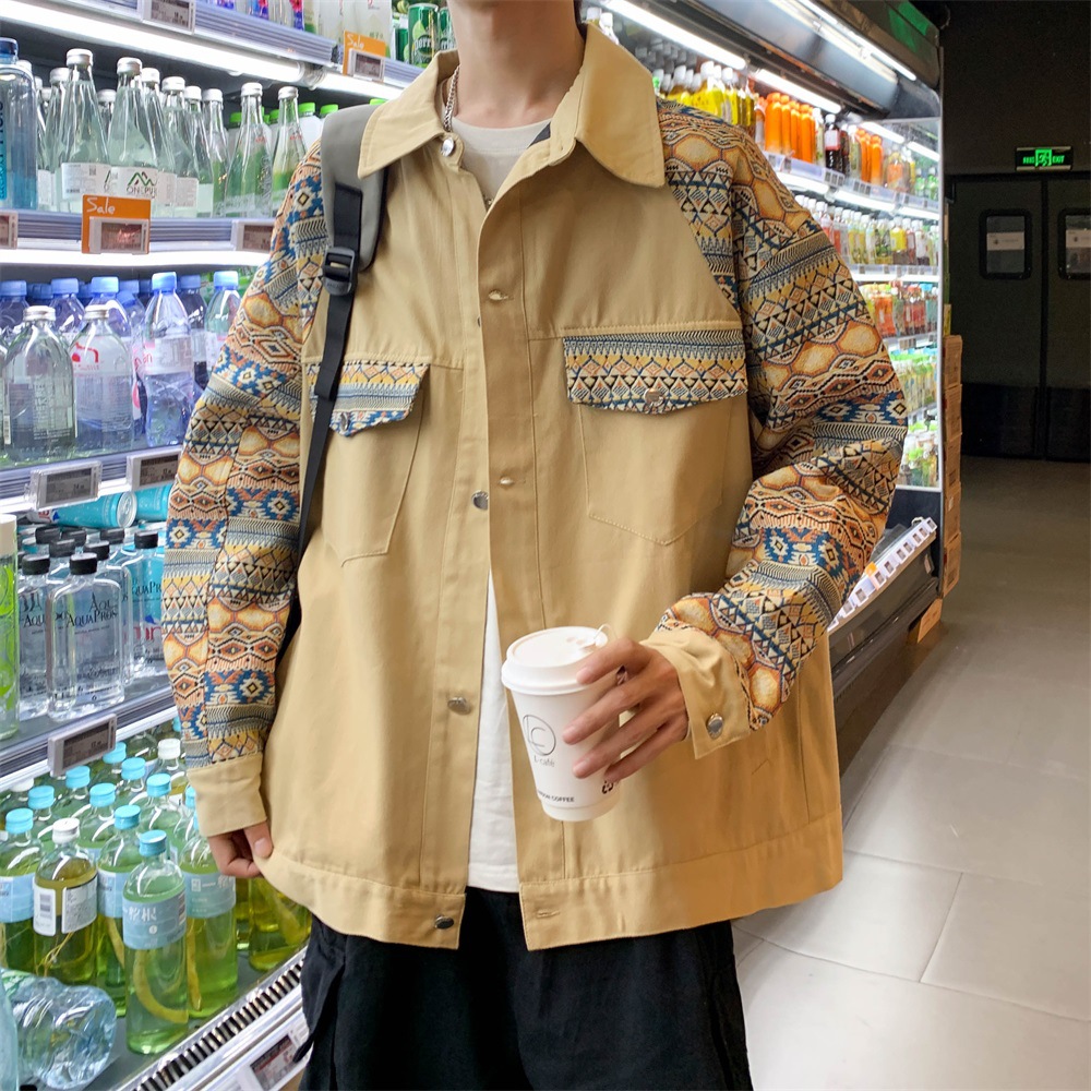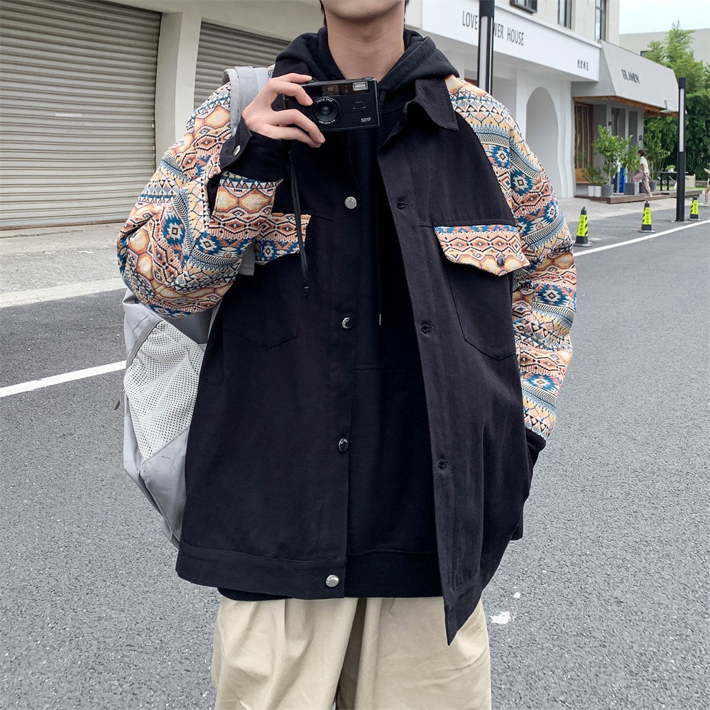 Male Spring And Autumn Design Sense Minority China-Fashion Ruffian Handsome Print Jacket Large Size Retro Niche Splicing Jacket Coat