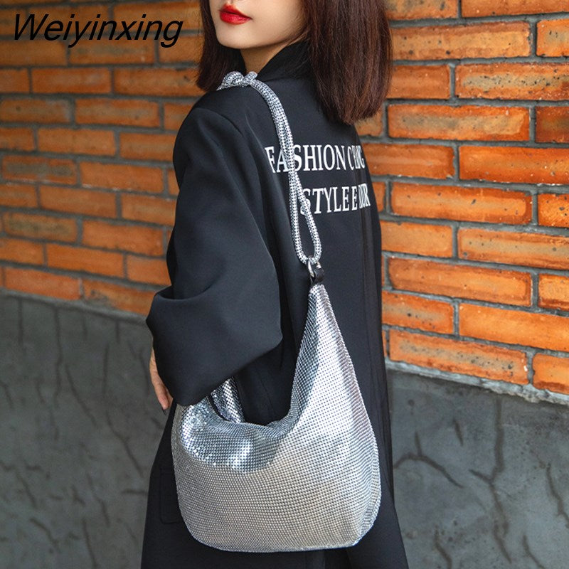 Weiyinxing and handbag luxury Designer bag for women shoulder bag Shiny Canvas Sequins Purse Women's bag female handle silver bag