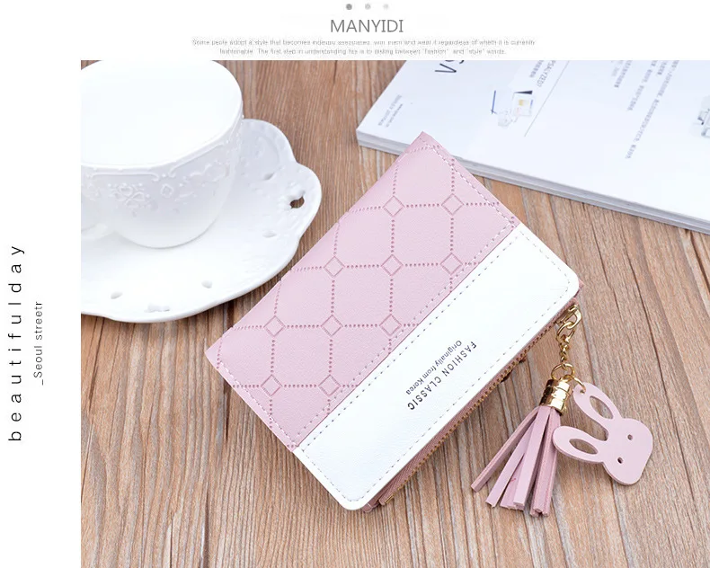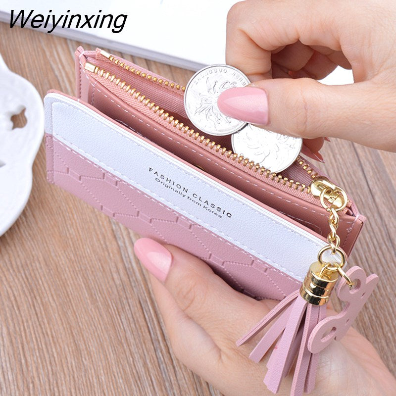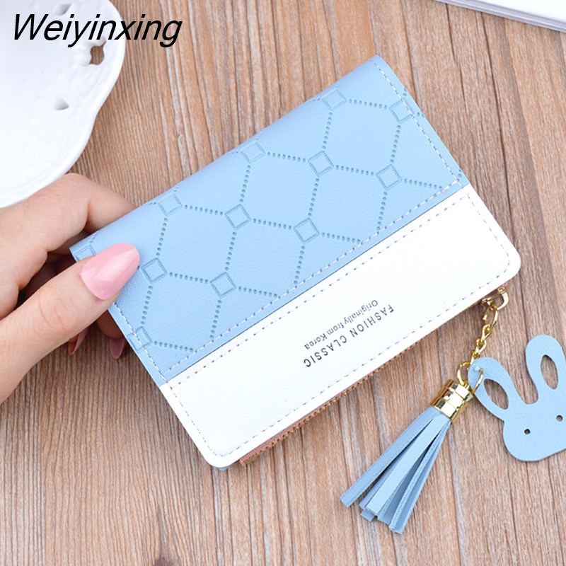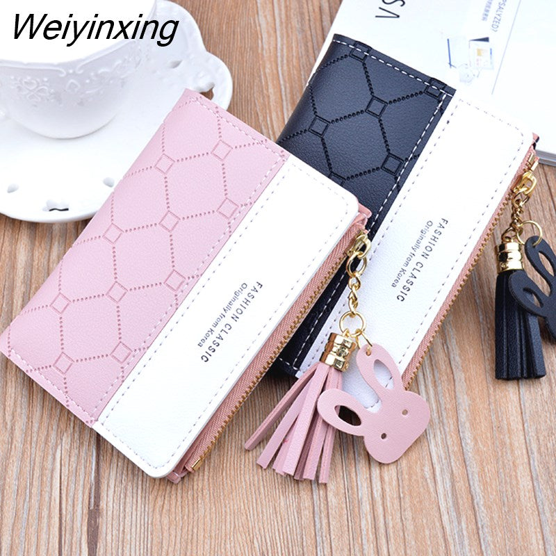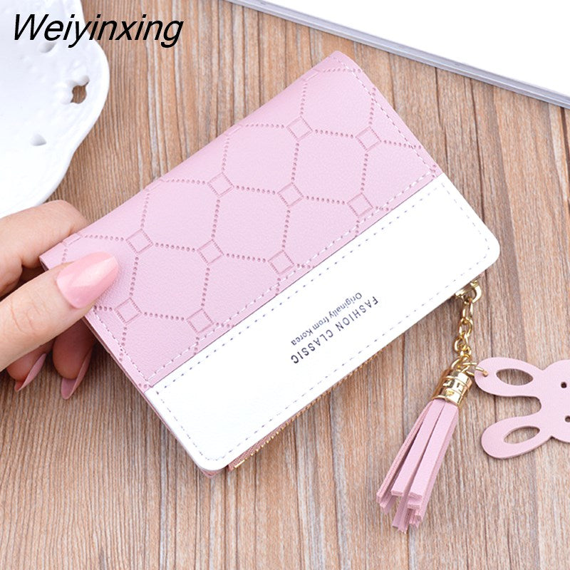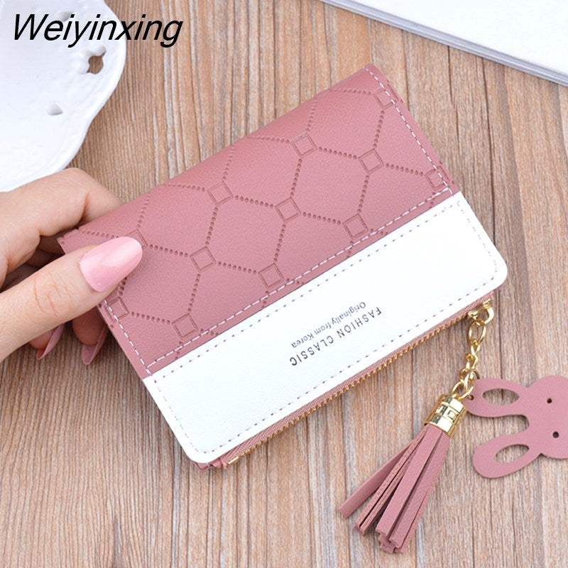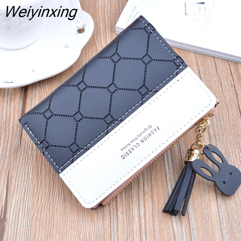 Weiyinxing Arrival Short Women Wallets Tassel Zipper Purse Patchwork Fashion Panelled Wallets Trendy Coin Purse Card Holder Leather