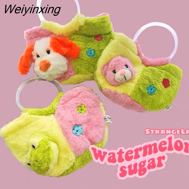 Weiyinxing Autumn and Winter Japanese Harajuku Style Plush Melon Messenger Bag Shoulder Bags High Capacity Storage Bag Women Bag