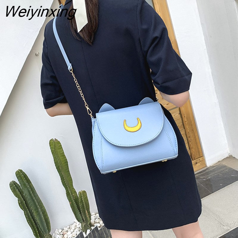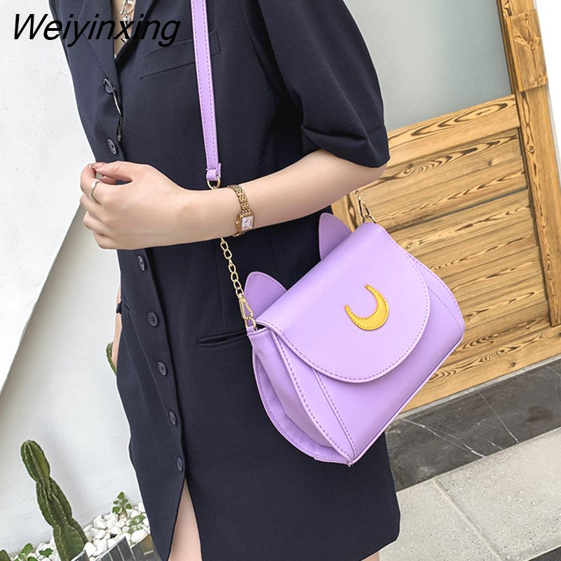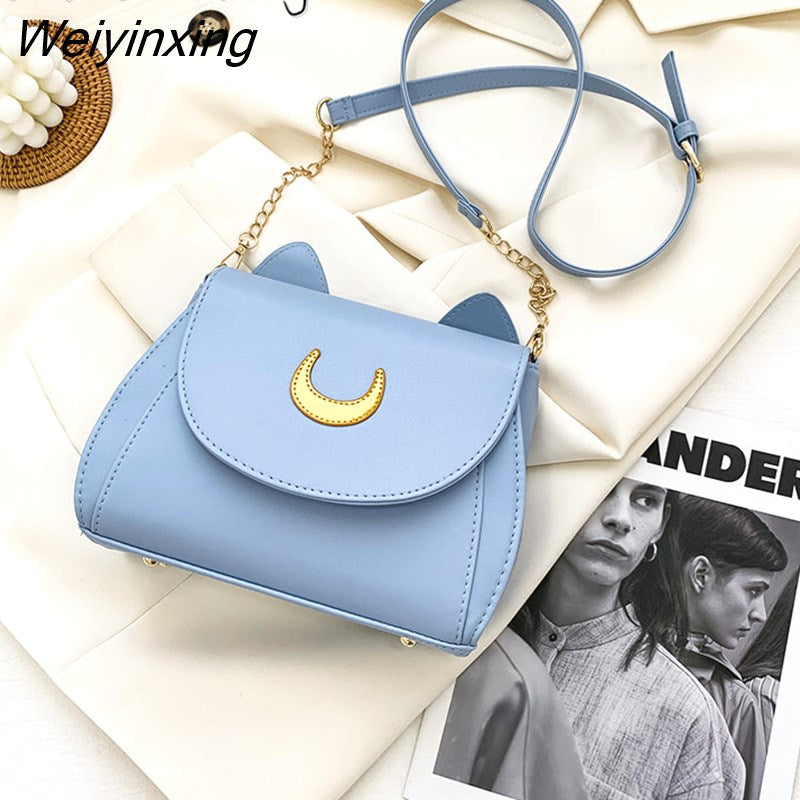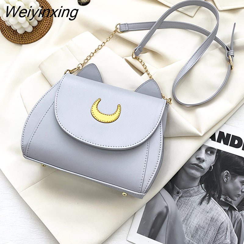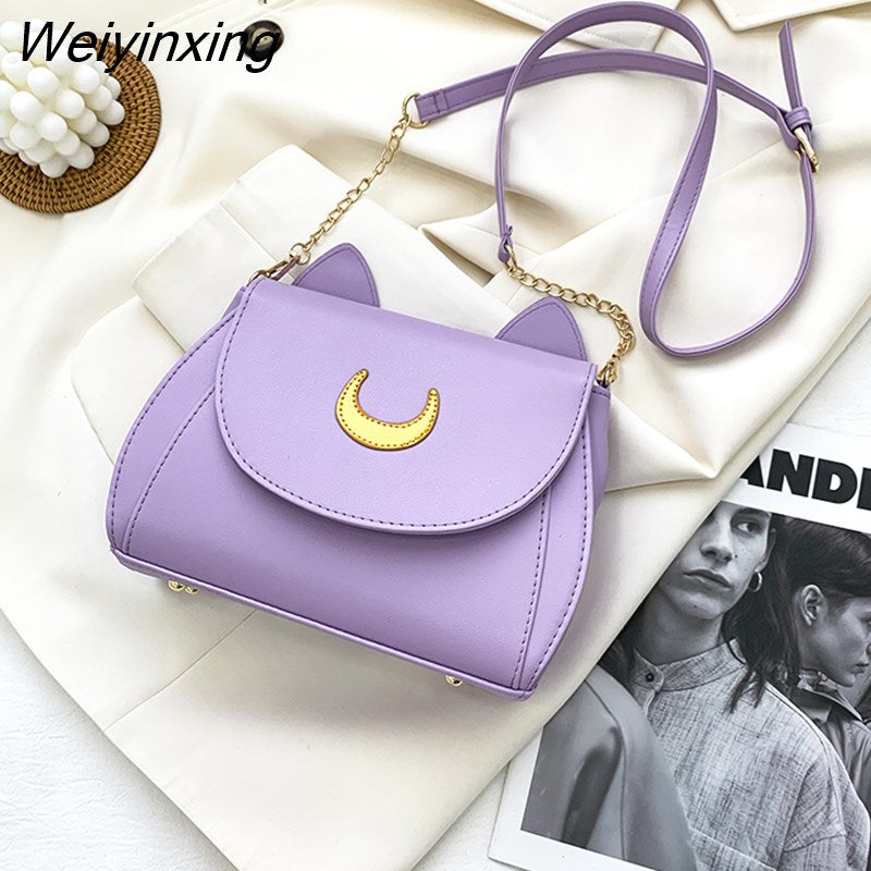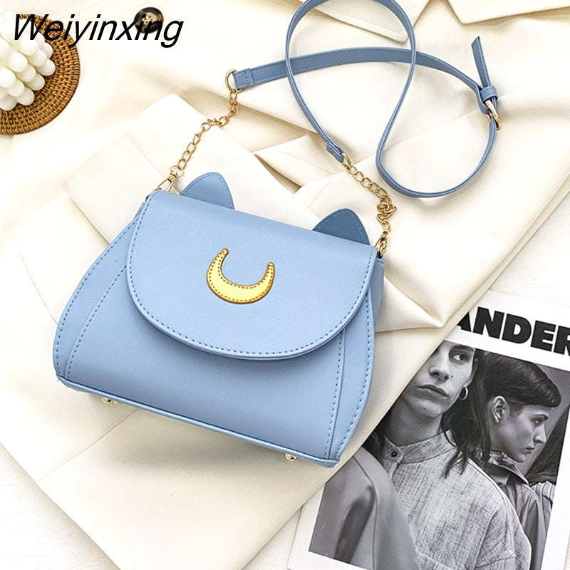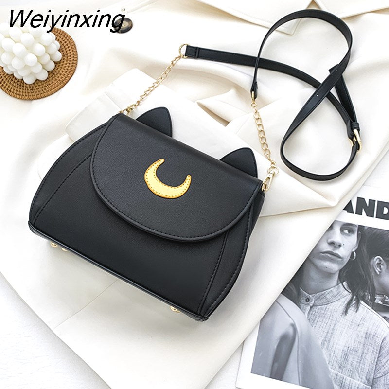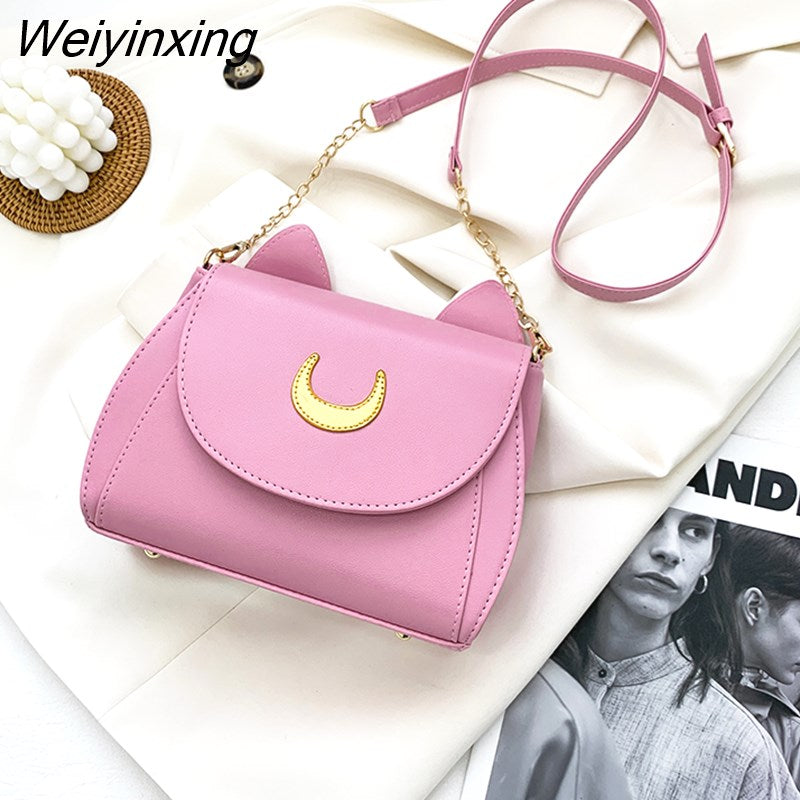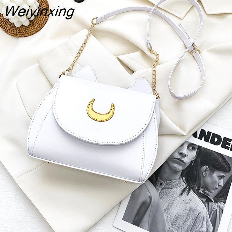Weiyinxing Autumn Sailor Moon Ladies Handbag Cat Shape Chain Women Shoulder Bag PU Leather Bag Women Tote Bag Crossbody Leather Wallet