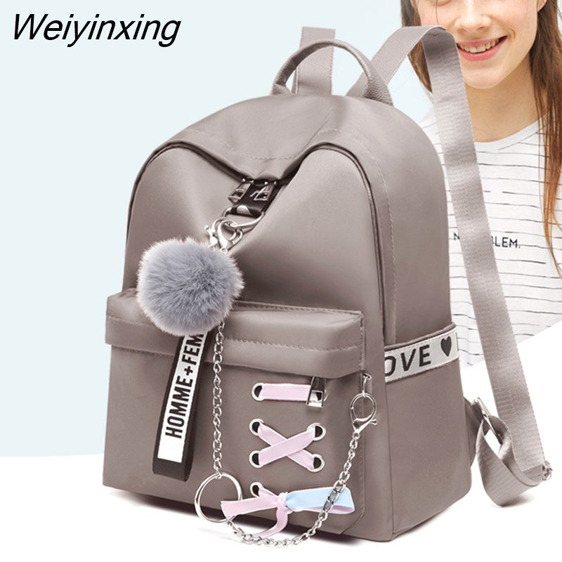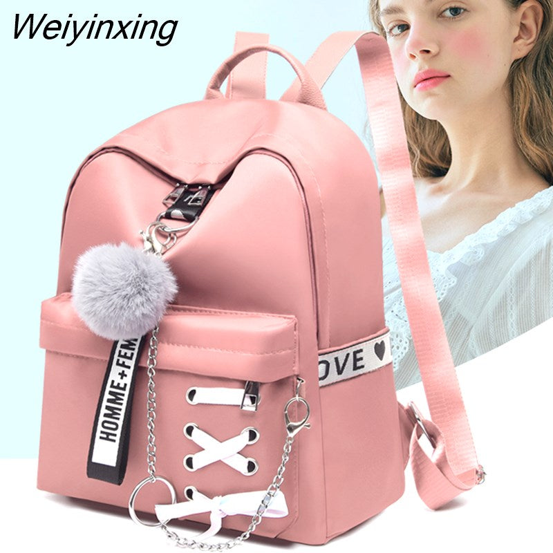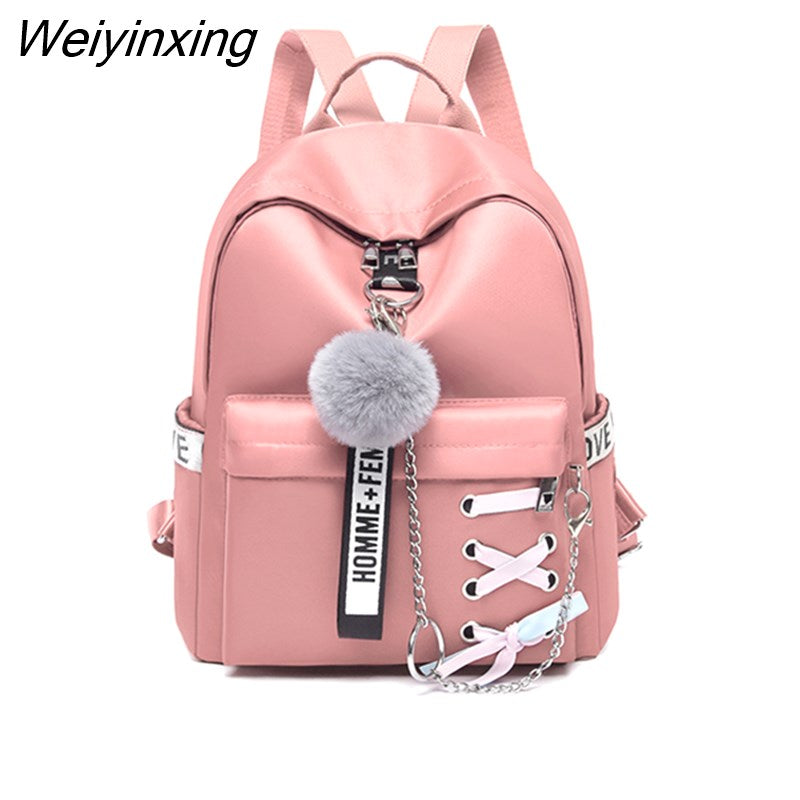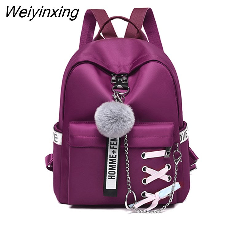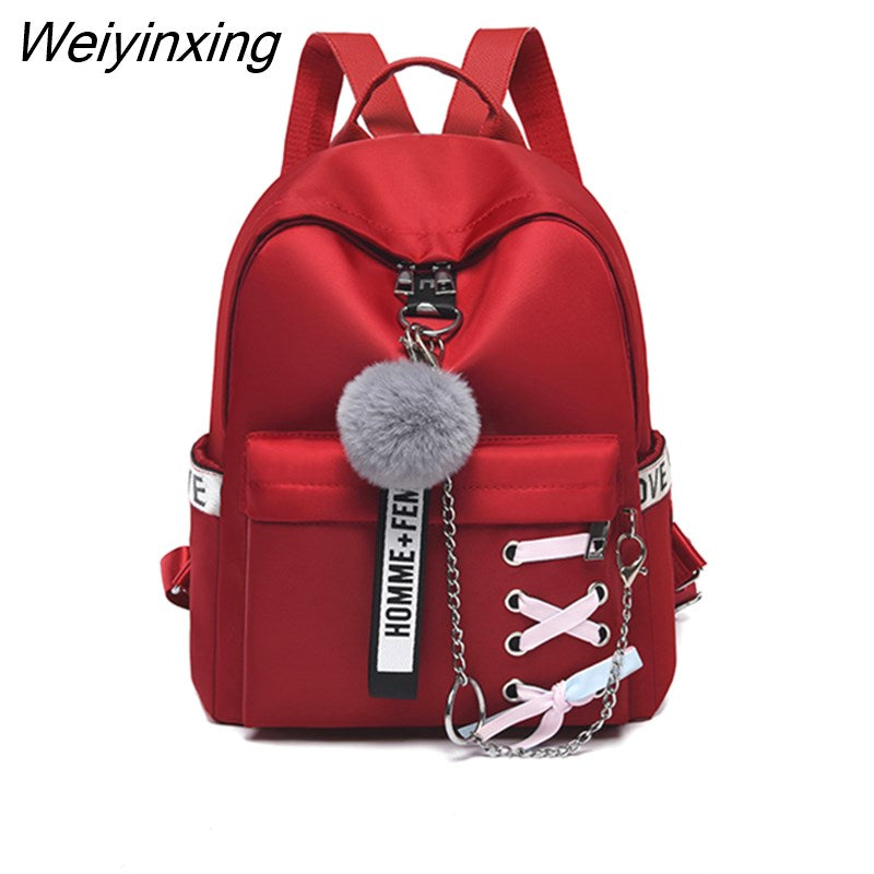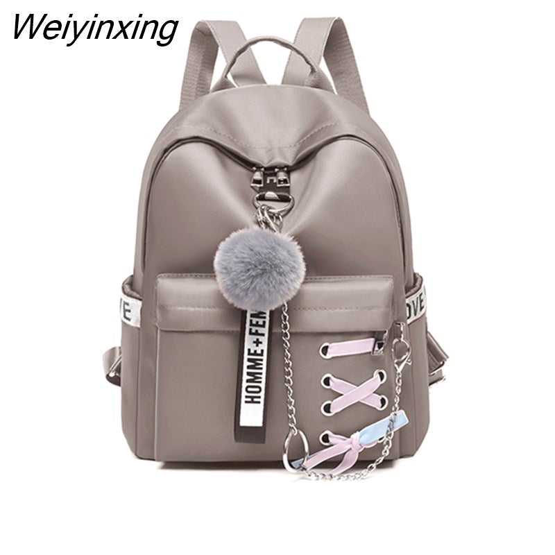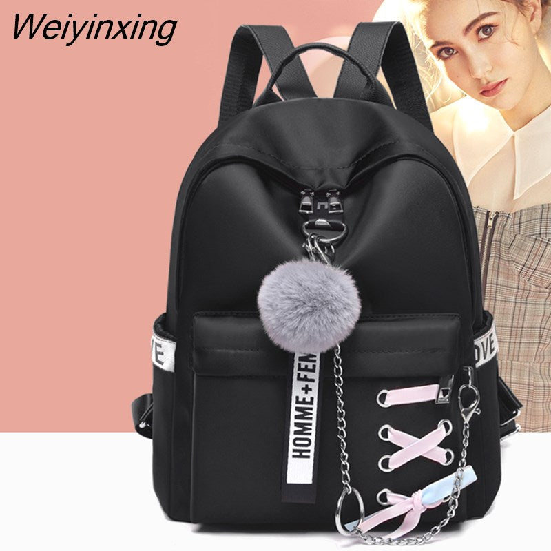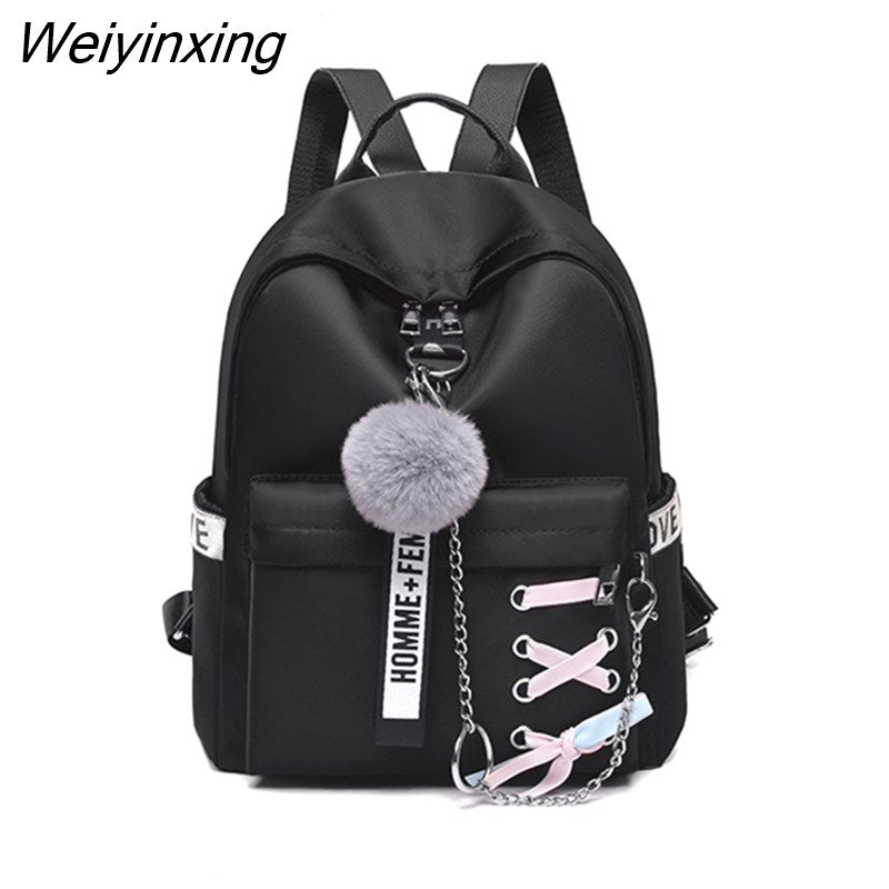 Weiyinxing Backpack Teenager Trend Student Schoolbags Multi-pocket Shoulder Bags Female Oxford cloth Backpack Fashion Hair ball pendant