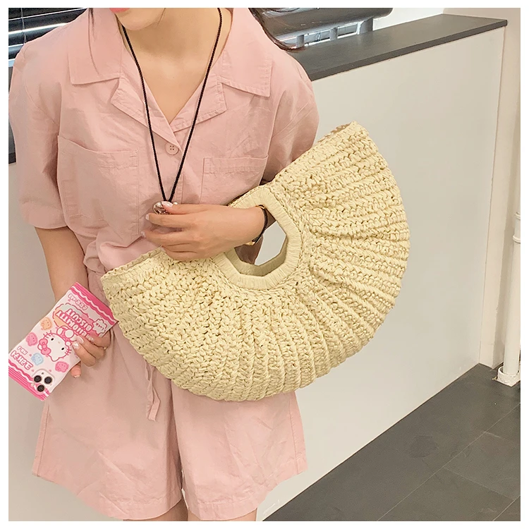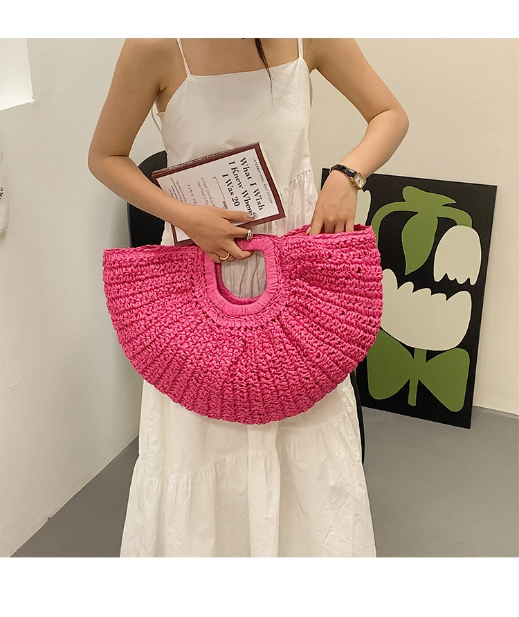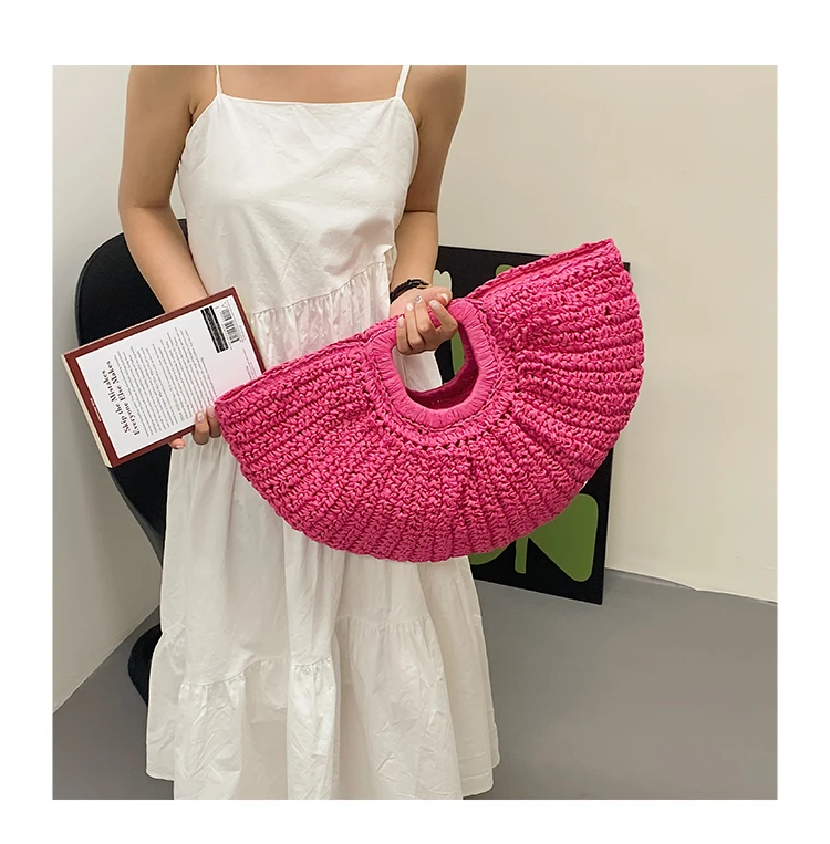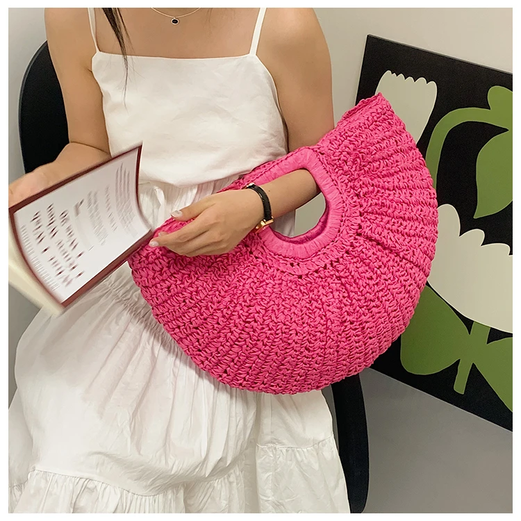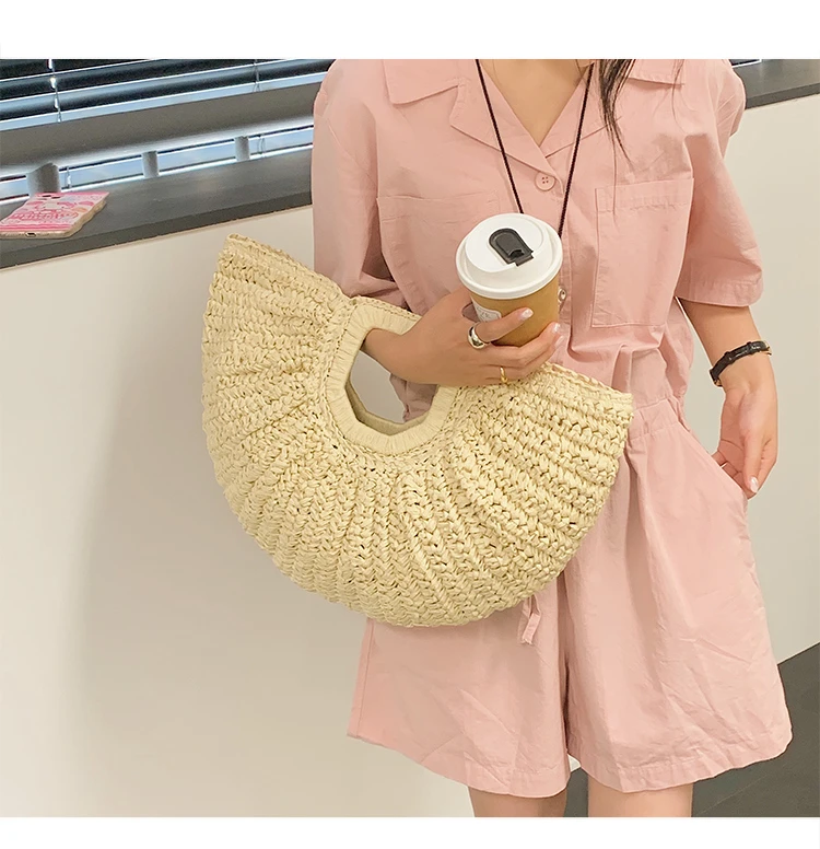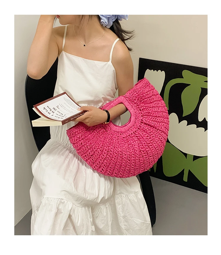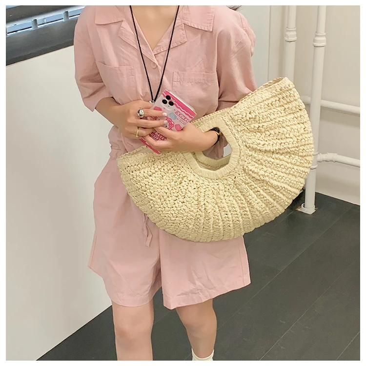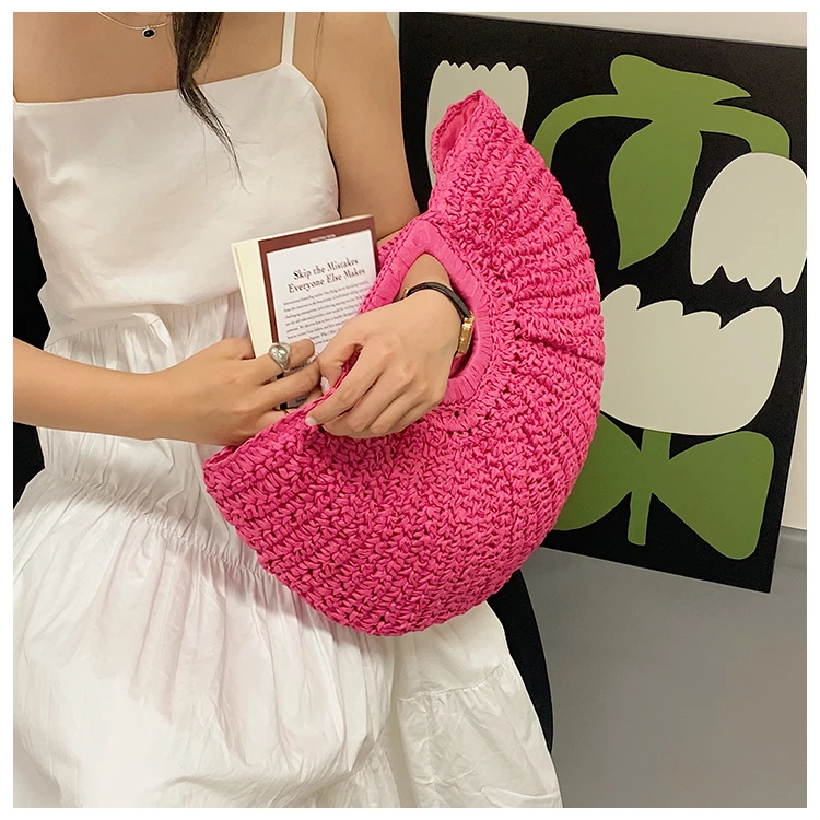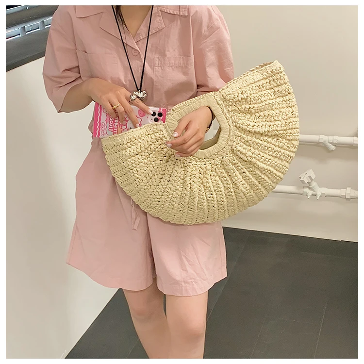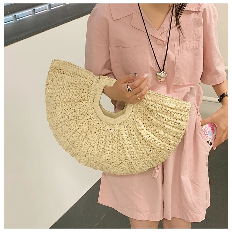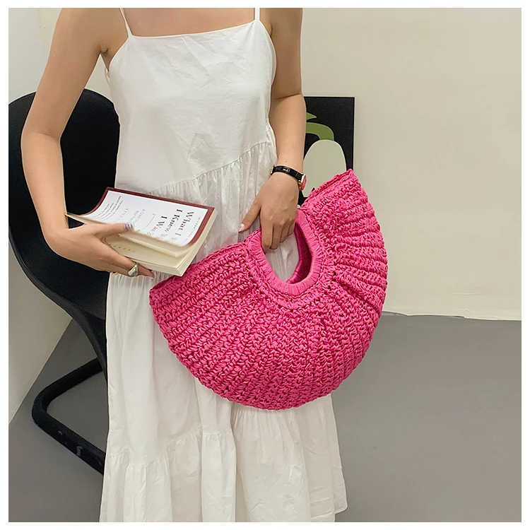 Weiyinxing Bags 2024 Summer Handmade Bags for Women Beach Weaving Ladies Straw Bag Wrapped Beach Bag Moon Shaped Top Handle Handbags