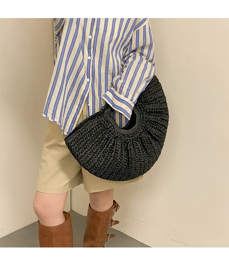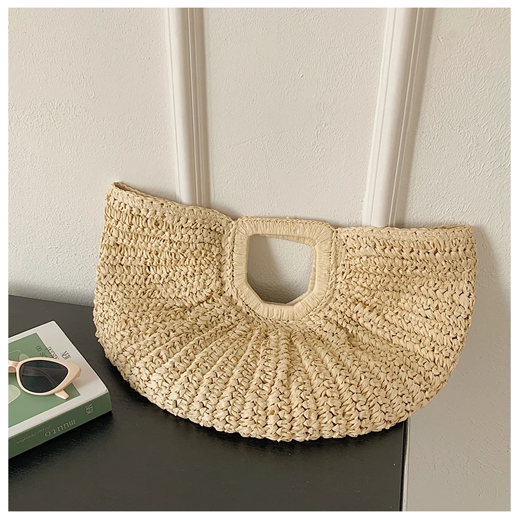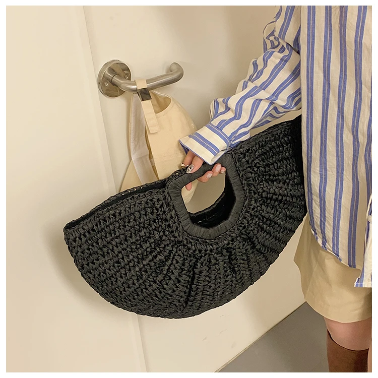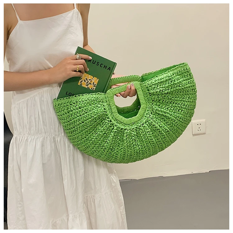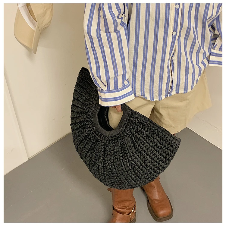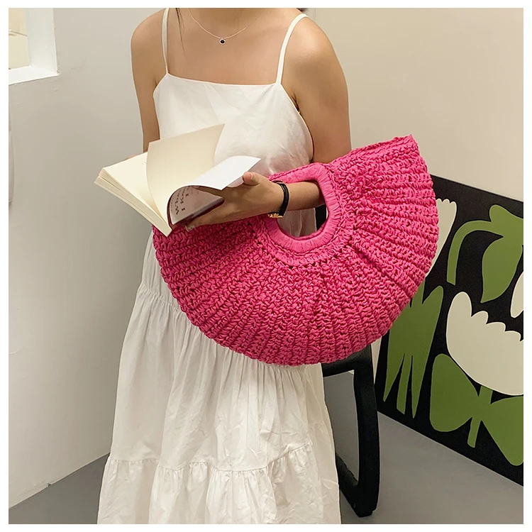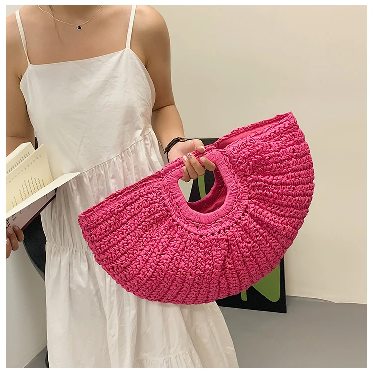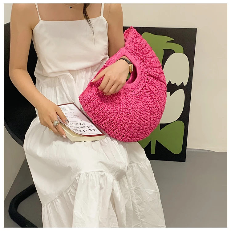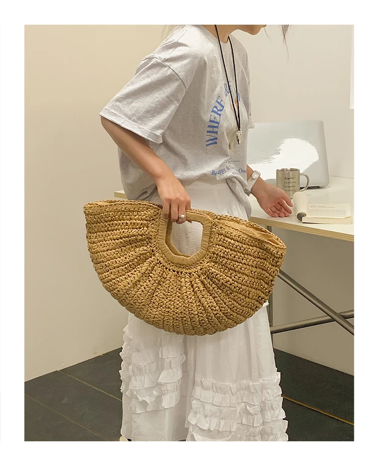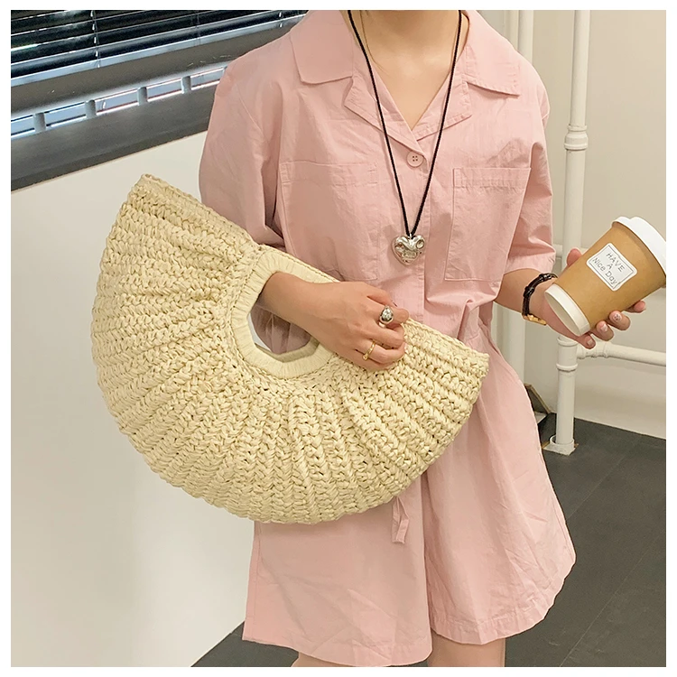 Weiyinxing Bags 2024 Summer Handmade Bags for Women Beach Weaving Ladies Straw Bag Wrapped Beach Bag Moon Shaped Top Handle Handbags