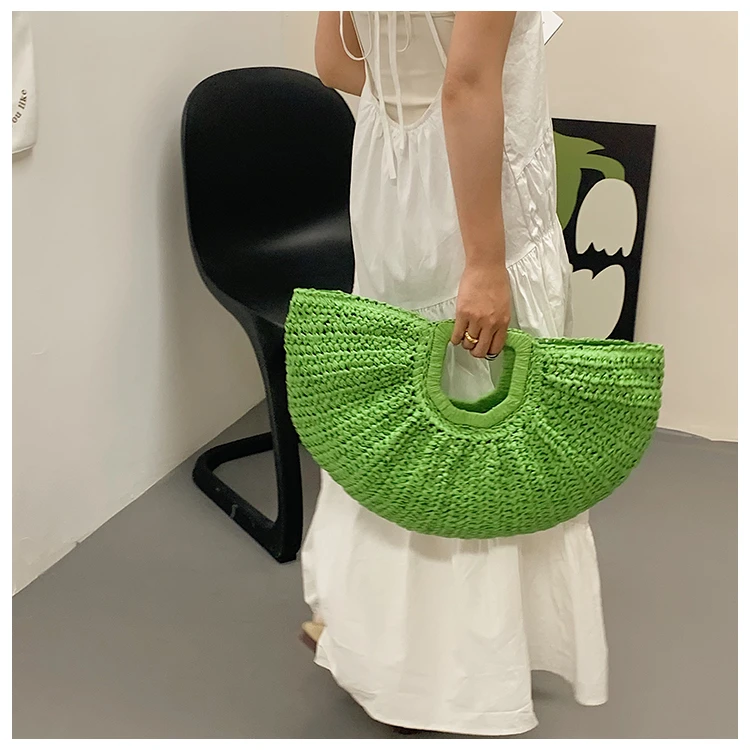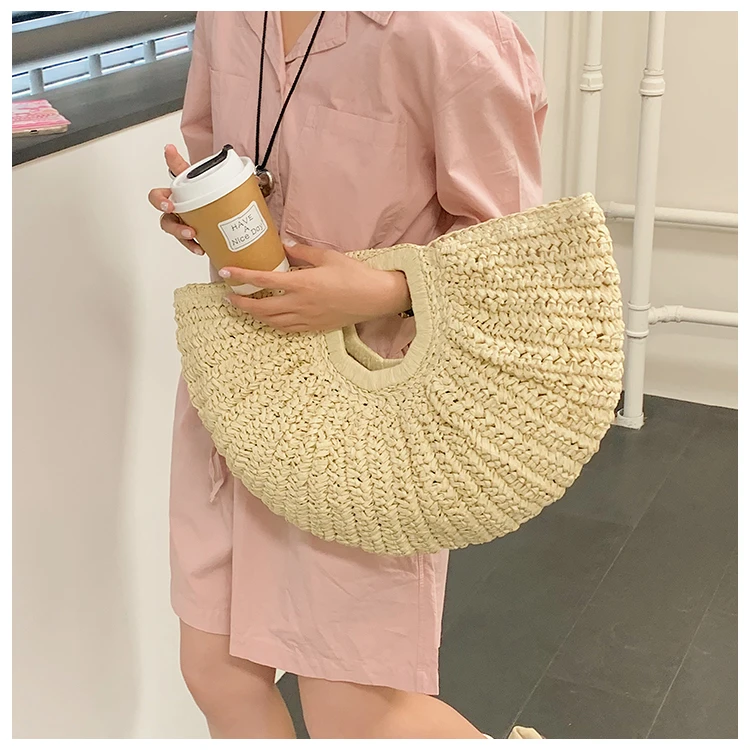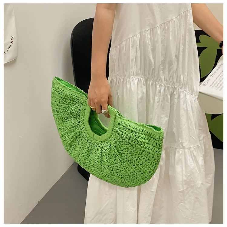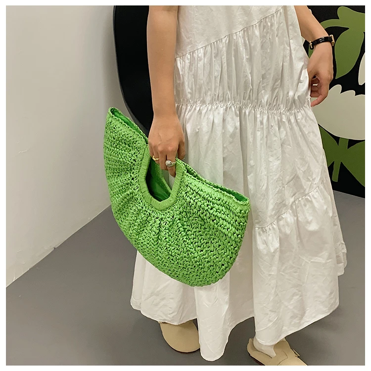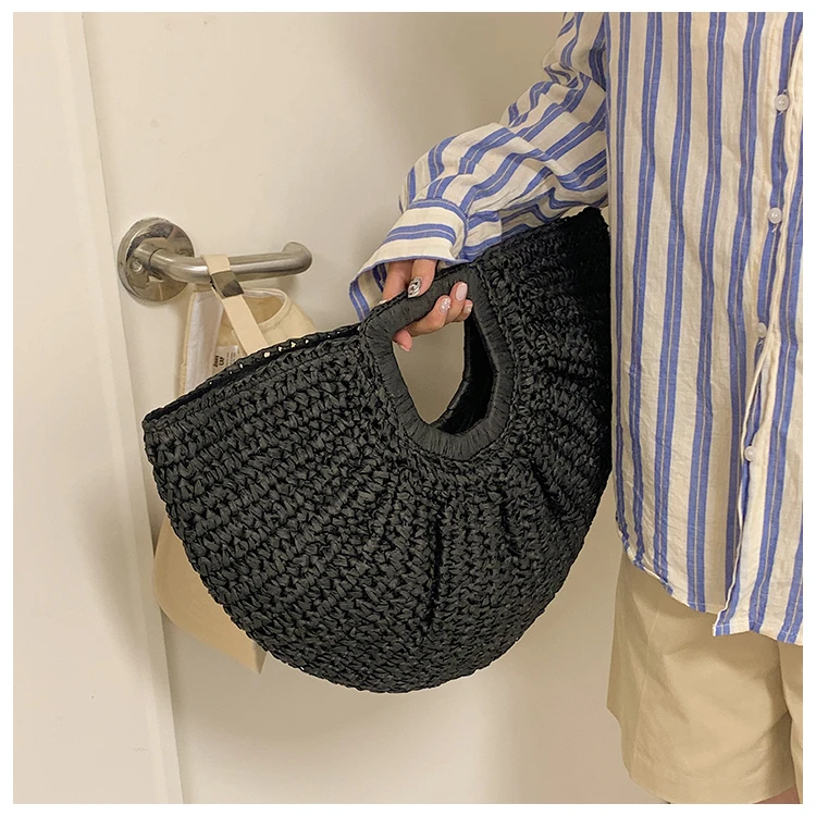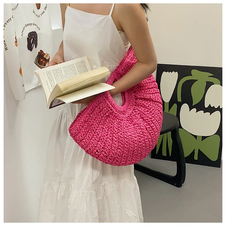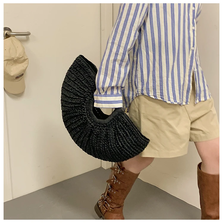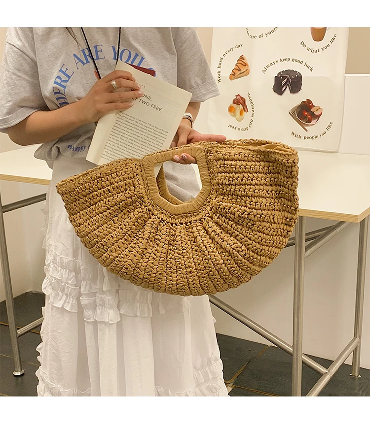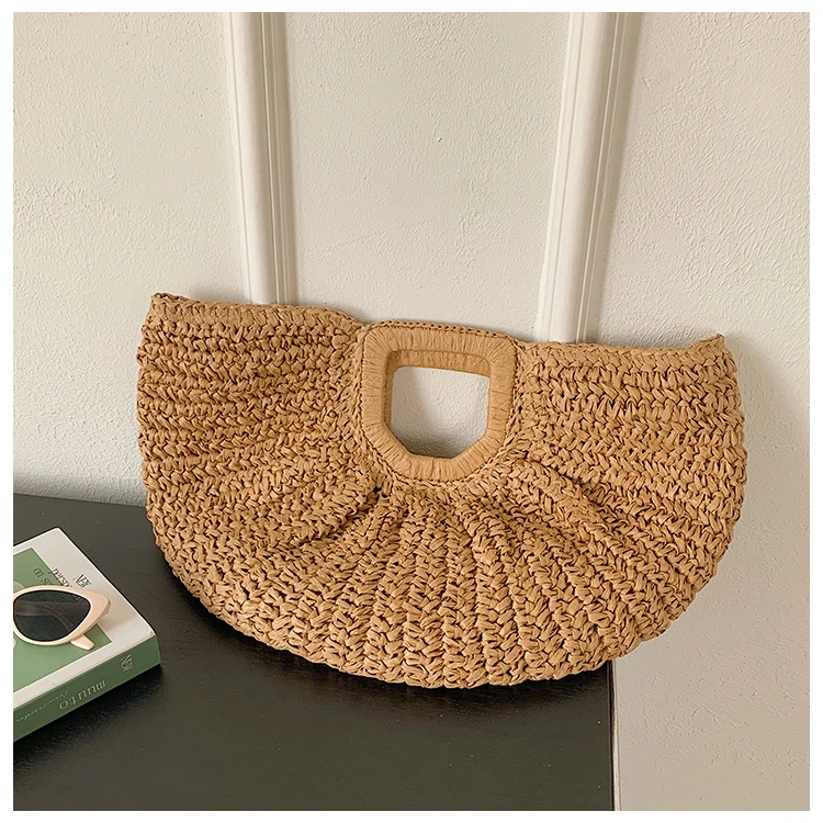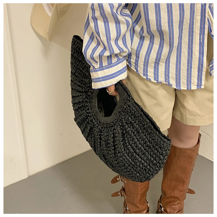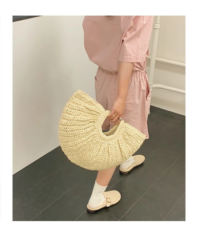 Weiyinxing Bags 2024 Summer Handmade Bags for Women Beach Weaving Ladies Straw Bag Wrapped Beach Bag Moon Shaped Top Handle Handbags