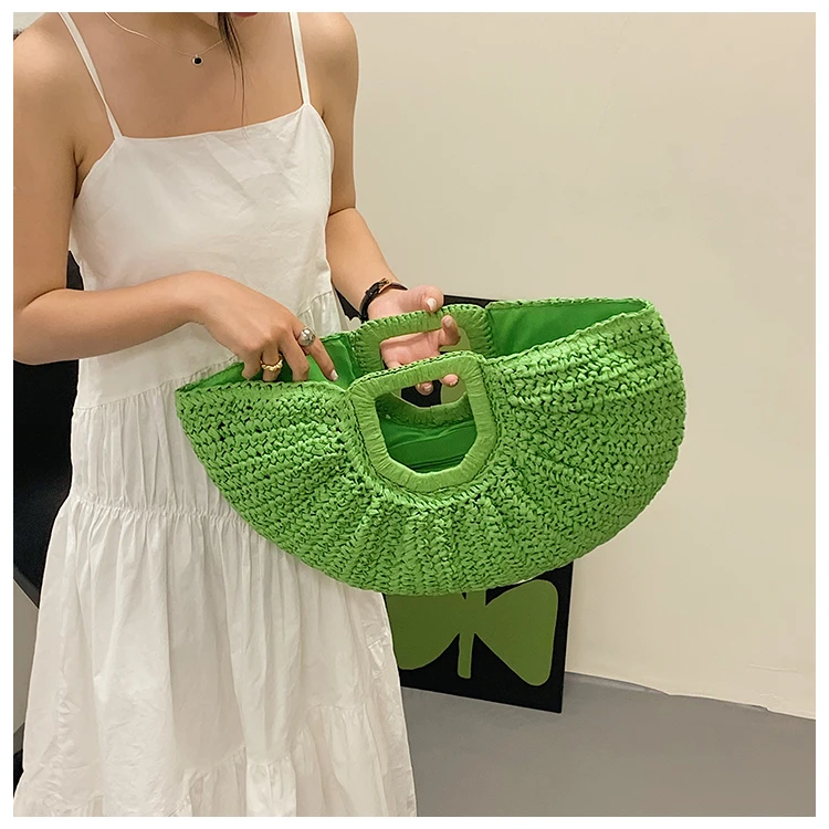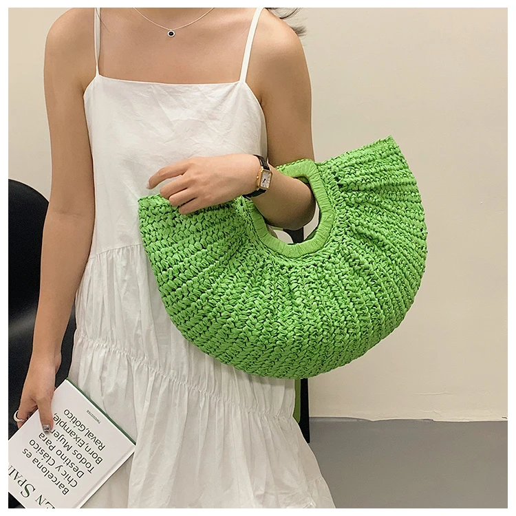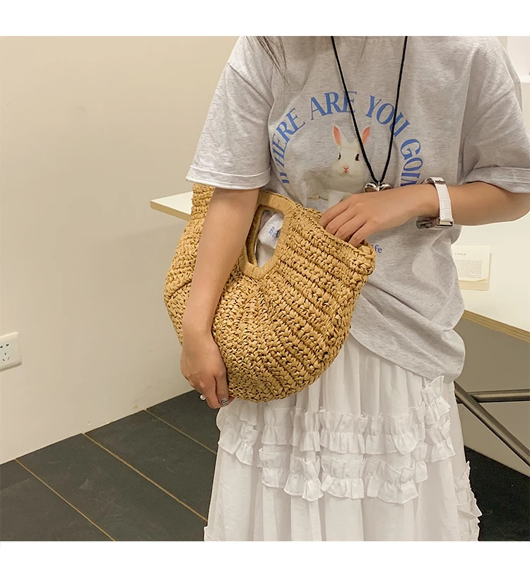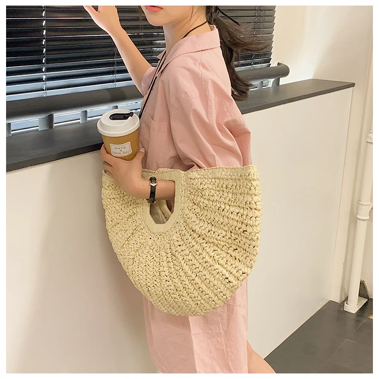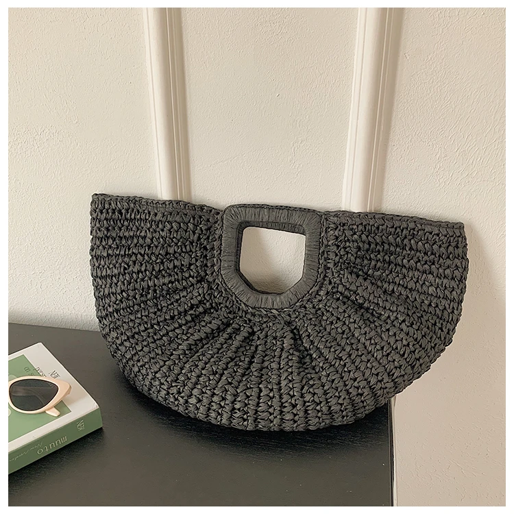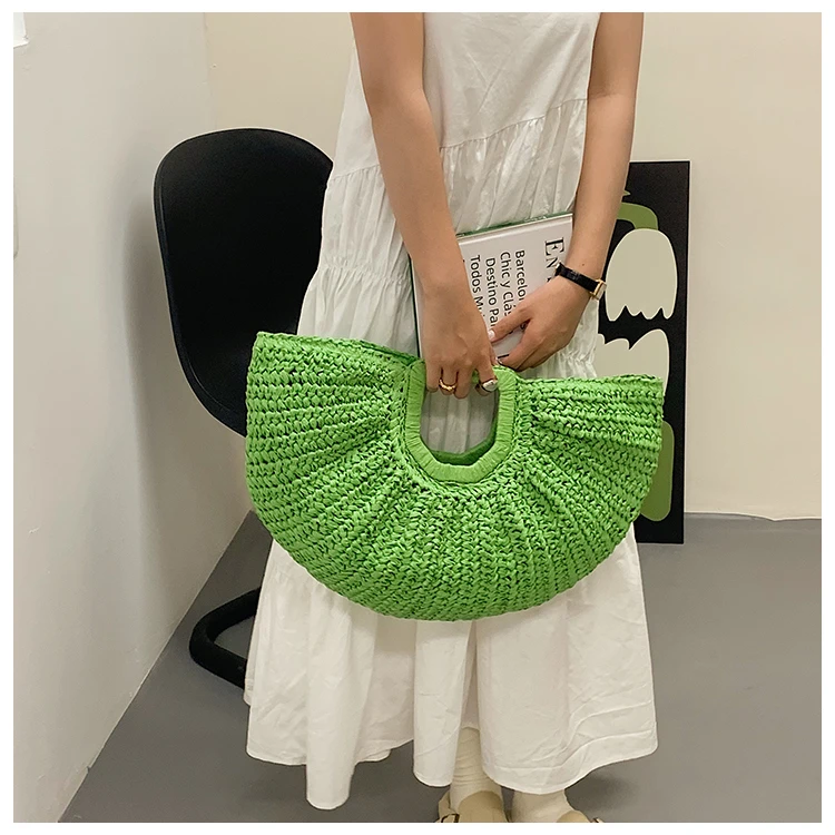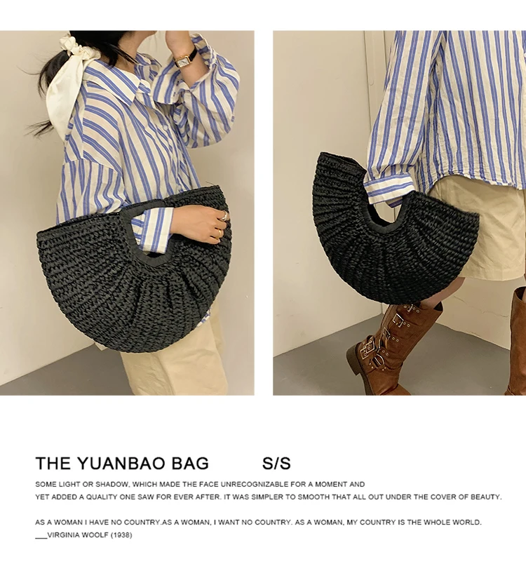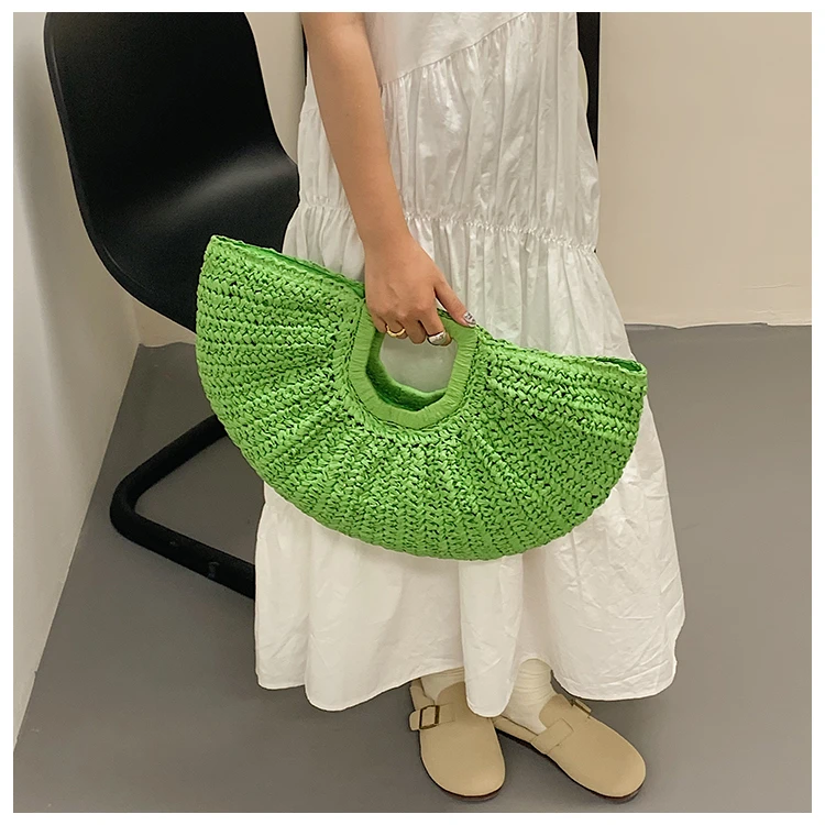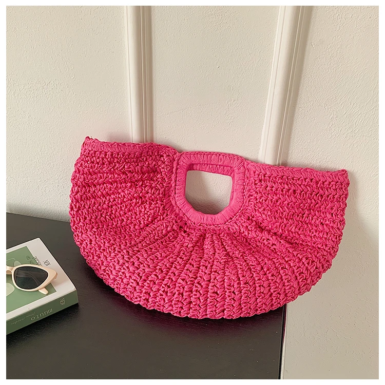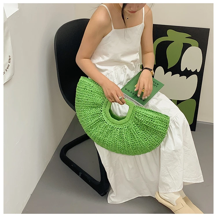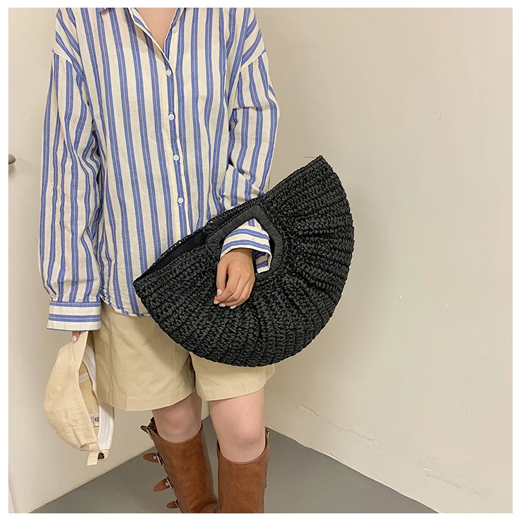 Weiyinxing Bags 2024 Summer Handmade Bags for Women Beach Weaving Ladies Straw Bag Wrapped Beach Bag Moon Shaped Top Handle Handbags