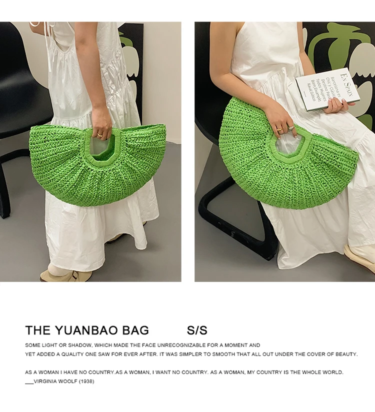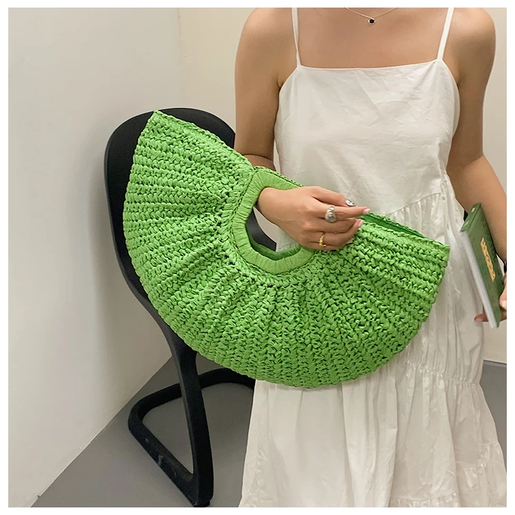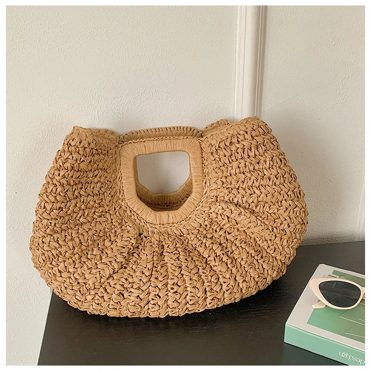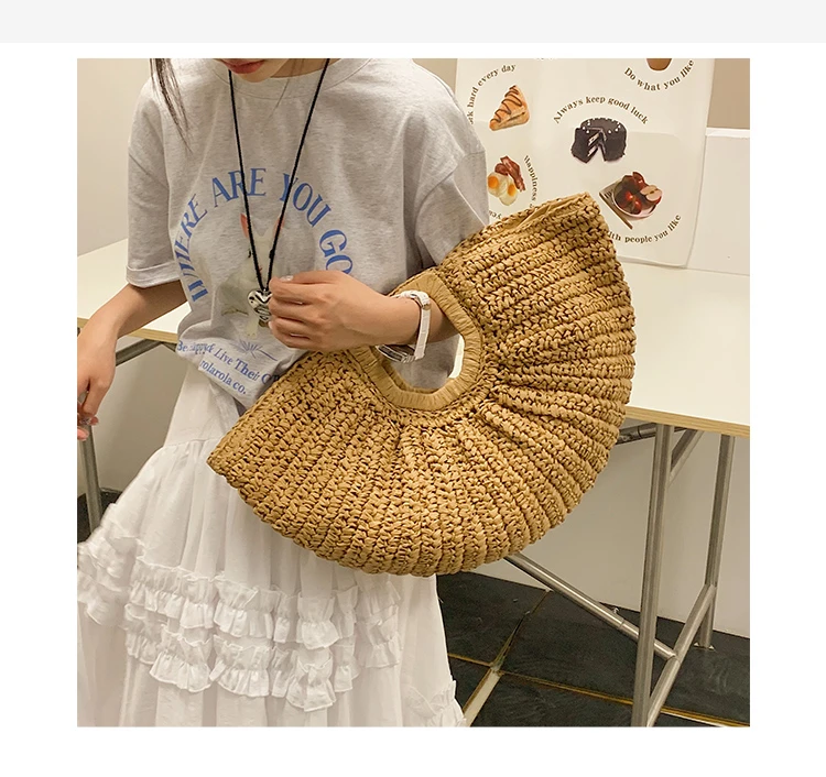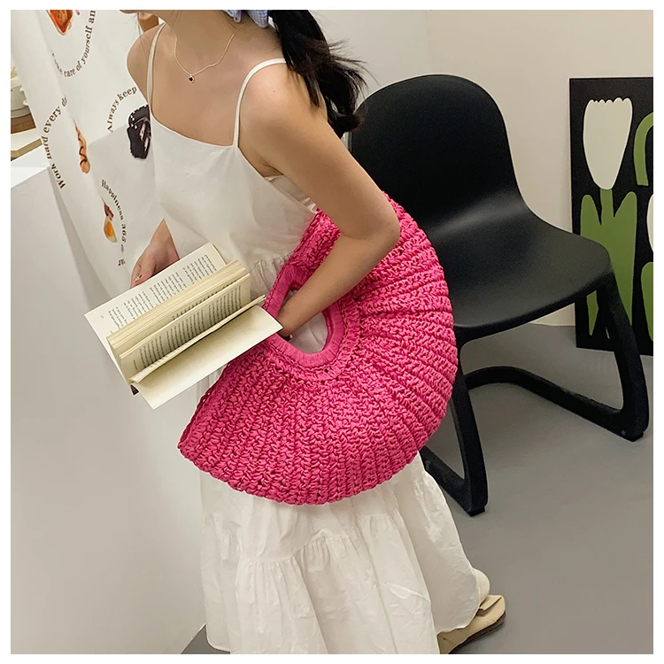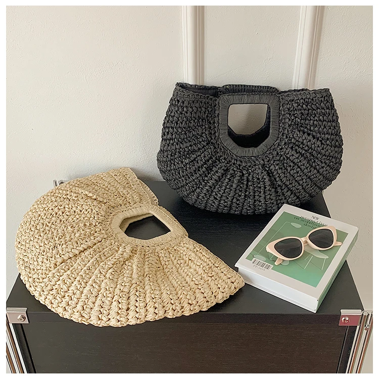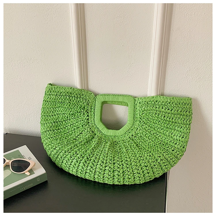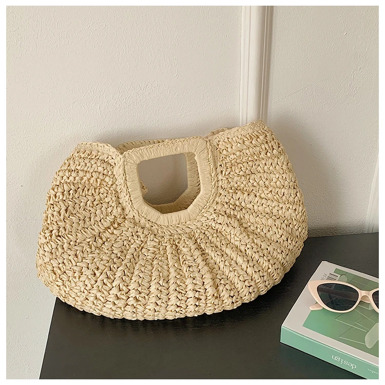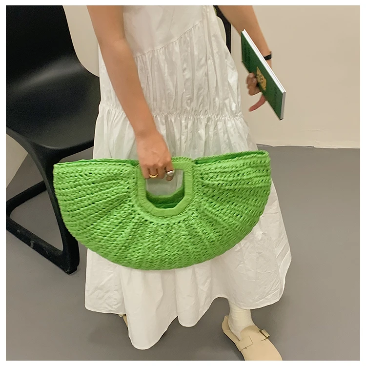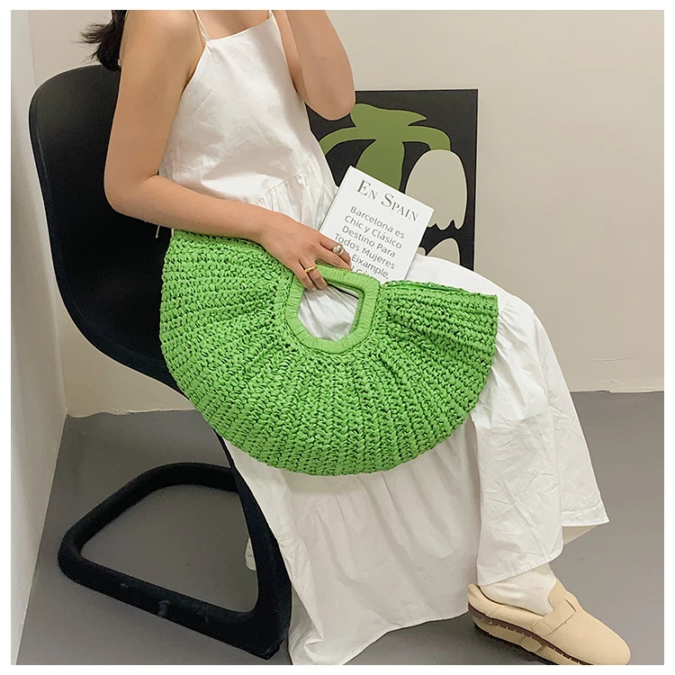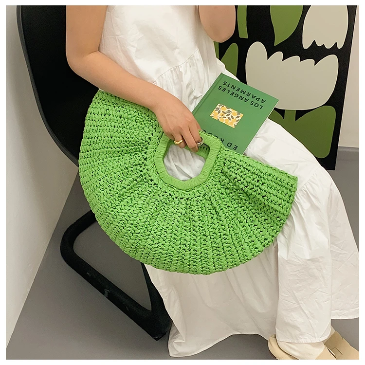 Weiyinxing Bags 2024 Summer Handmade Bags for Women Beach Weaving Ladies Straw Bag Wrapped Beach Bag Moon Shaped Top Handle Handbags