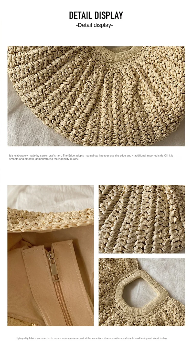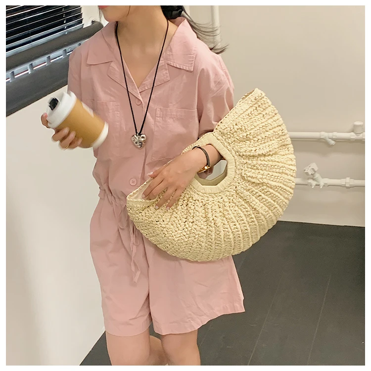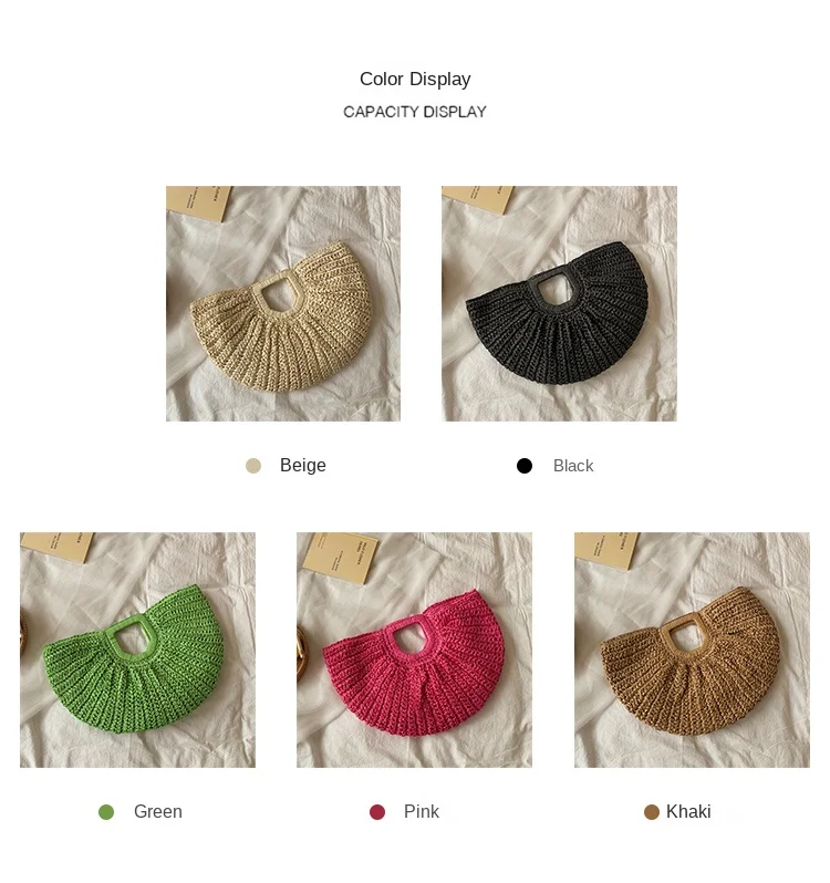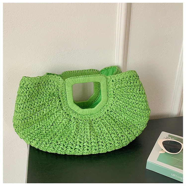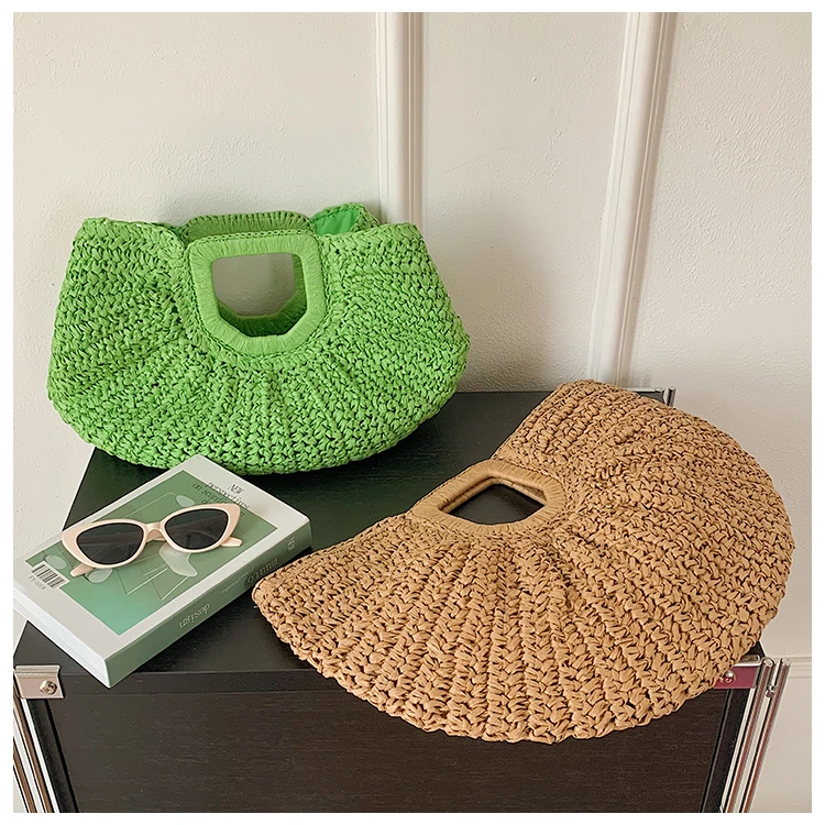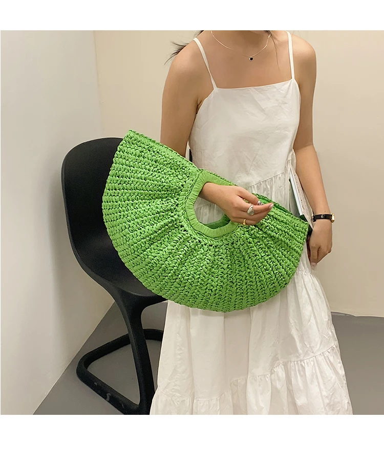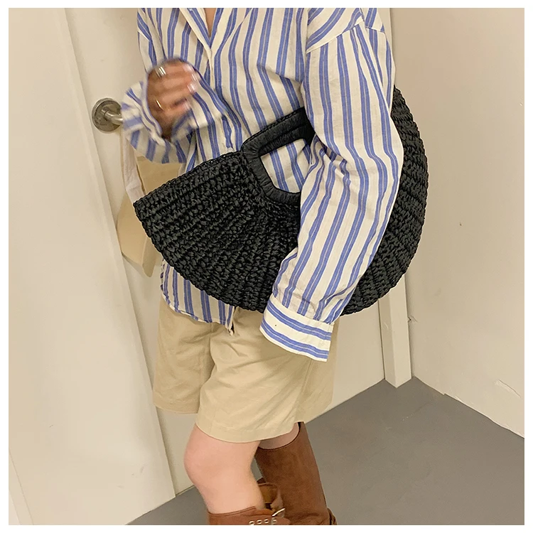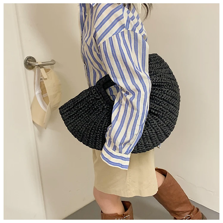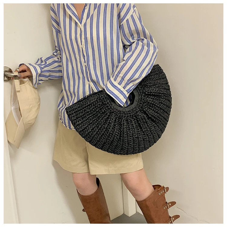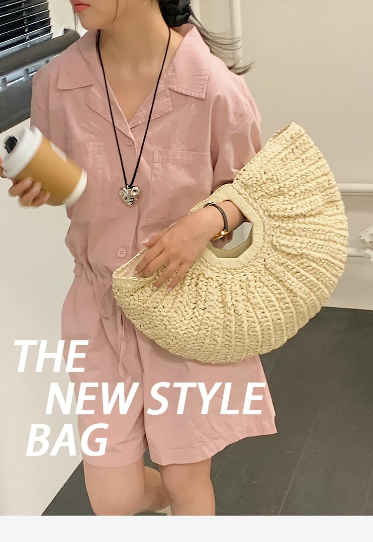 Weiyinxing Bags 2024 Summer Handmade Bags for Women Beach Weaving Ladies Straw Bag Wrapped Beach Bag Moon Shaped Top Handle Handbags