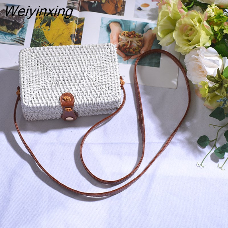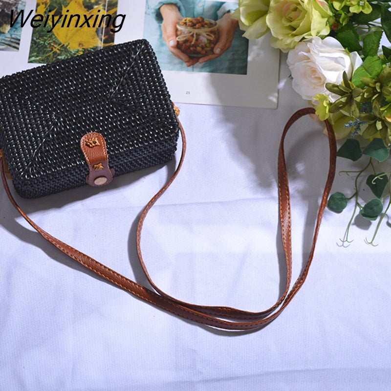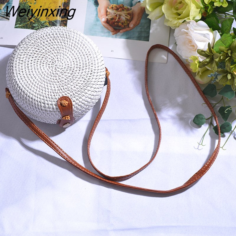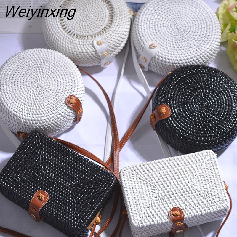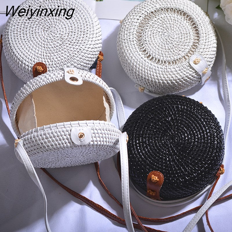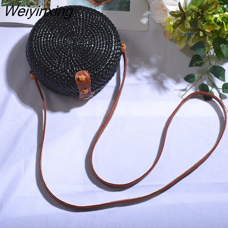 Weiyinxing Black White Round Straw Bags Women Summer Rattan Bag Handmade Woven Beach Cross Body Bag Circle Bohemia Handbag Bali Box