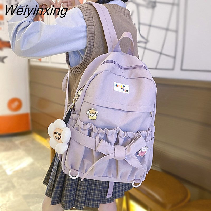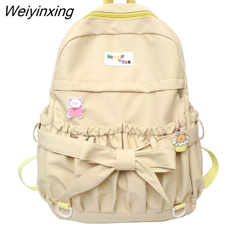 Weiyinxing Bow Waterproof Female College Backpack Ladies Nylon Travel Laptop Backpack Trendy Women SchoolBag Girl Fashion Kawaii Bags