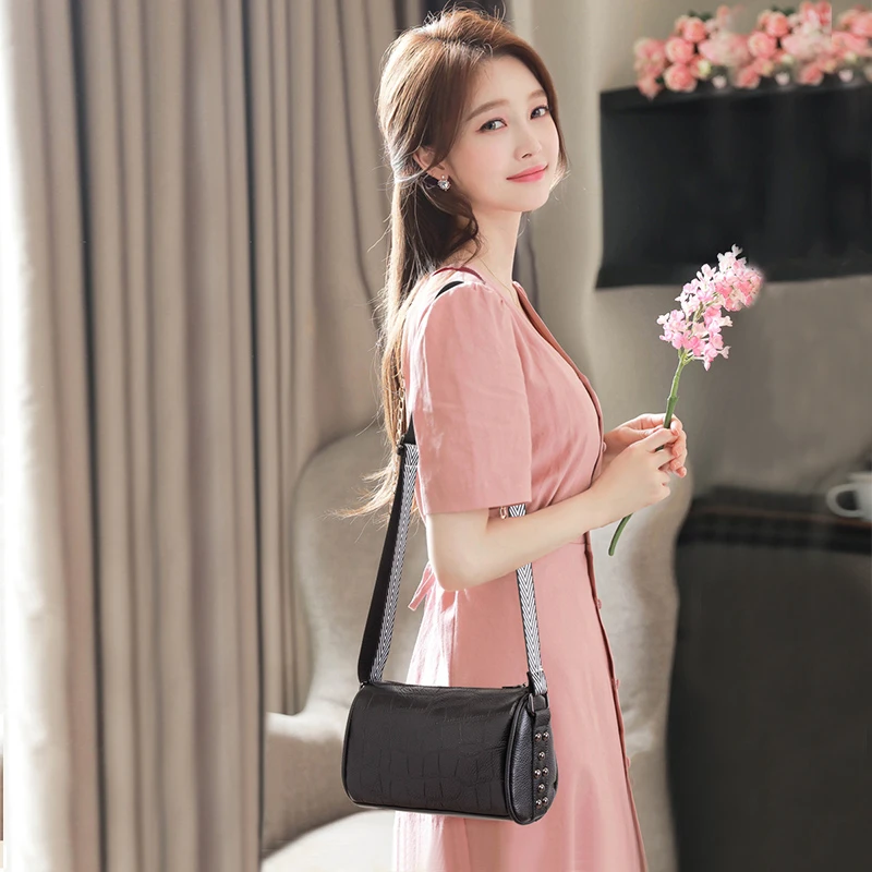 Weiyinxing Braided Wide Shoulder Straps Small Women's Messenger Bag Purse Genuine Leather Fashion Women Bag High Quality Shoulder Bags