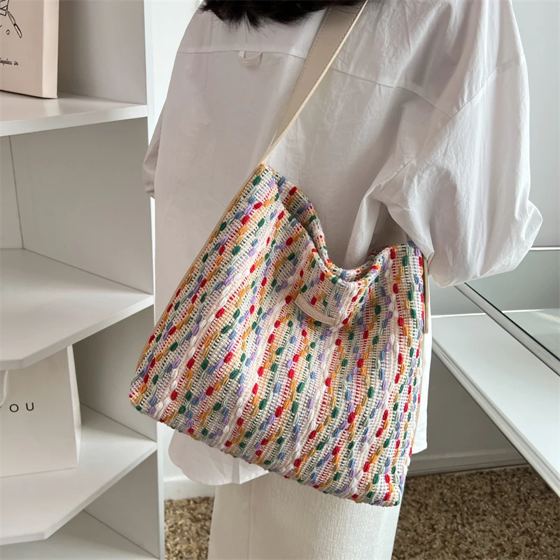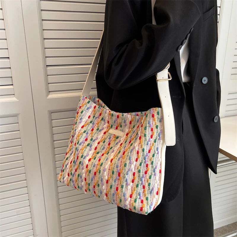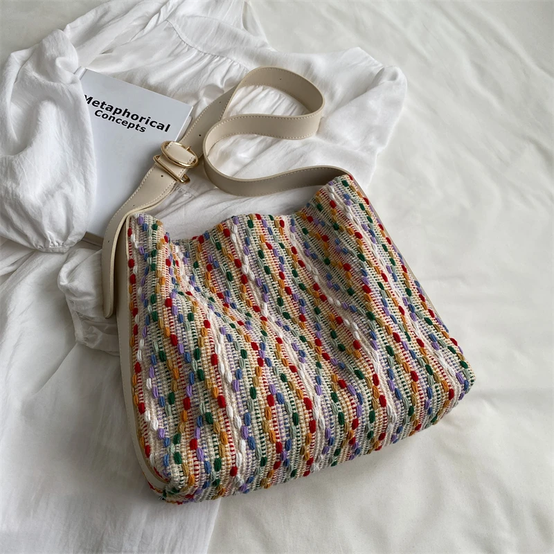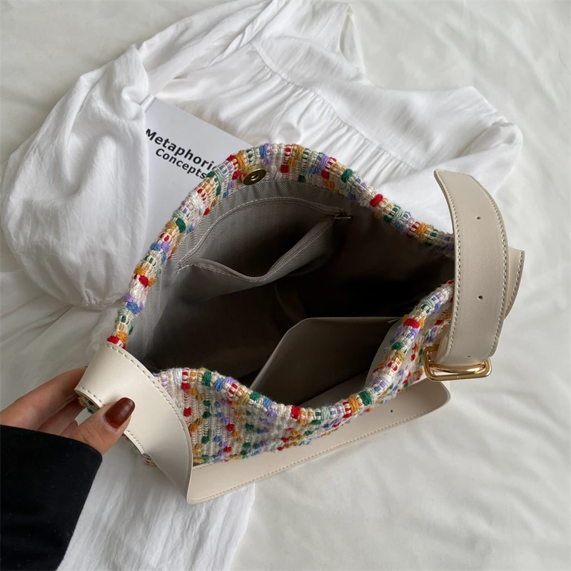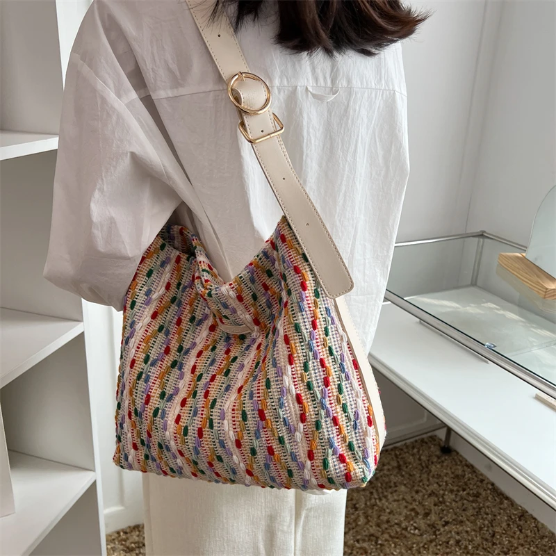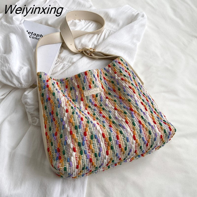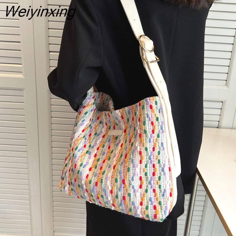 Weiyinxing Brand Design Women Weave Bucket Shoulder Bags Fashion Handbags and Purses Casual Fabric Crossbody Bag 2023 Summer
