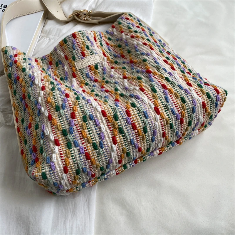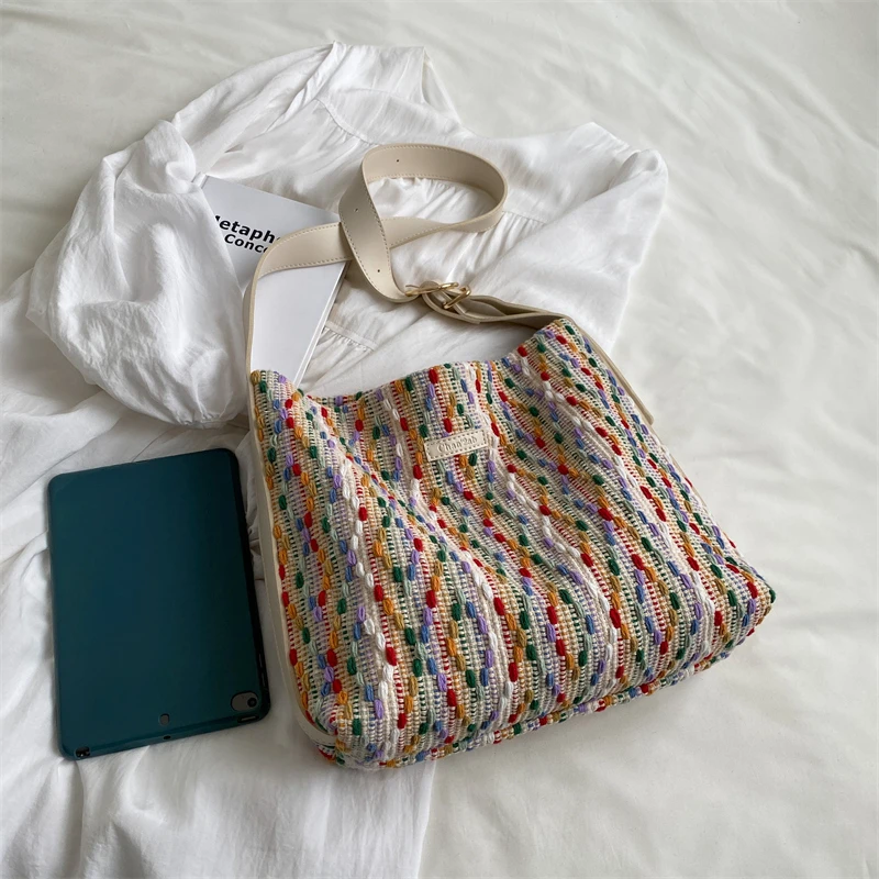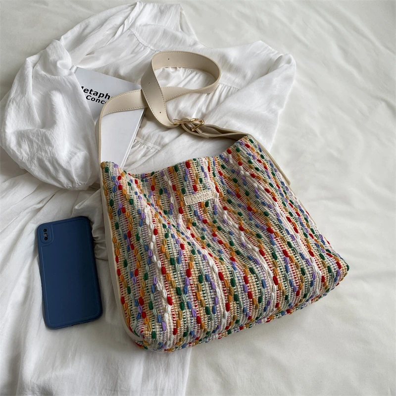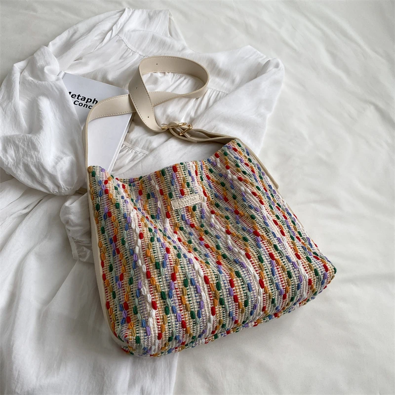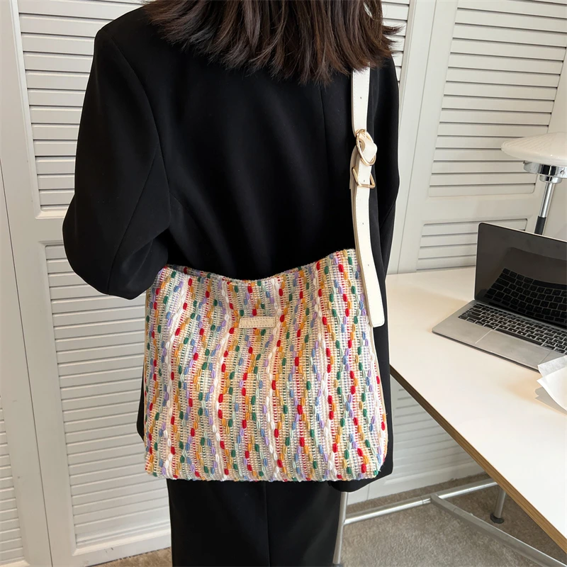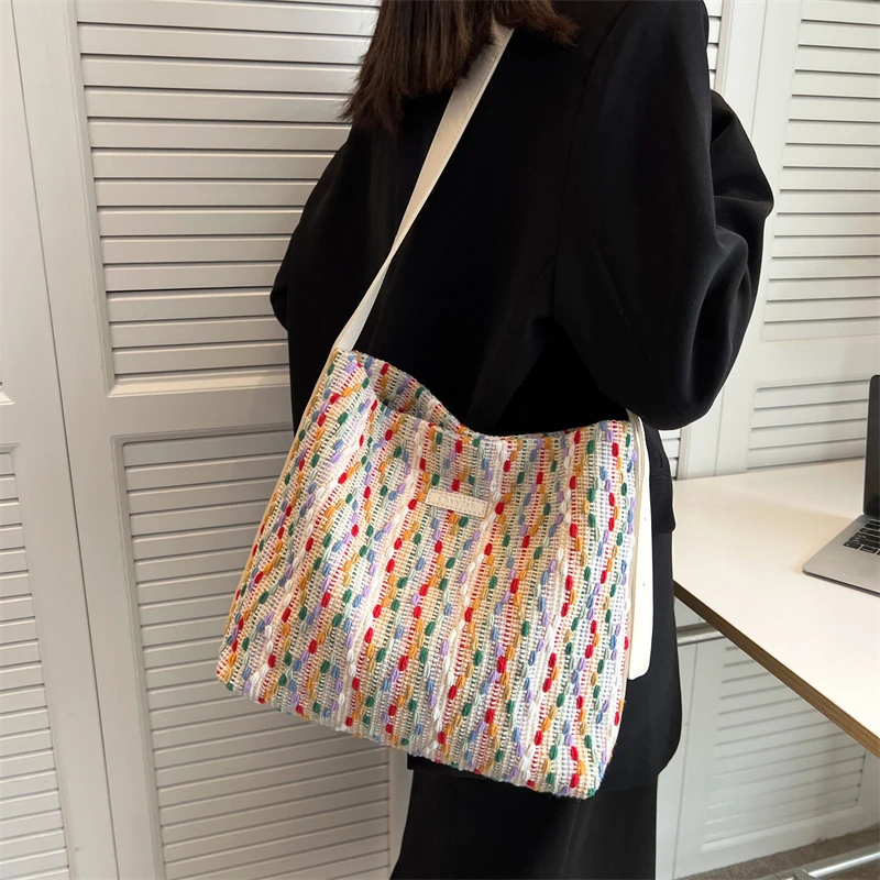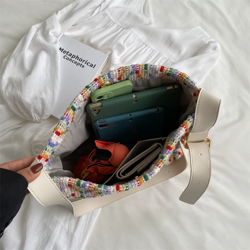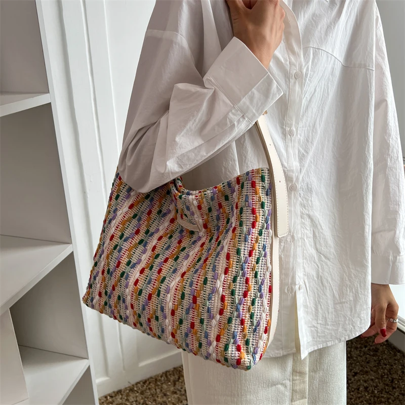 Weiyinxing Brand Design Women Weave Bucket Shoulder Bags Fashion Handbags and Purses Casual Fabric Crossbody Bag 2023 Summer