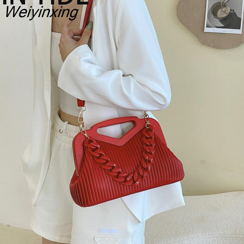 Weiyinxing Brand Handbag Women Inverted Triangle Handle Leather Hand Pouch Classic Crossbody Bags For Women Tote Bag Lady Satchel