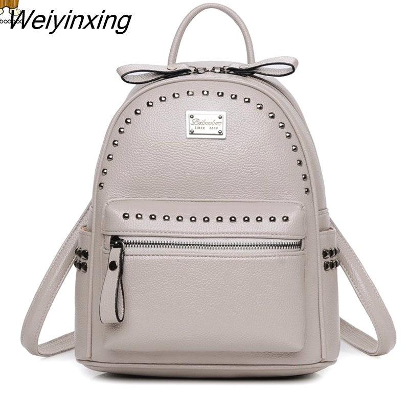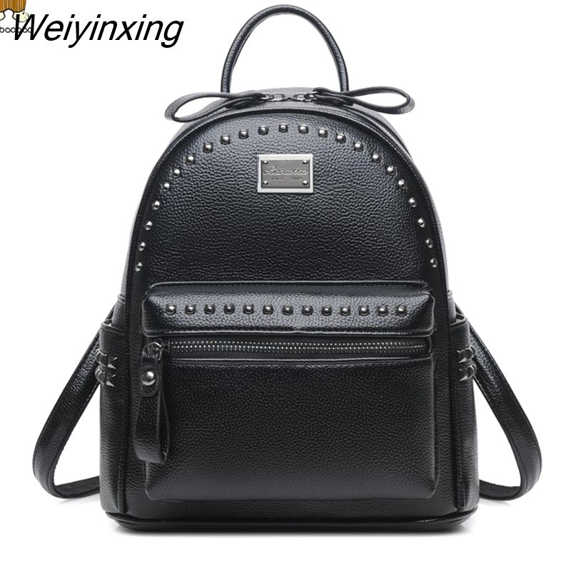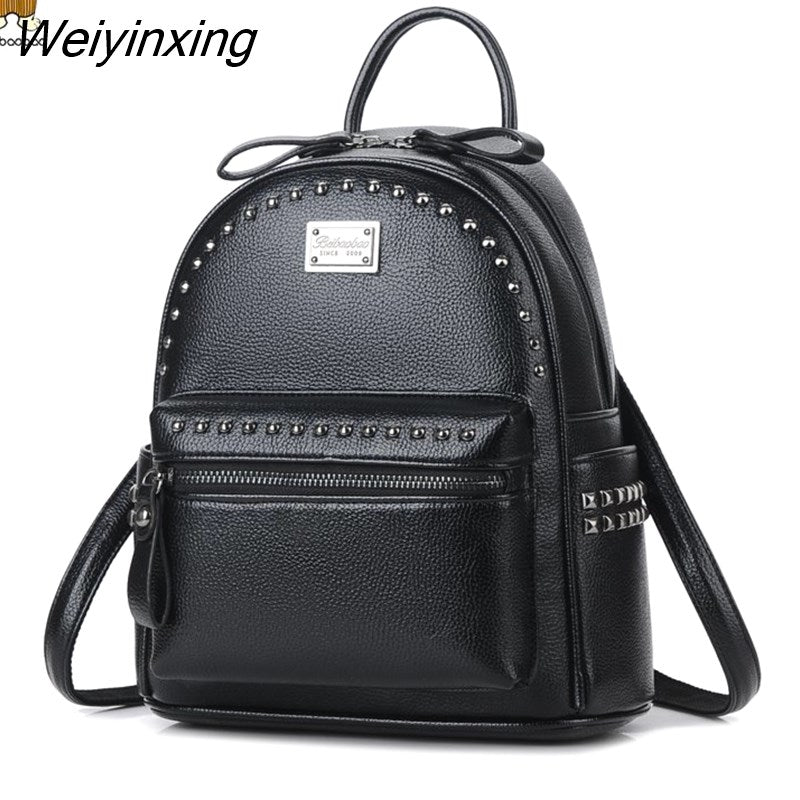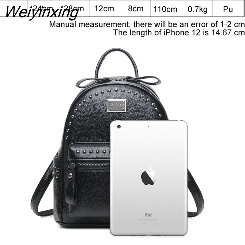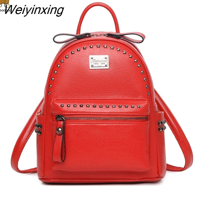 Weiyinxing Brand Rivet Design Women's Backpack 2023 High Quality Classic Girl's Rucksack Fashion Large Student Knapsack Black Red