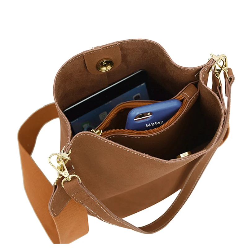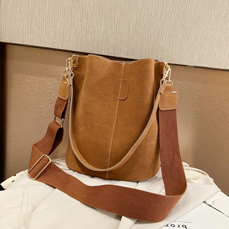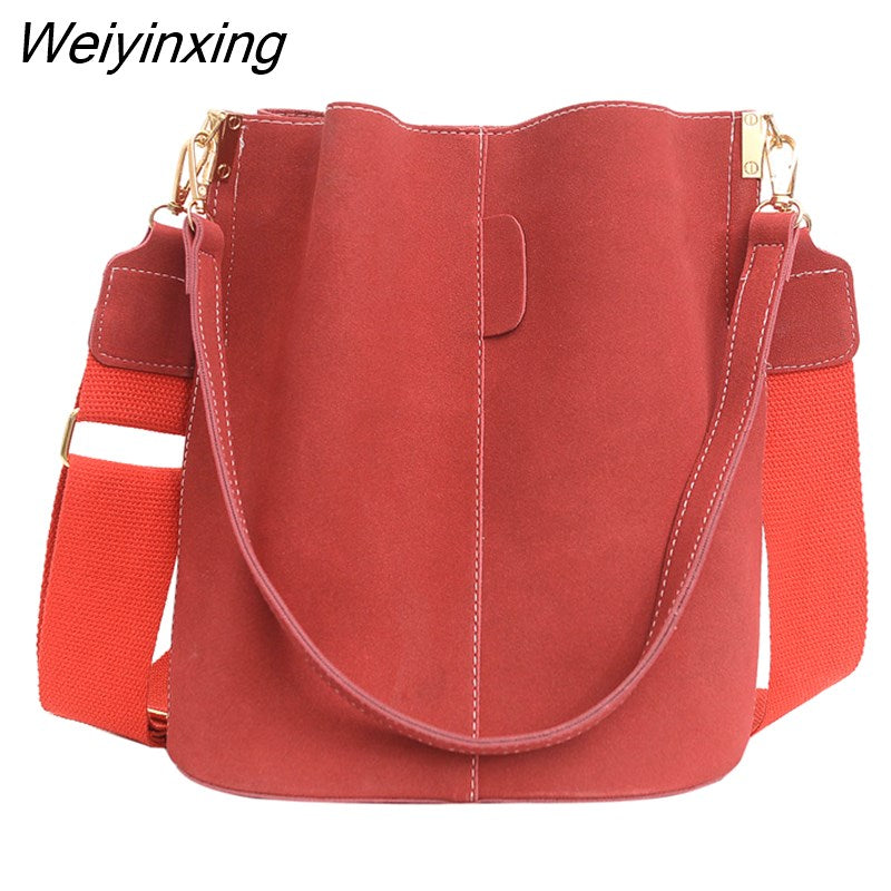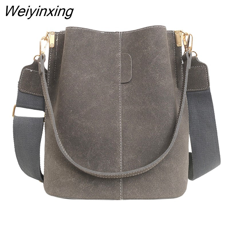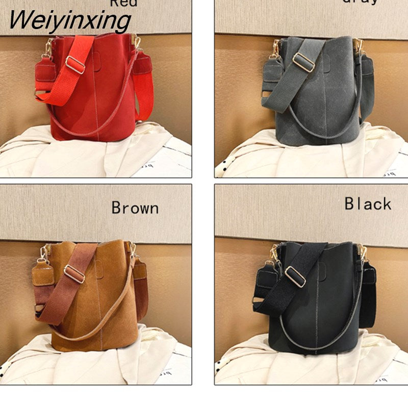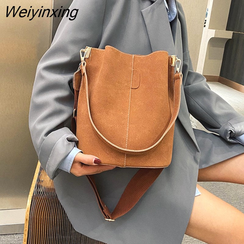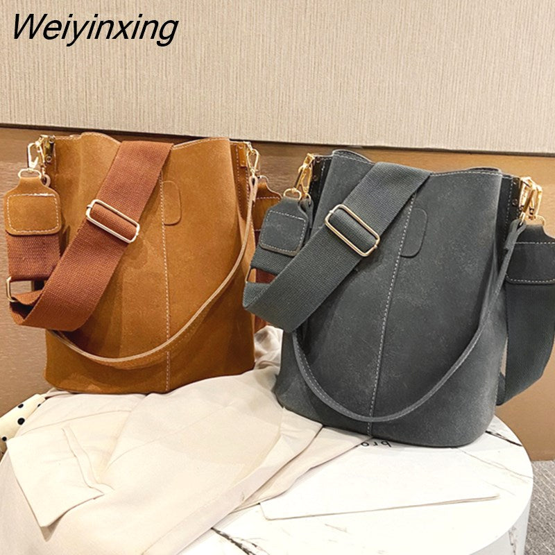 Weiyinxing Bucket Bag Women Nubuck Leather Shoulder Bag Large Capacity Crossbody Bag 2023 Fashion Lady Handle Bag Wild Bag