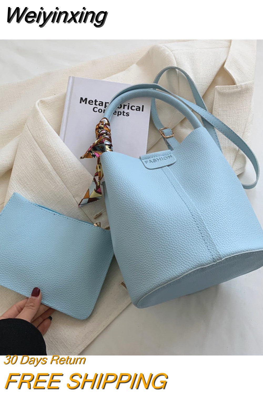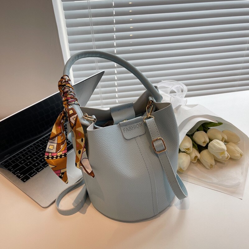 Weiyinxing Bucket Bag Women's High-capacity Handbags 2023 Korean Version Fashion Advanced Texture Silk Scarf Handheld Bucket Bags Niche