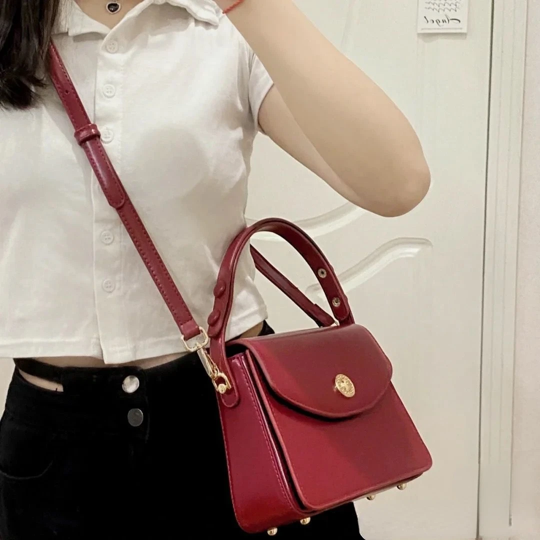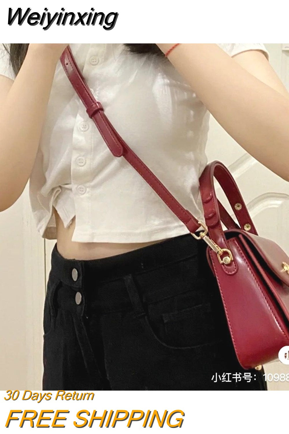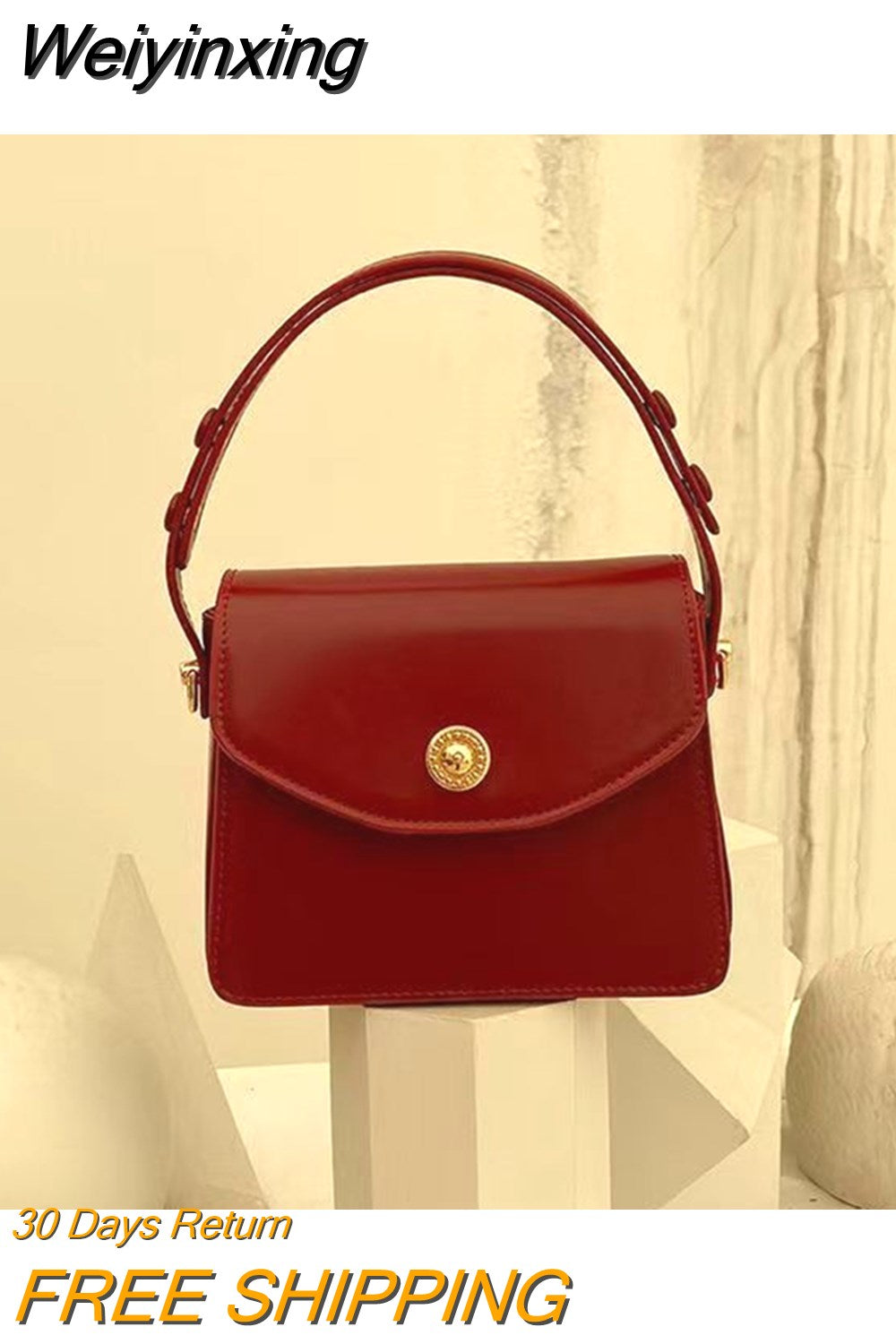 Weiyinxing Burgundy Women Shoulder Bags Pu Leather Ladies Square Crossbody Bag Luxury Female Flap Buckle Design Tote Purse Handbags