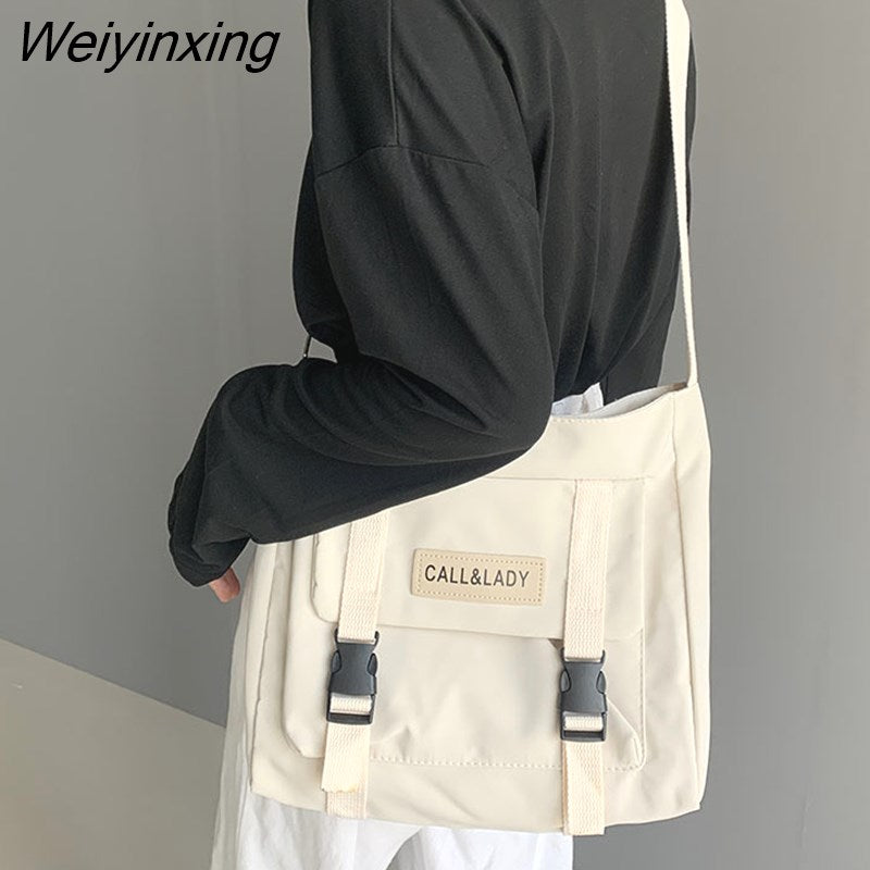 Weiyinxing Canvas Crossbody Bags Youth Fashion Casual Large Capacity Ladies Shoulder Bag Solid Color Women Messenger Bags with Pendant