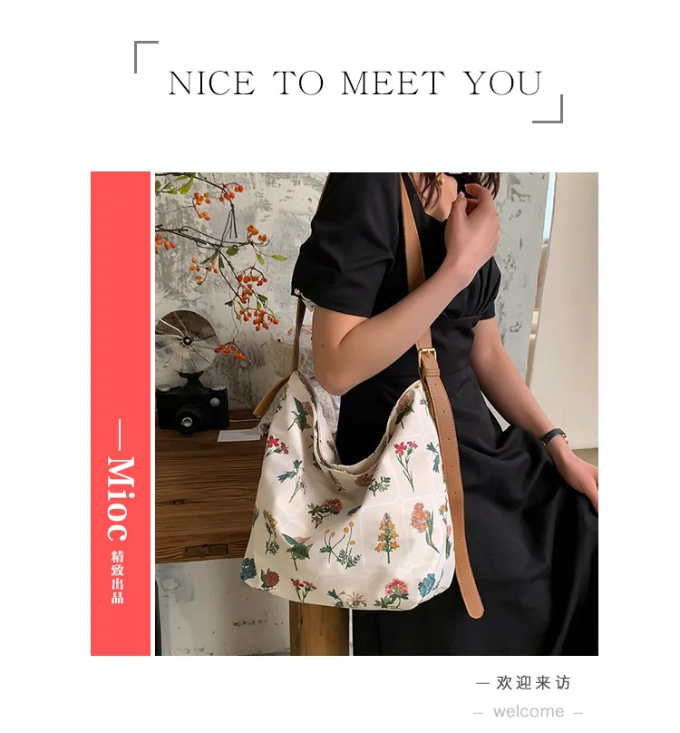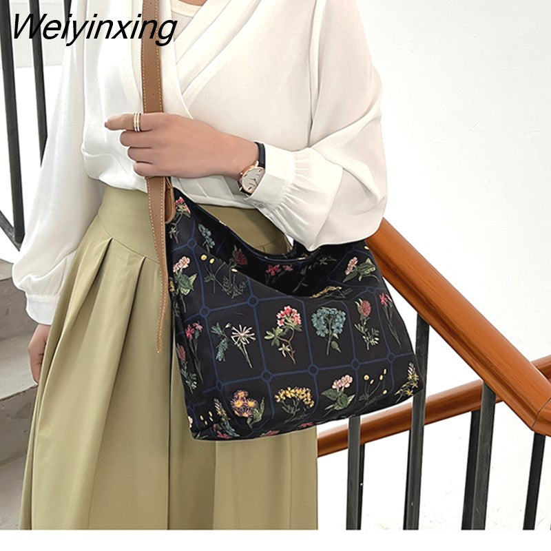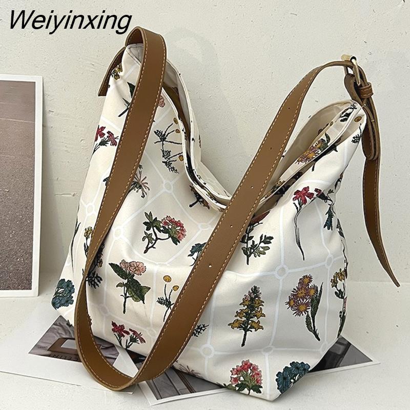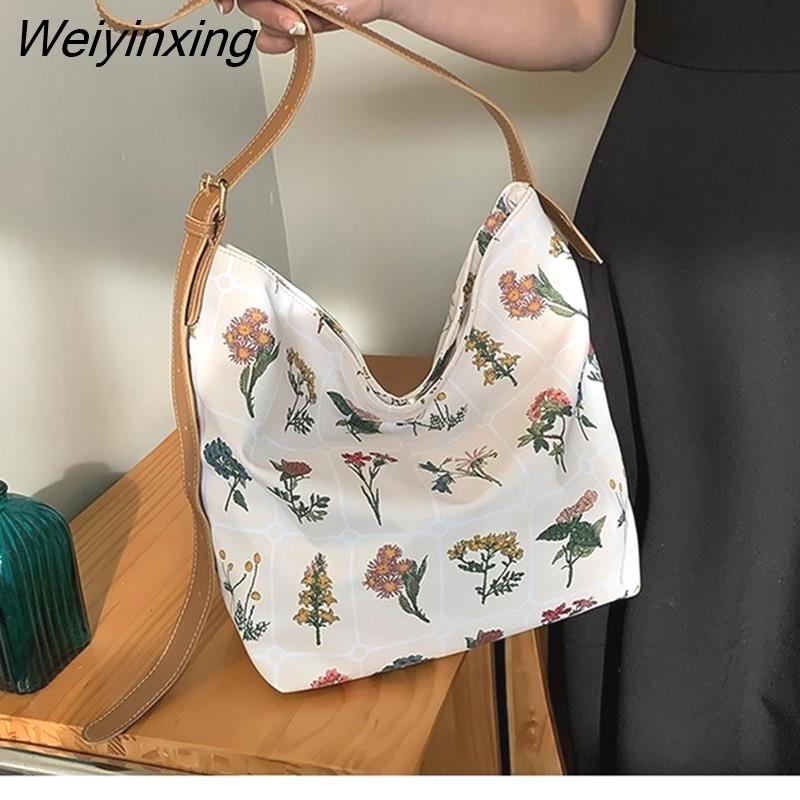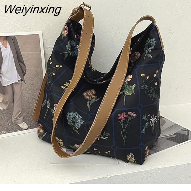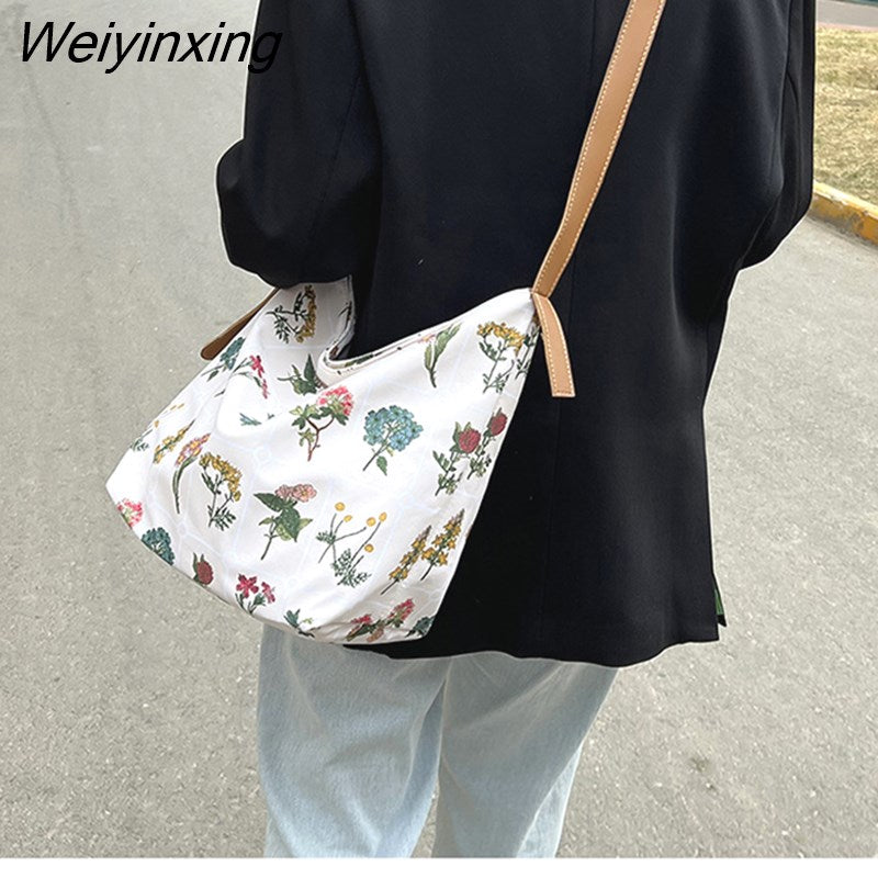 Weiyinxing Canvas Tote Bag Women Big Capacity Shopping Handbag Casual Lady Nylon Shoulder Bag Floral Handle Bag Reusable Tote bags