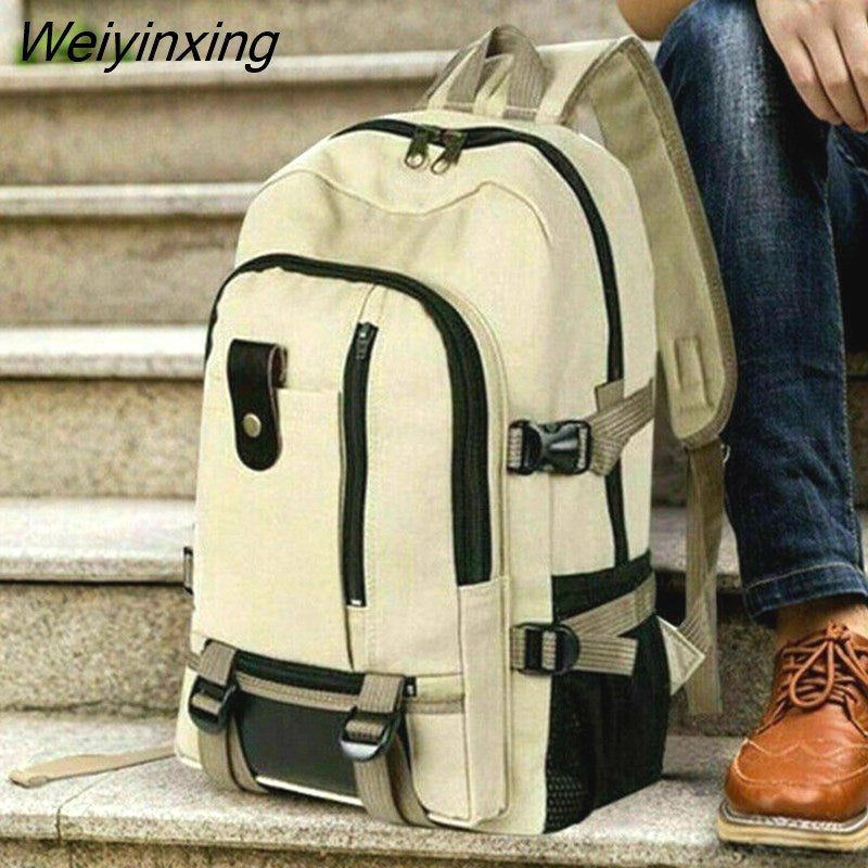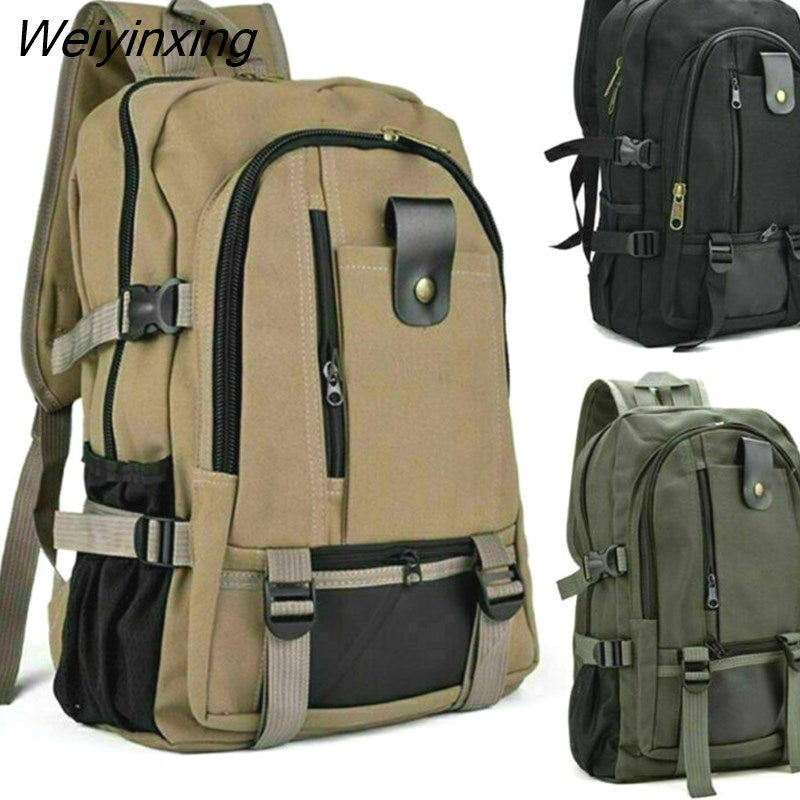 Weiyinxing Canvas Travel Backpack for Man Large Capacity Outdoor Mountain Rucksack Male Backpack Teen Sport School Bag