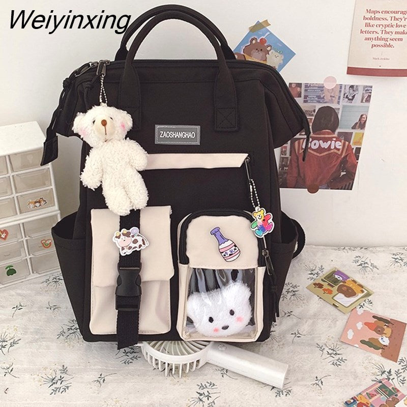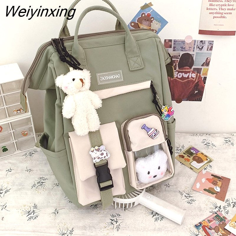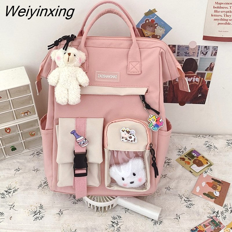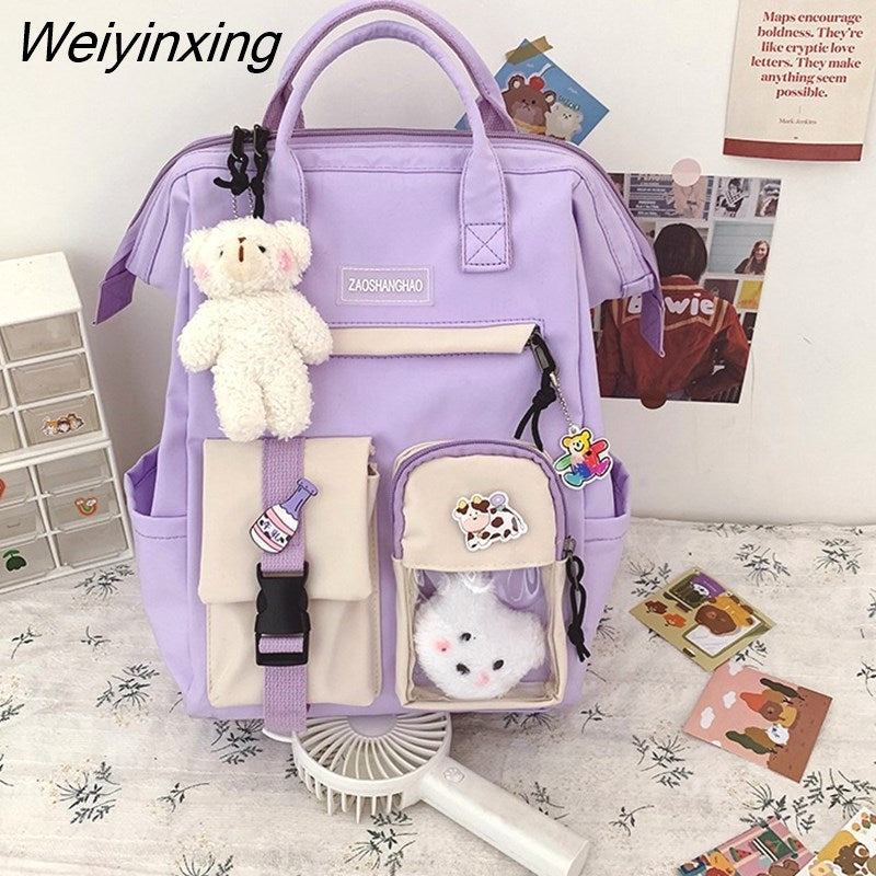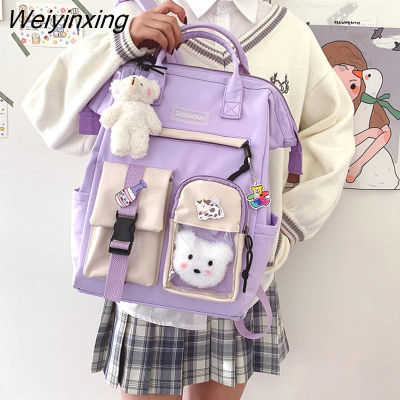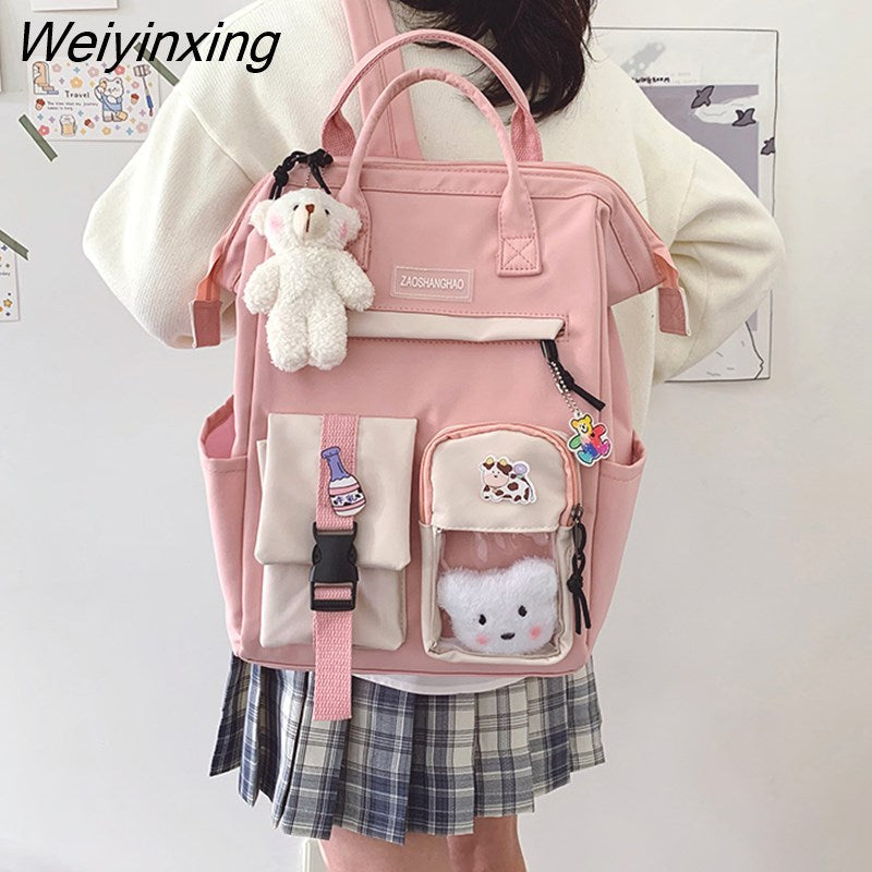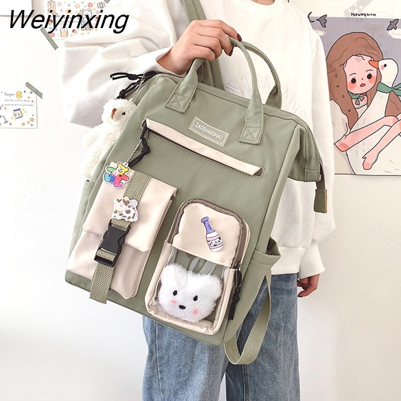 Weiyinxing Capacity Kawaii Women Multi-Pocket Nylon Backpack Ins Junior High School Student School Bag Girls Backpack Laptop Book