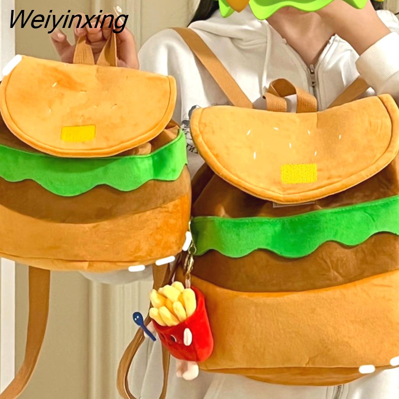 Weiyinxing Cartoon Burger Kawaii Funny Shoulder Bag Backpack Women Bag Large Capacity Backpack School Bags Storage Bag