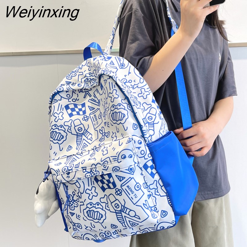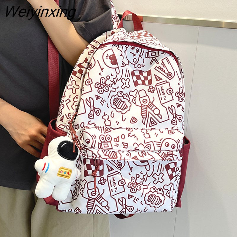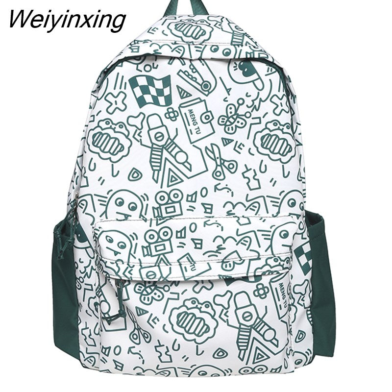 Weiyinxing Cartoon Printing Women Backpack Lady Nylon School Backpack for Student Female Girls Kawaii Laptop Book Pack Mochilas Cool