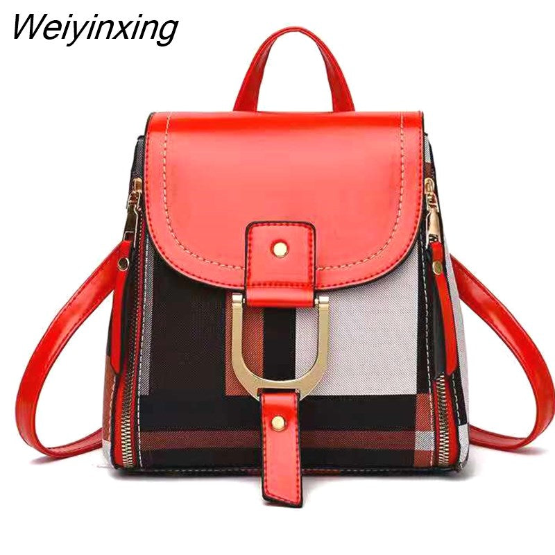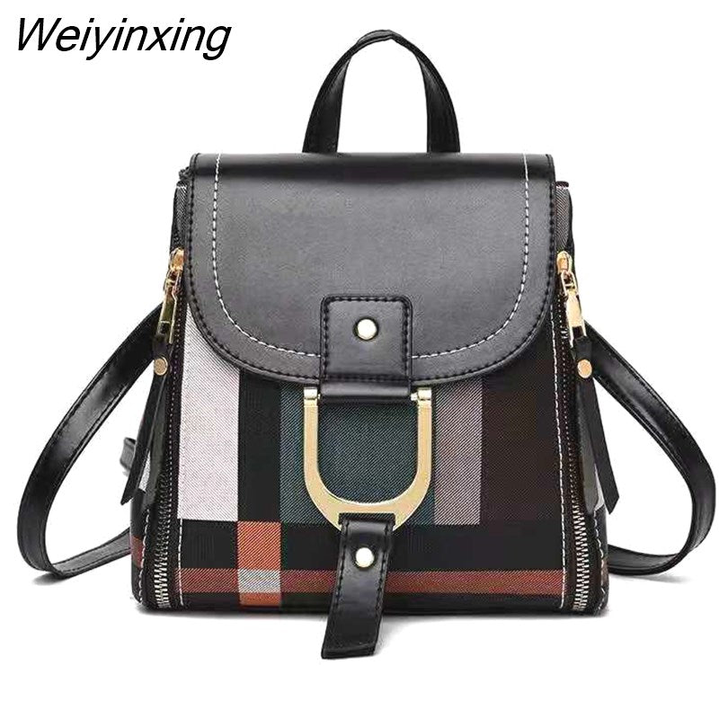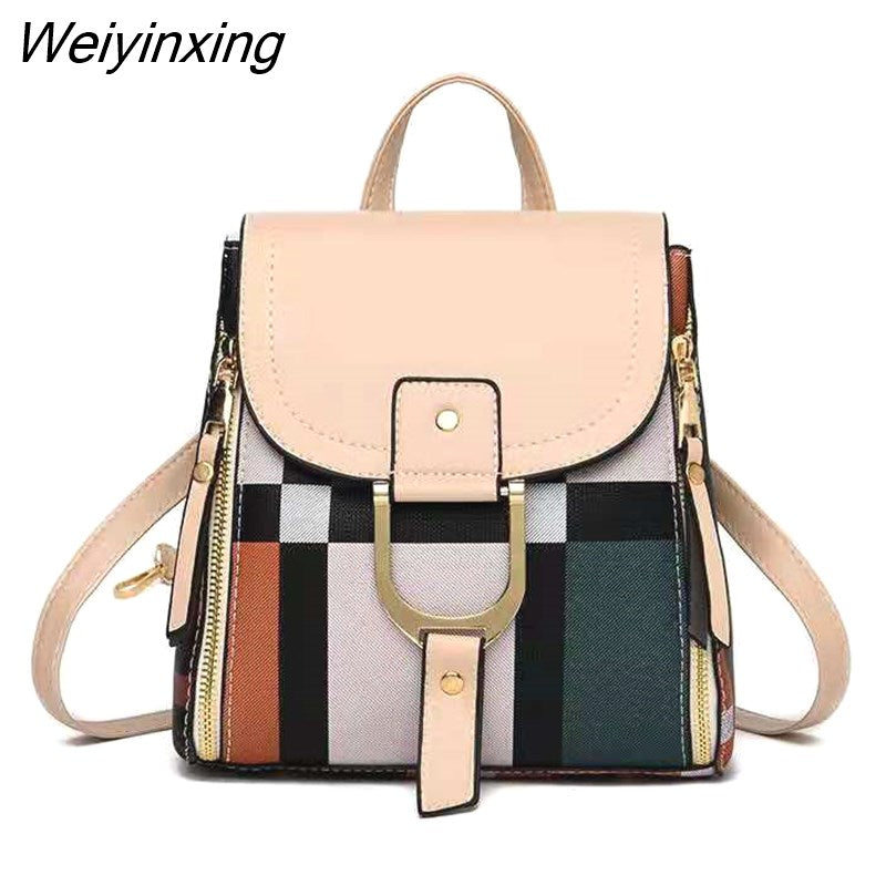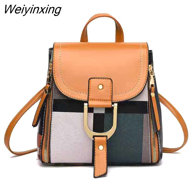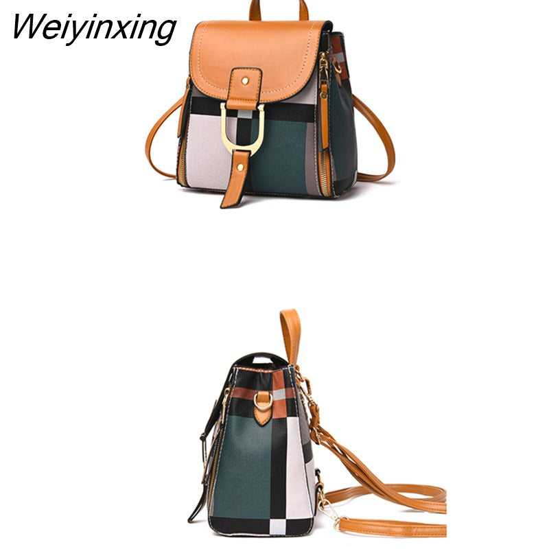 Weiyinxing Casual Plaid Shoulder Bag Fashion Stitching Backpack Brand Female Totes Crossbody Bags Women Leather bags