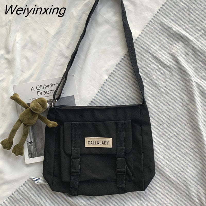 Weiyinxing Classic Simple Messenger Bag Women's South Korea Chic Postman Bag Lady Student Nylon Waterproof Canvas Schoolbag
