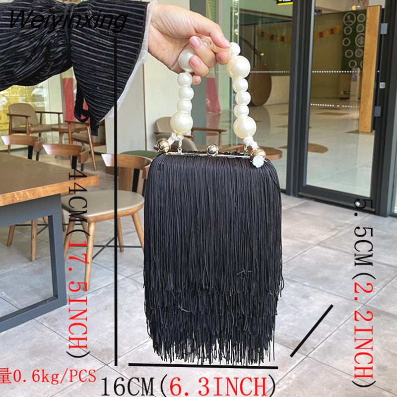 Weiyinxing clutch Bag Purses and handbag luxury Designer Tassel Shoulder Bag Pearl Purse black banquet bag party bag