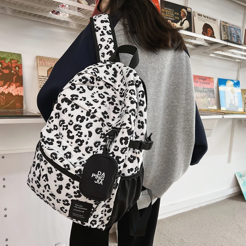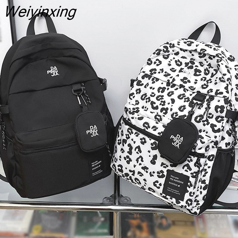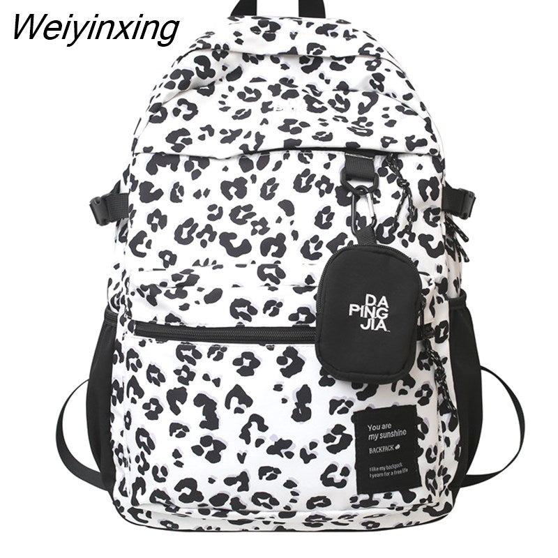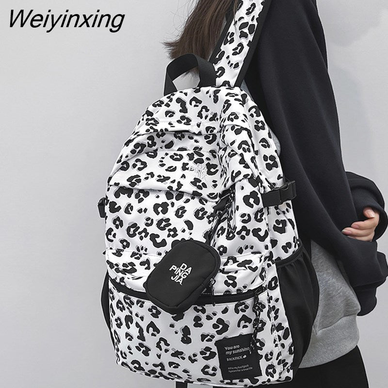 Weiyinxing Cool Lady Leopard School Backpack Women Laptop Nylon Set Bag Girl Cute Travel College Backpack Female Kawaii Trendy Bags