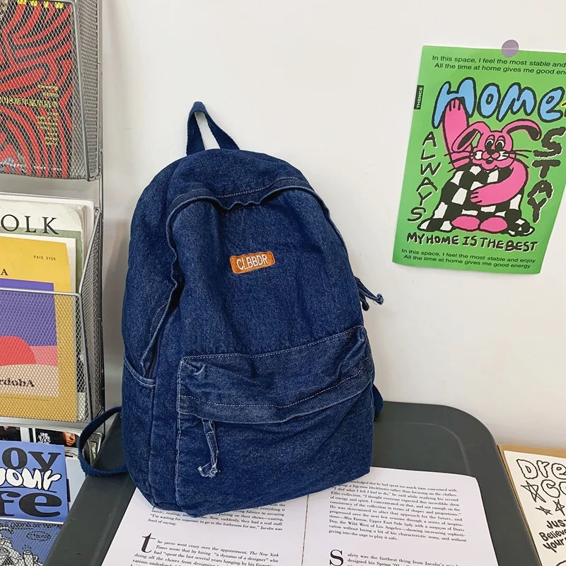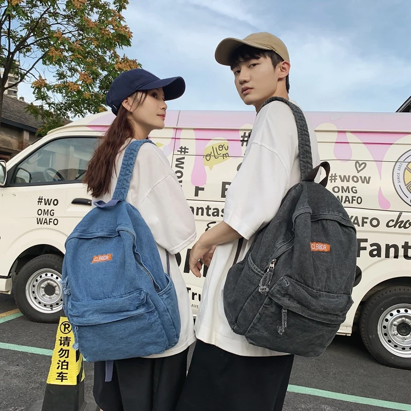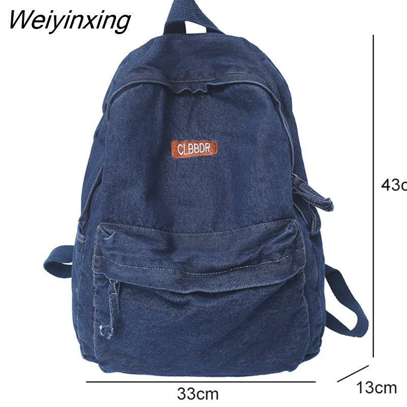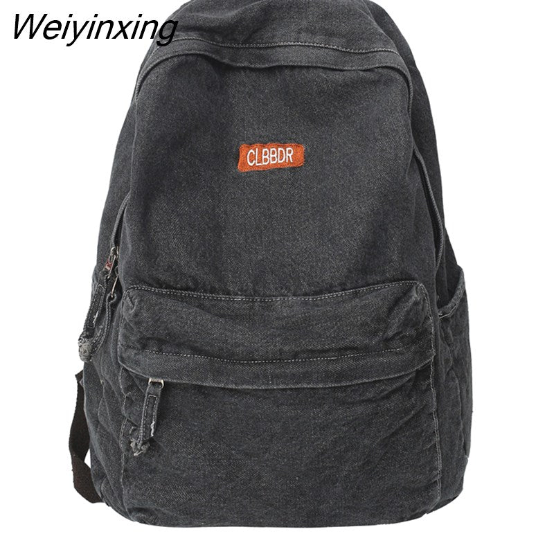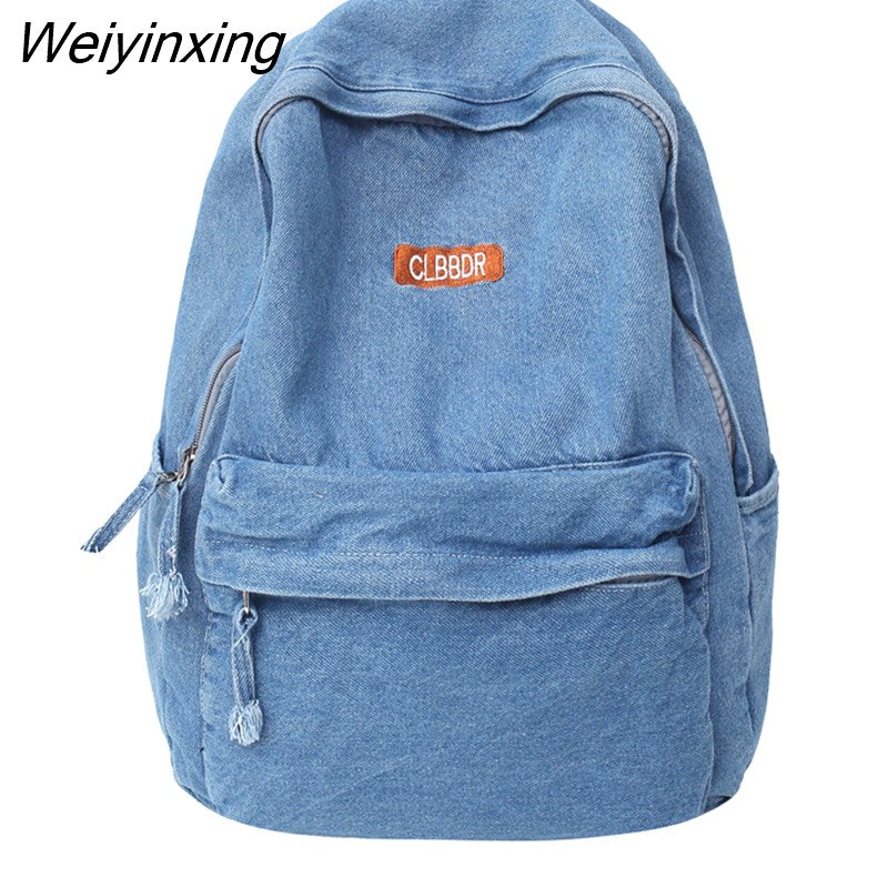 Weiyinxing Cool Washed Denim Backpack Kawaii Letters Embroidery Travel Bag High Quality Boy Girl Schoolbag Women Laptop Backpacks