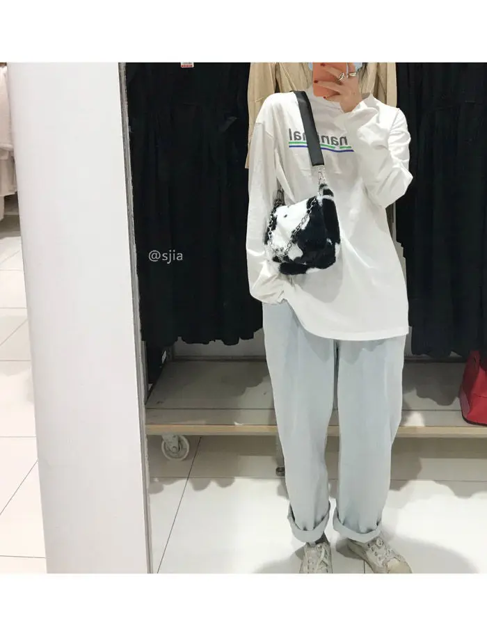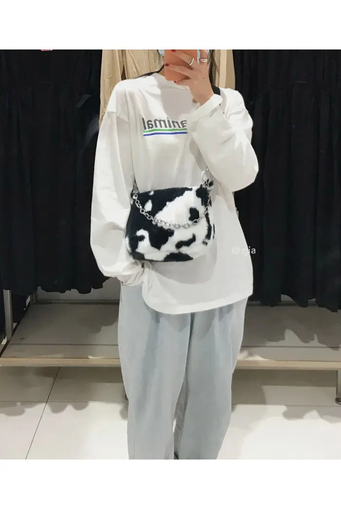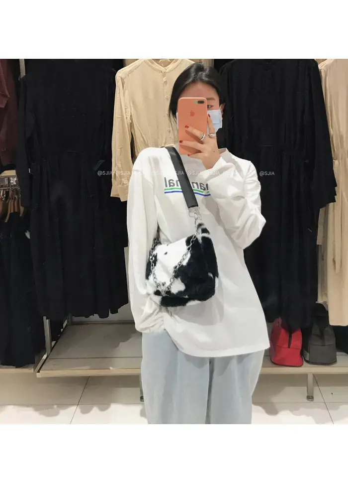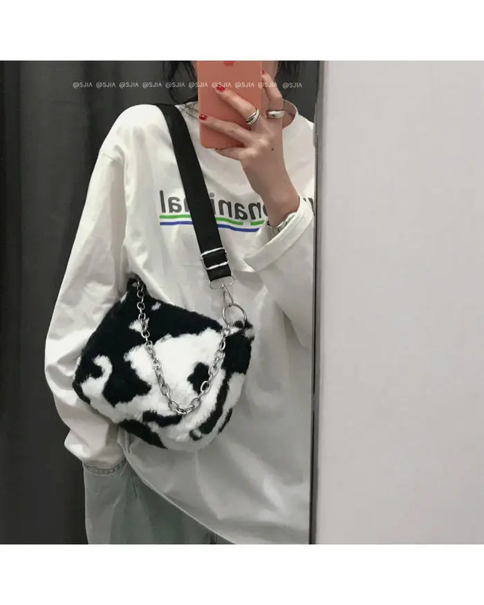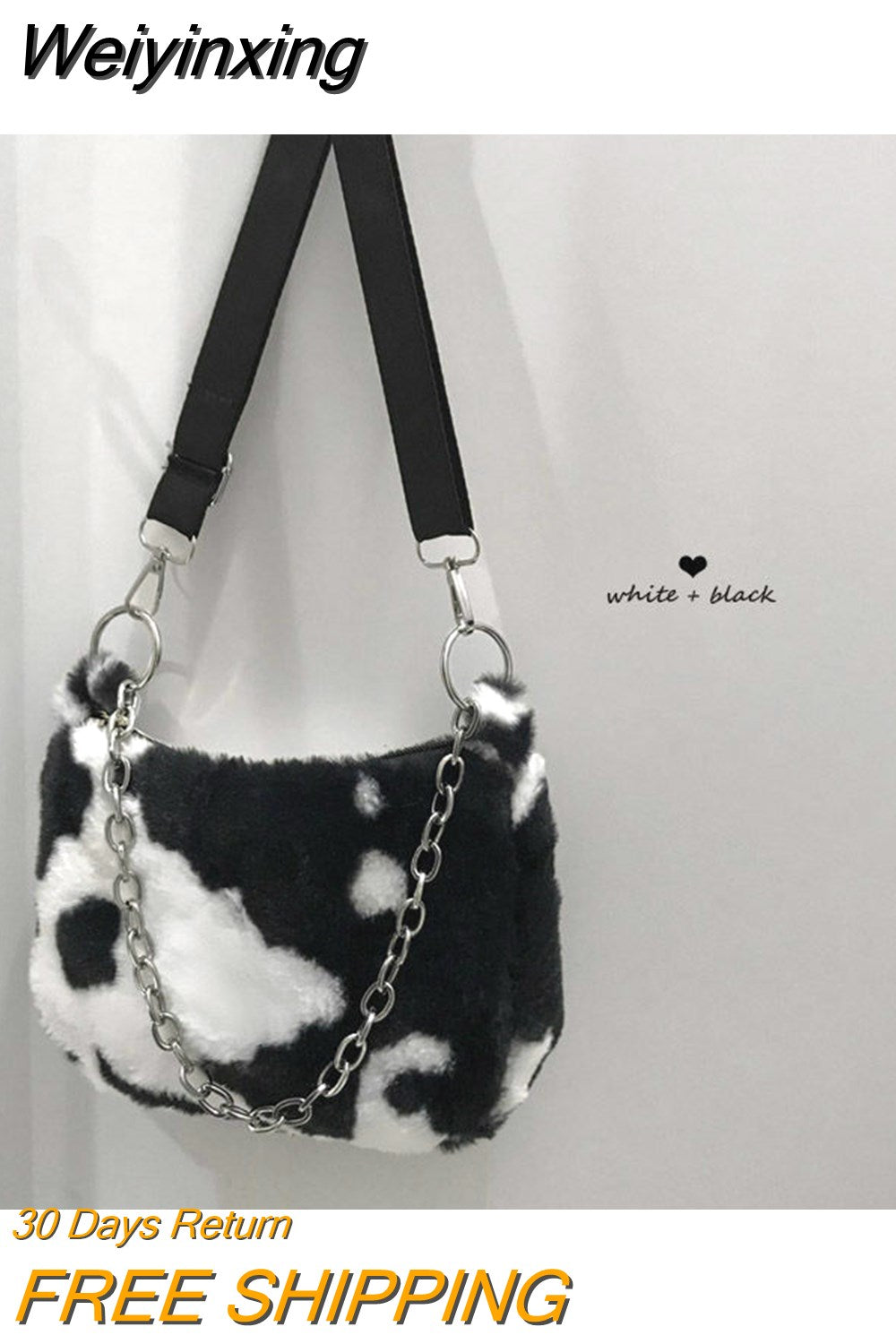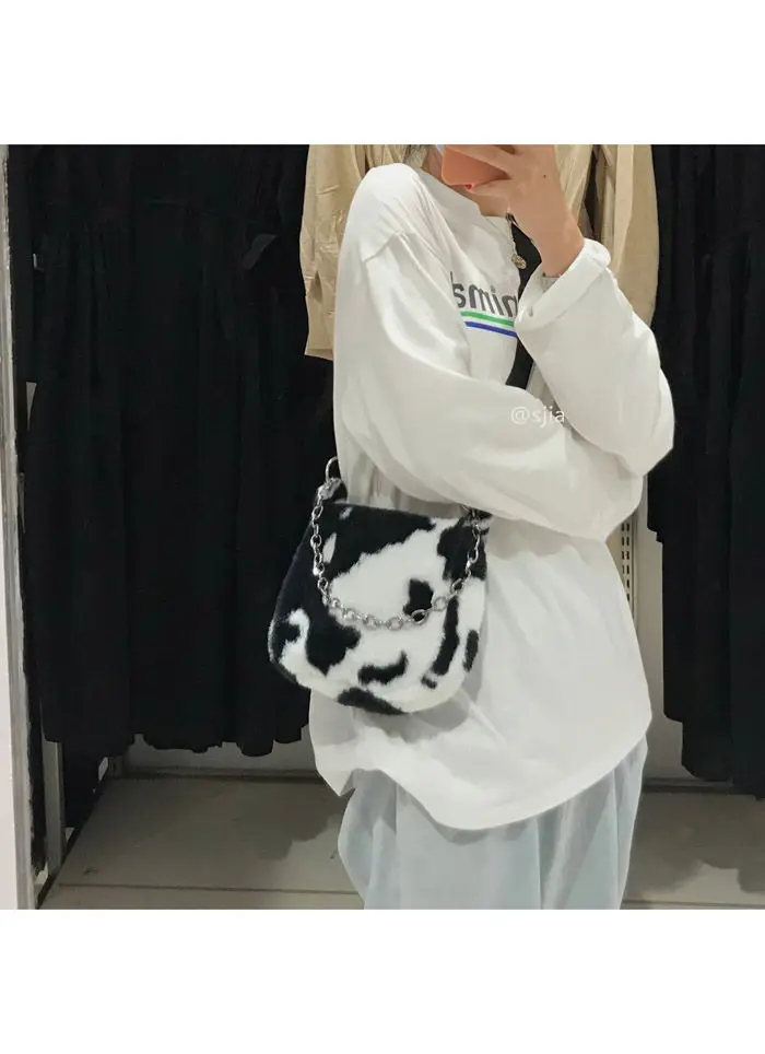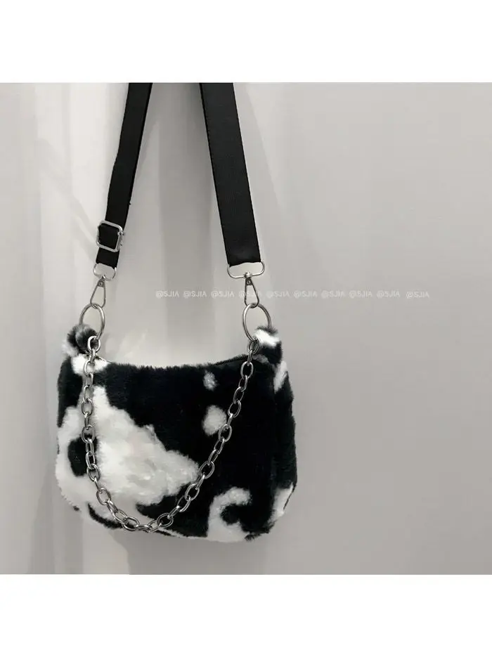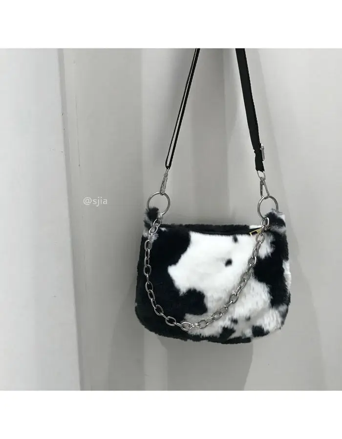Weiyinxing Cow Pattern Armpit Bag for Women fashion Faux Fur Ladies Chain Small Shoulder Crossbody Bags Soft Plush Girls Handbags
