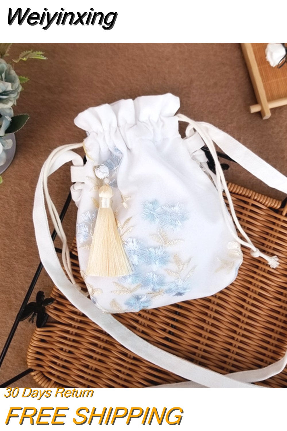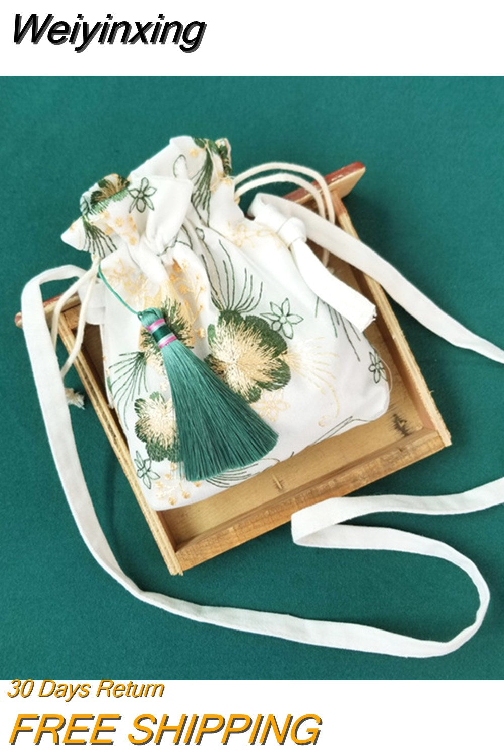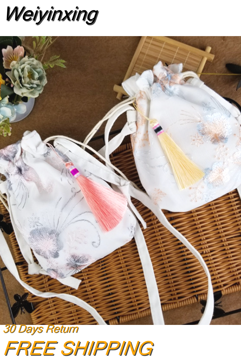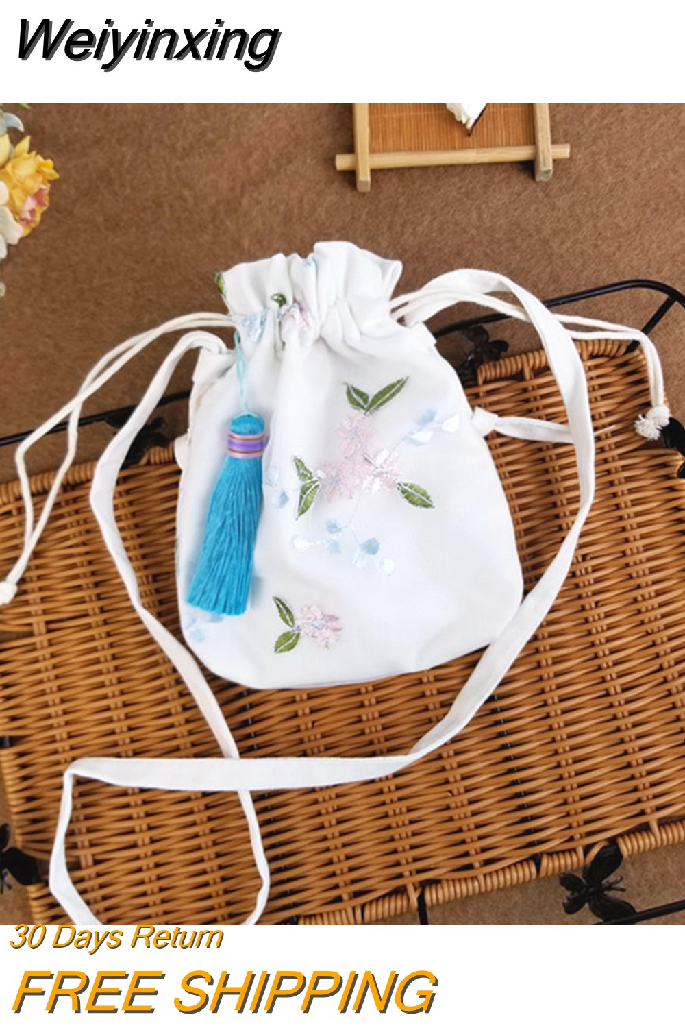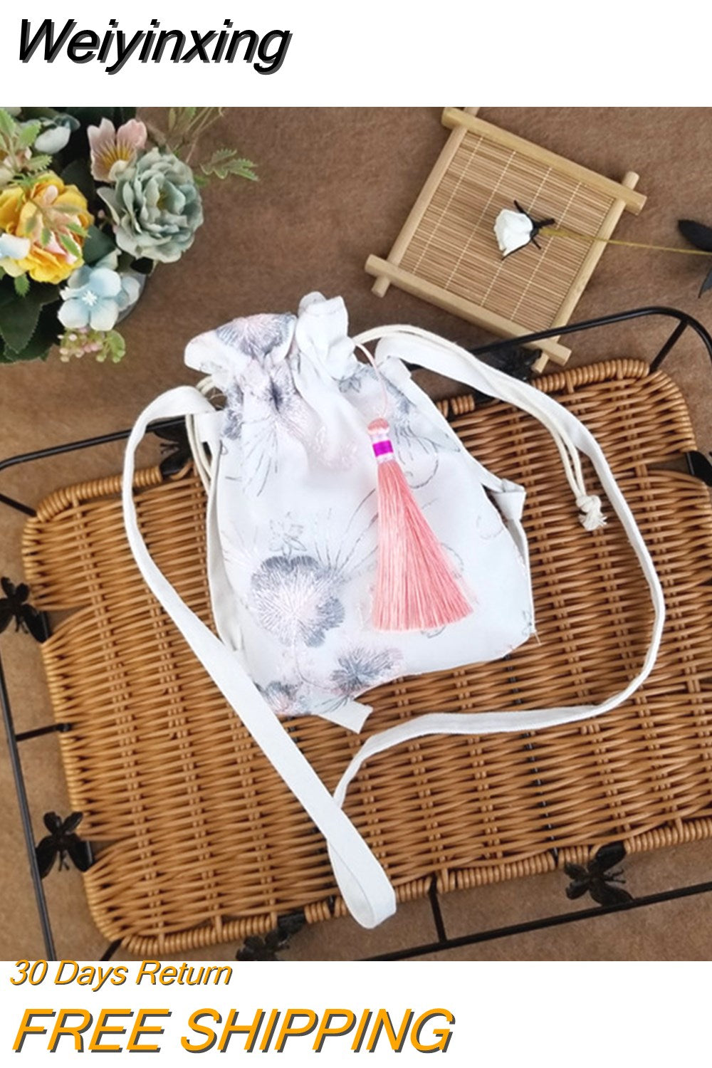 Weiyinxing Crossbody Bag 2023 Ancient Customs Canvas Hanfu Small Bag Chinese Style Embroidery Cross Body One Shoulder Bag Retro Tassels