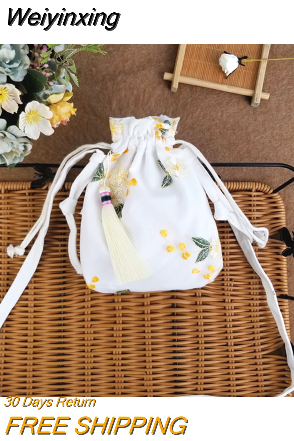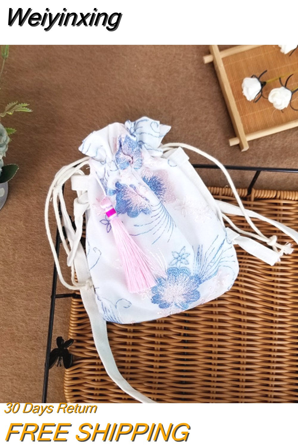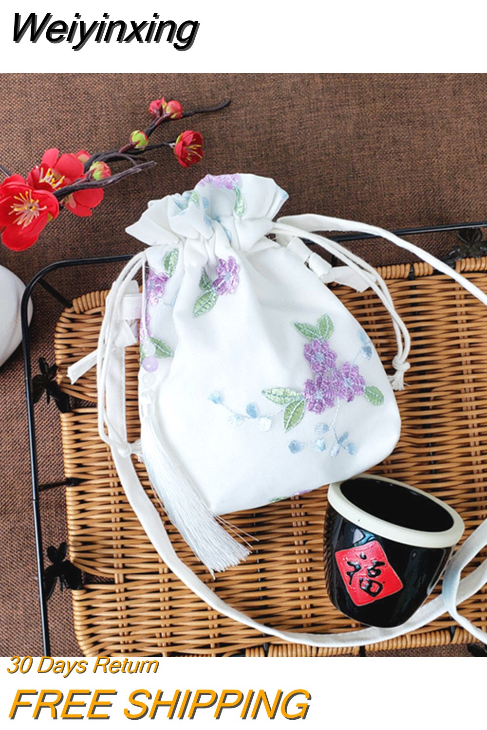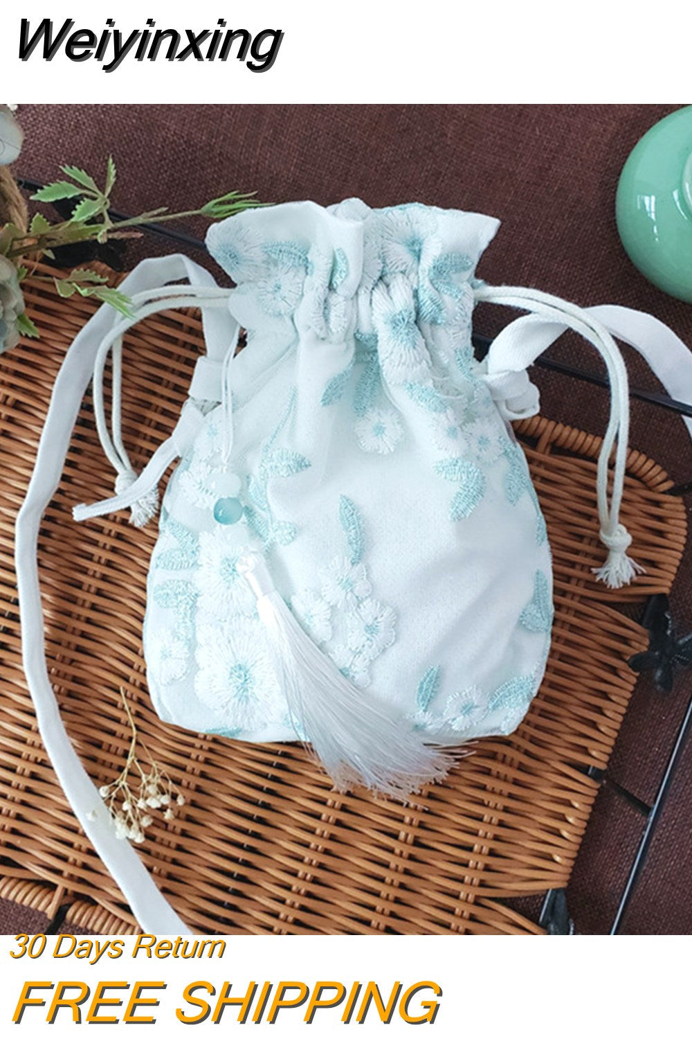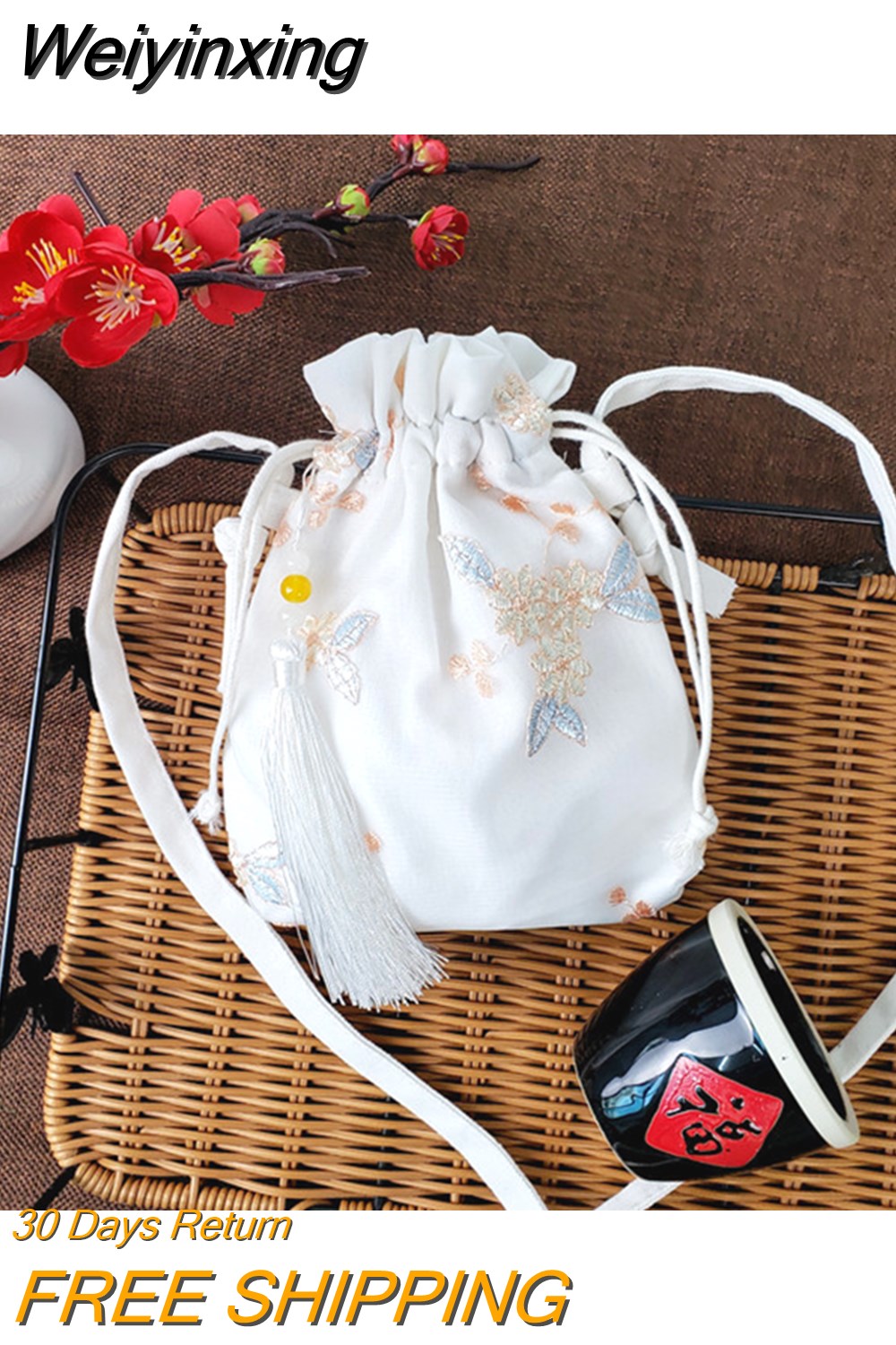 Weiyinxing Crossbody Bag 2023 Ancient Customs Canvas Hanfu Small Bag Chinese Style Embroidery Cross Body One Shoulder Bag Retro Tassels