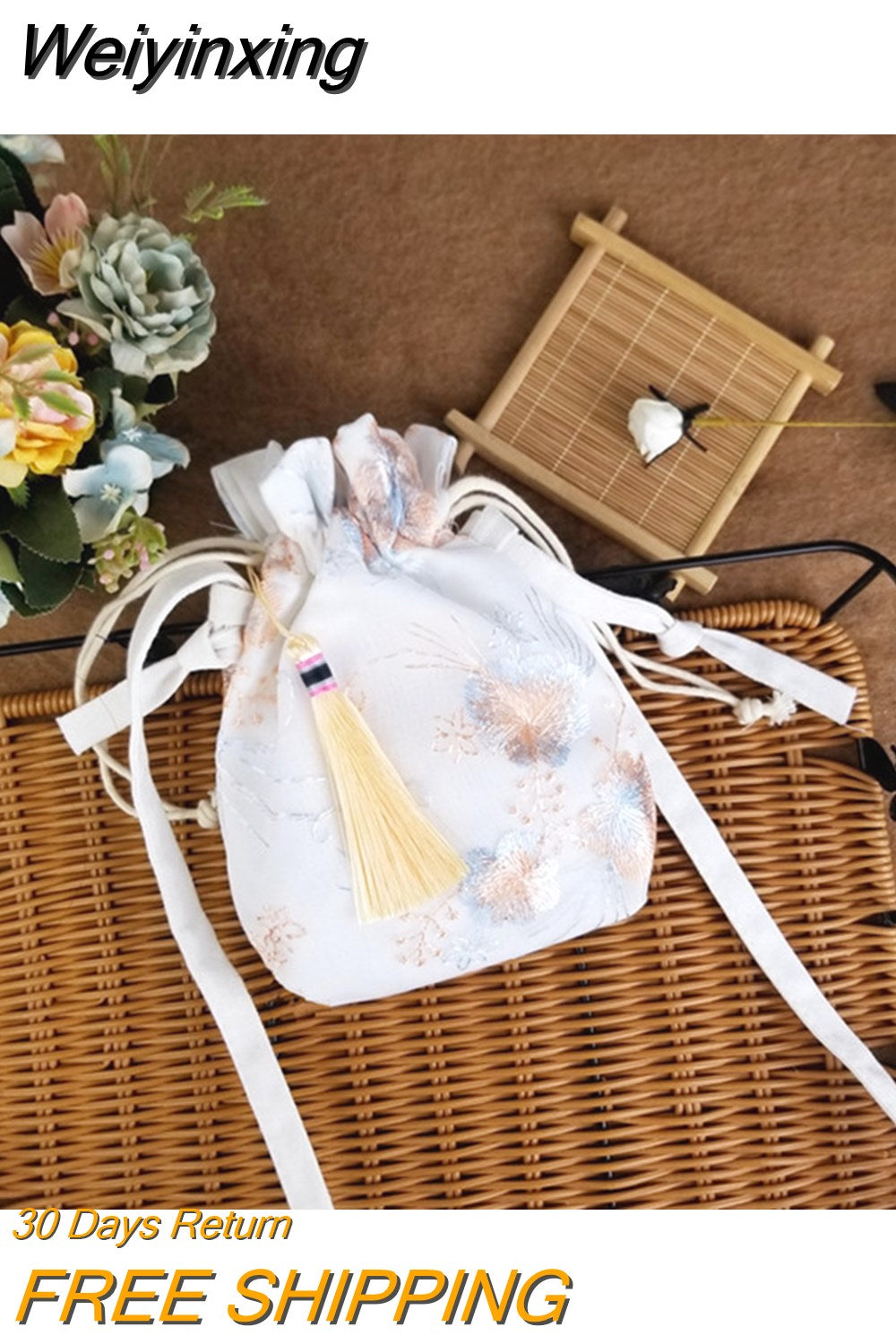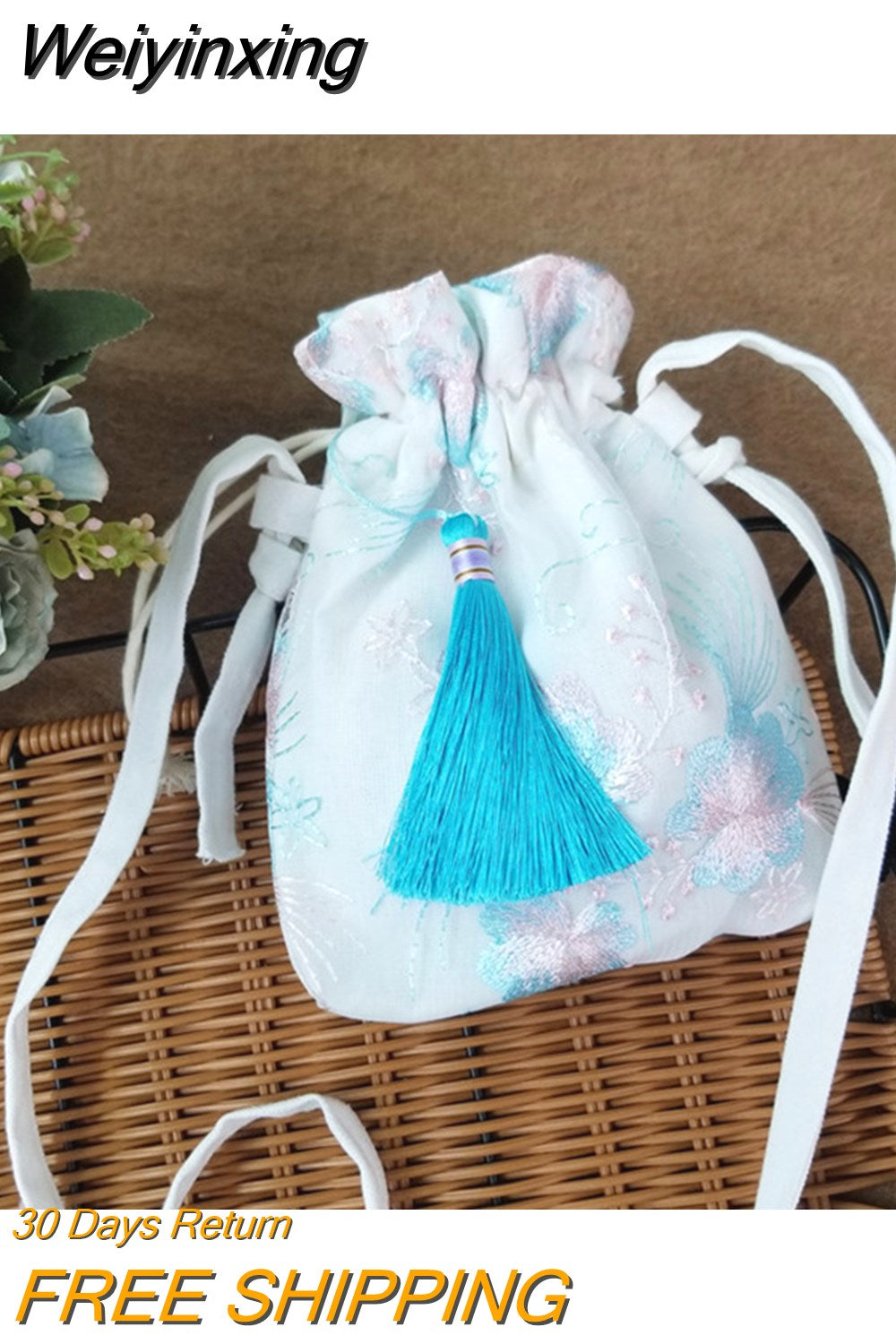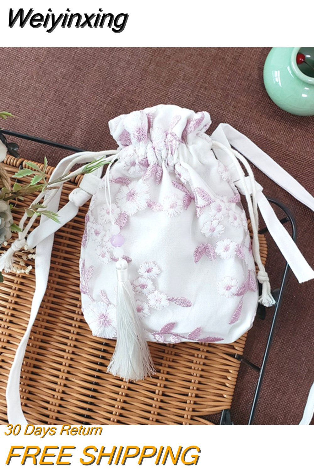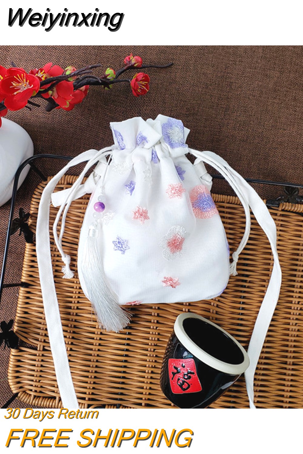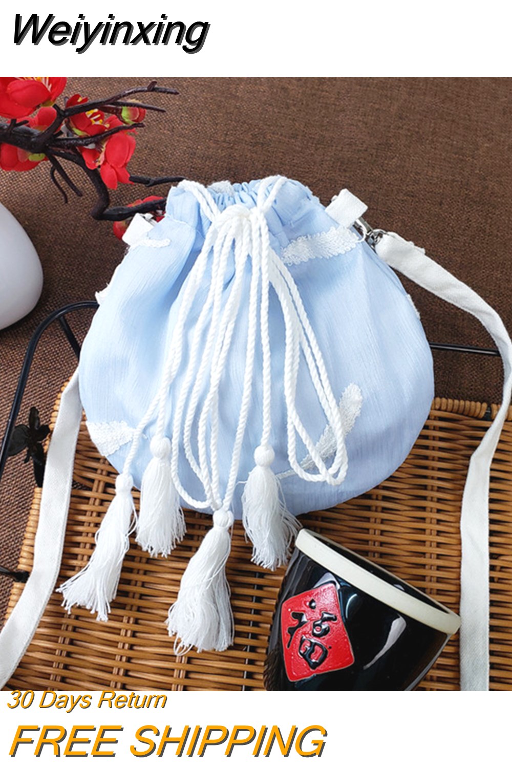 Weiyinxing Crossbody Bag 2023 Ancient Customs Canvas Hanfu Small Bag Chinese Style Embroidery Cross Body One Shoulder Bag Retro Tassels