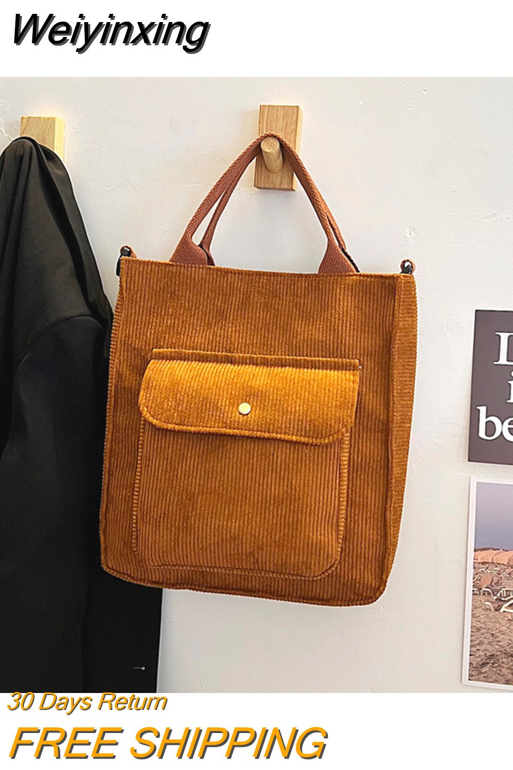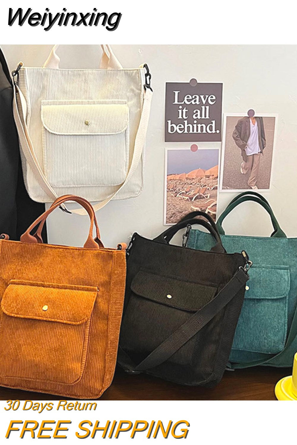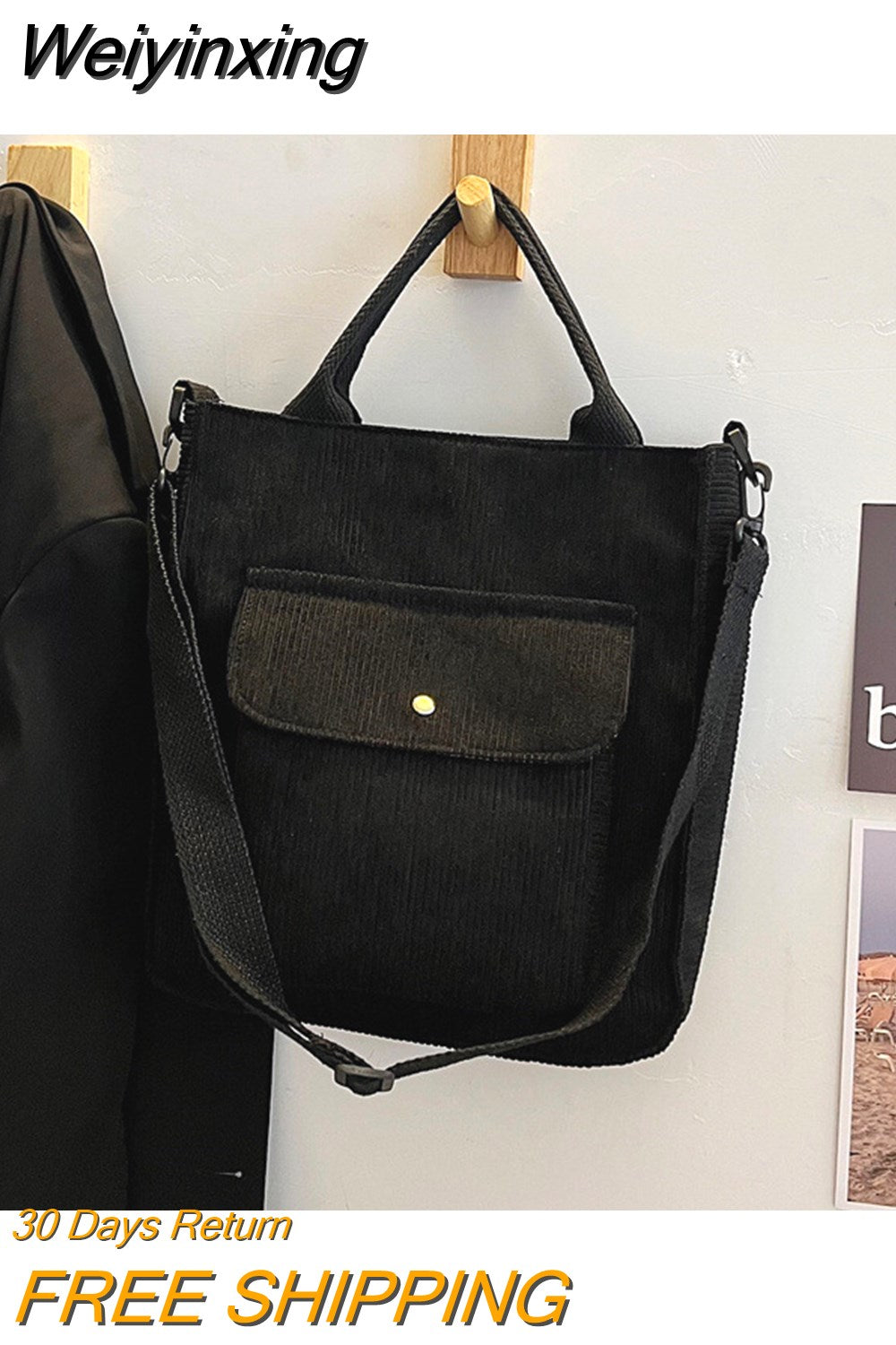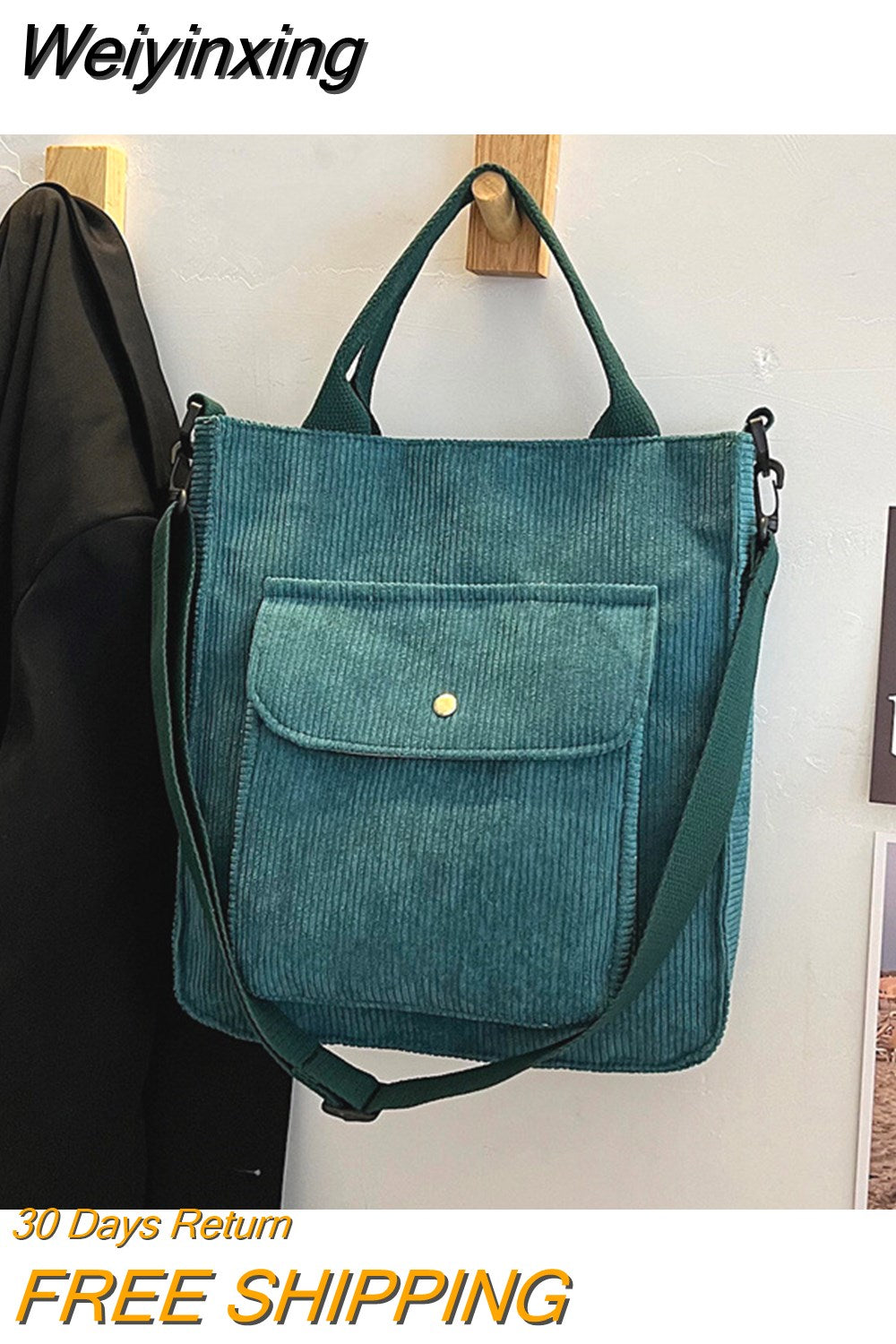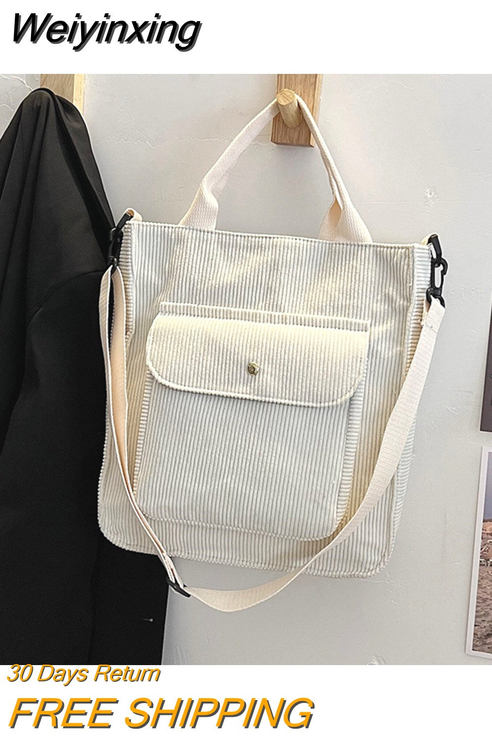 Weiyinxing Crossbody Bag Korean Version Corduroy Student HandBag Large Capacity Literature Art Retro Simple Striped Velvet Handbag