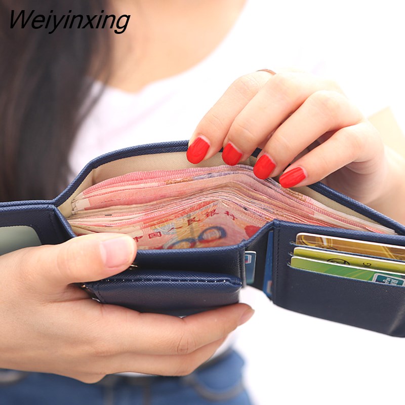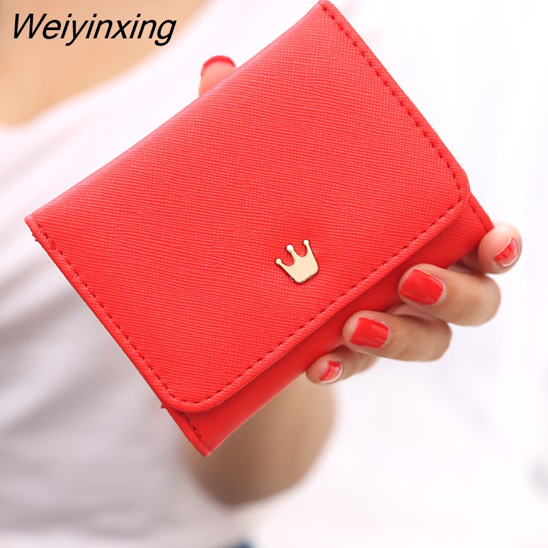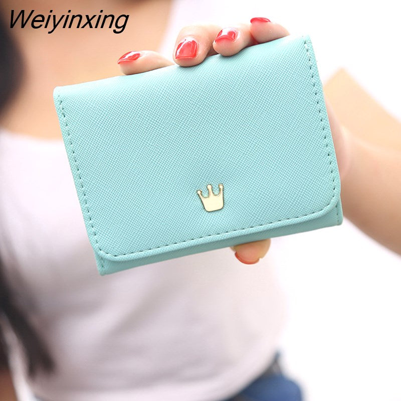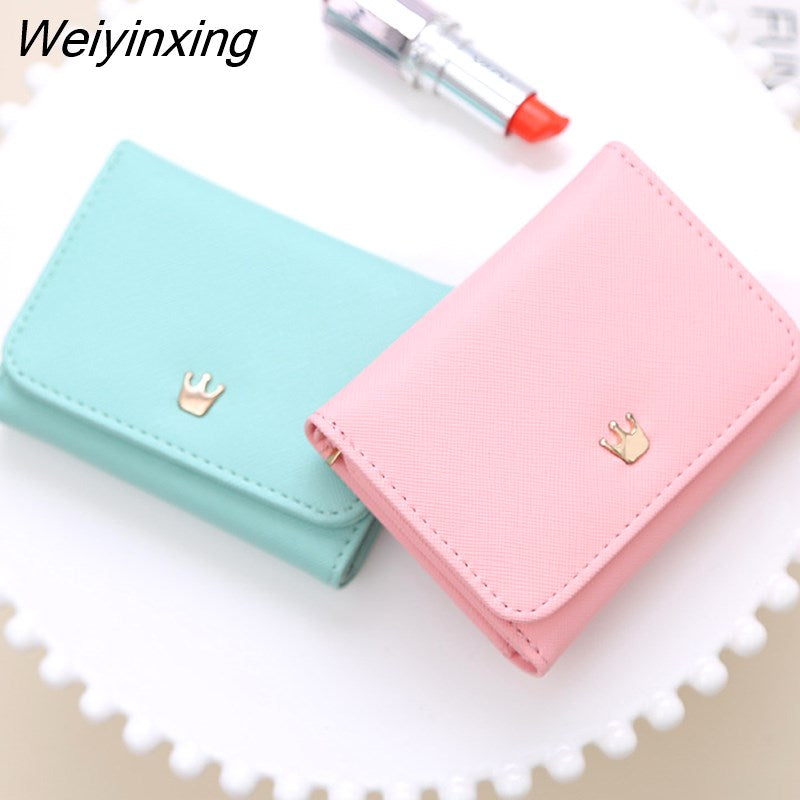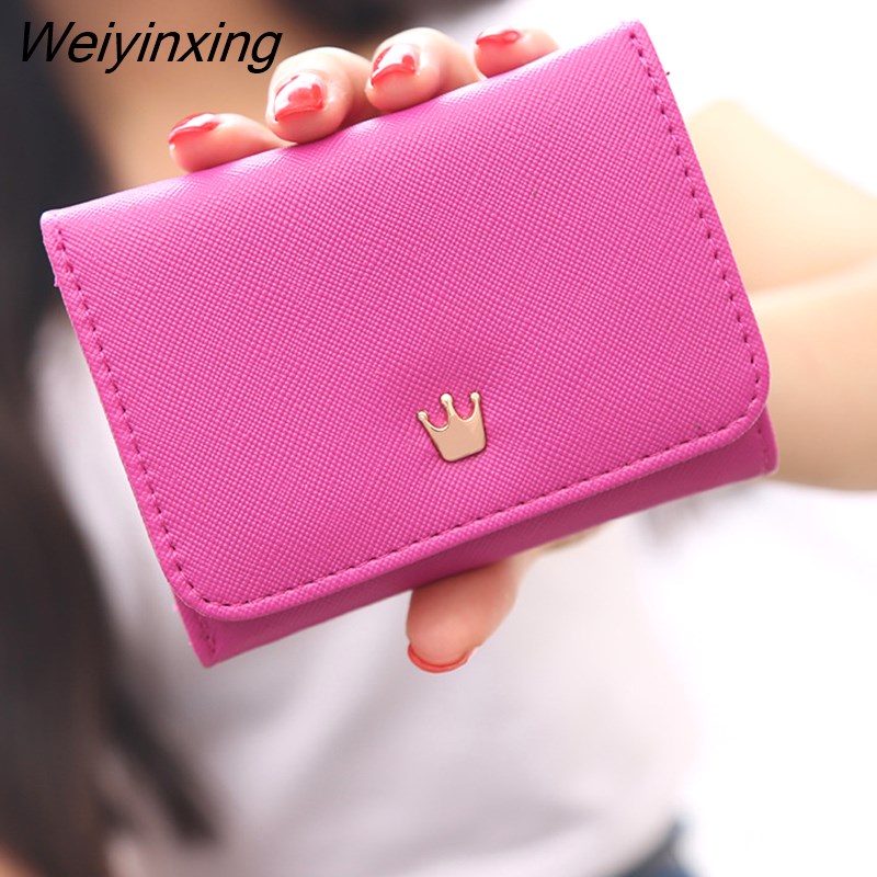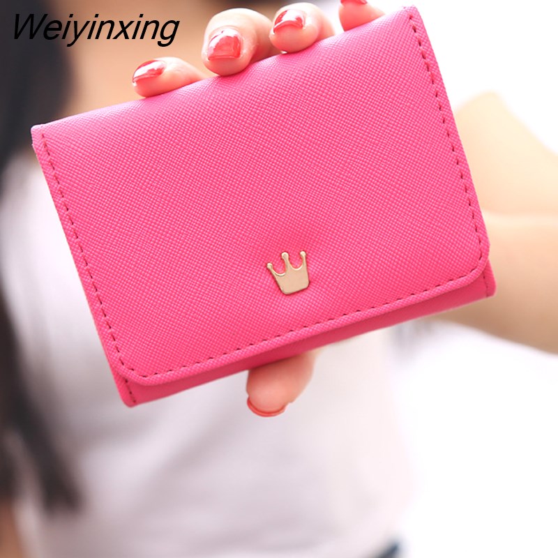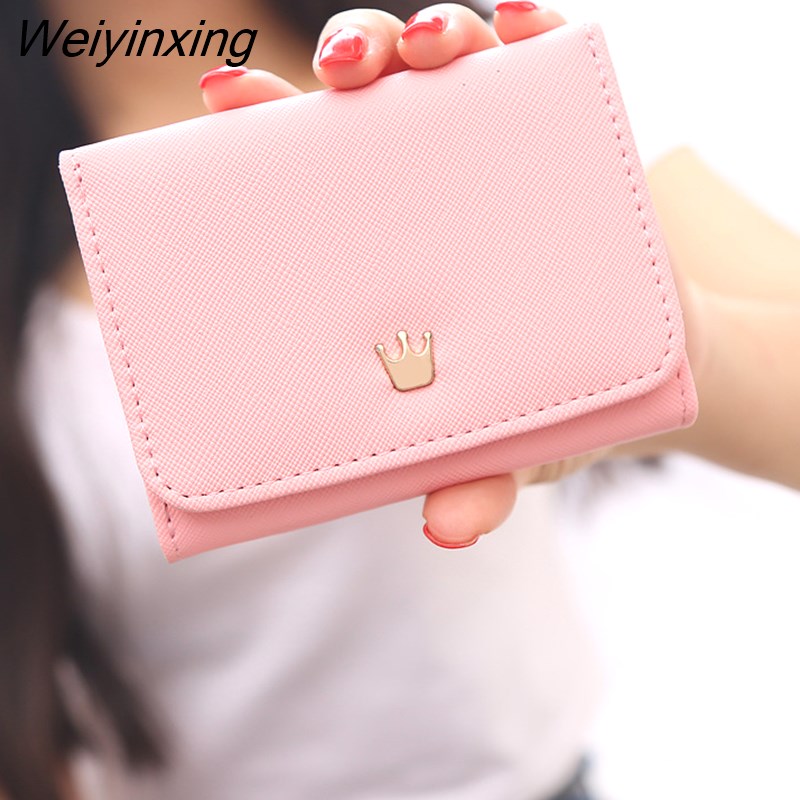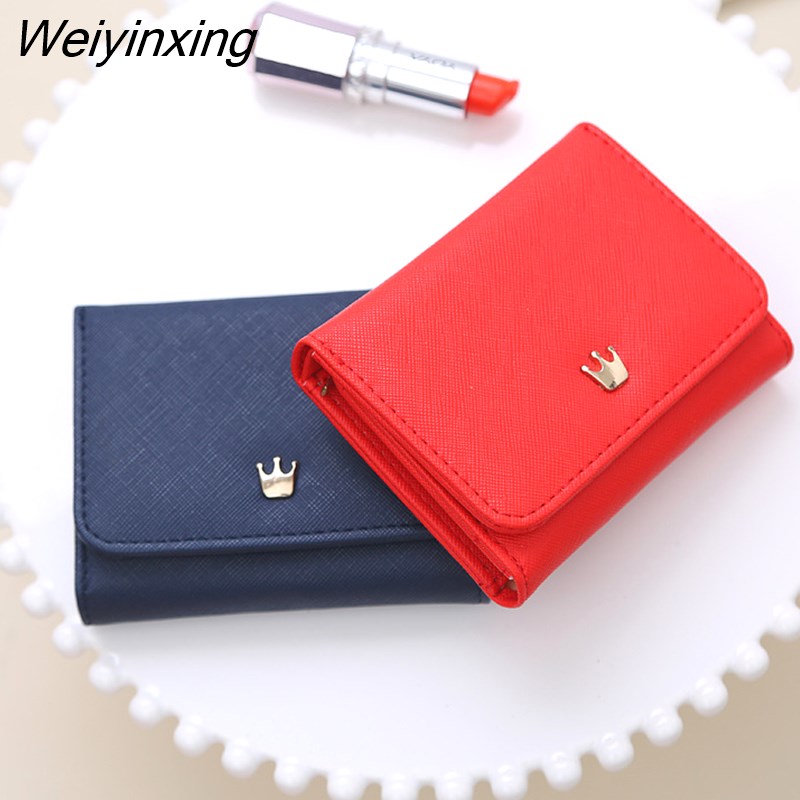 Weiyinxing Crown Women's Wallet 2023 New PU Buckle Short Wallet Student Disassembled Coin Purse Cute Small Fresh Three-fold Wallet